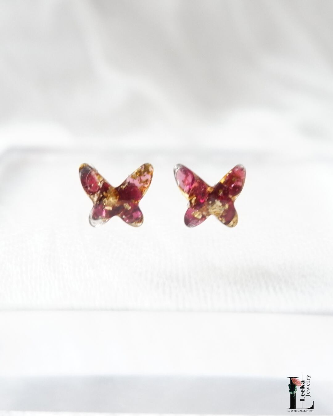 天然石ガーネットのさざれと金箔を美しいジュエリーカットの蝶々に閉じ込めた大人女性のための蝶々アクセサリーです。