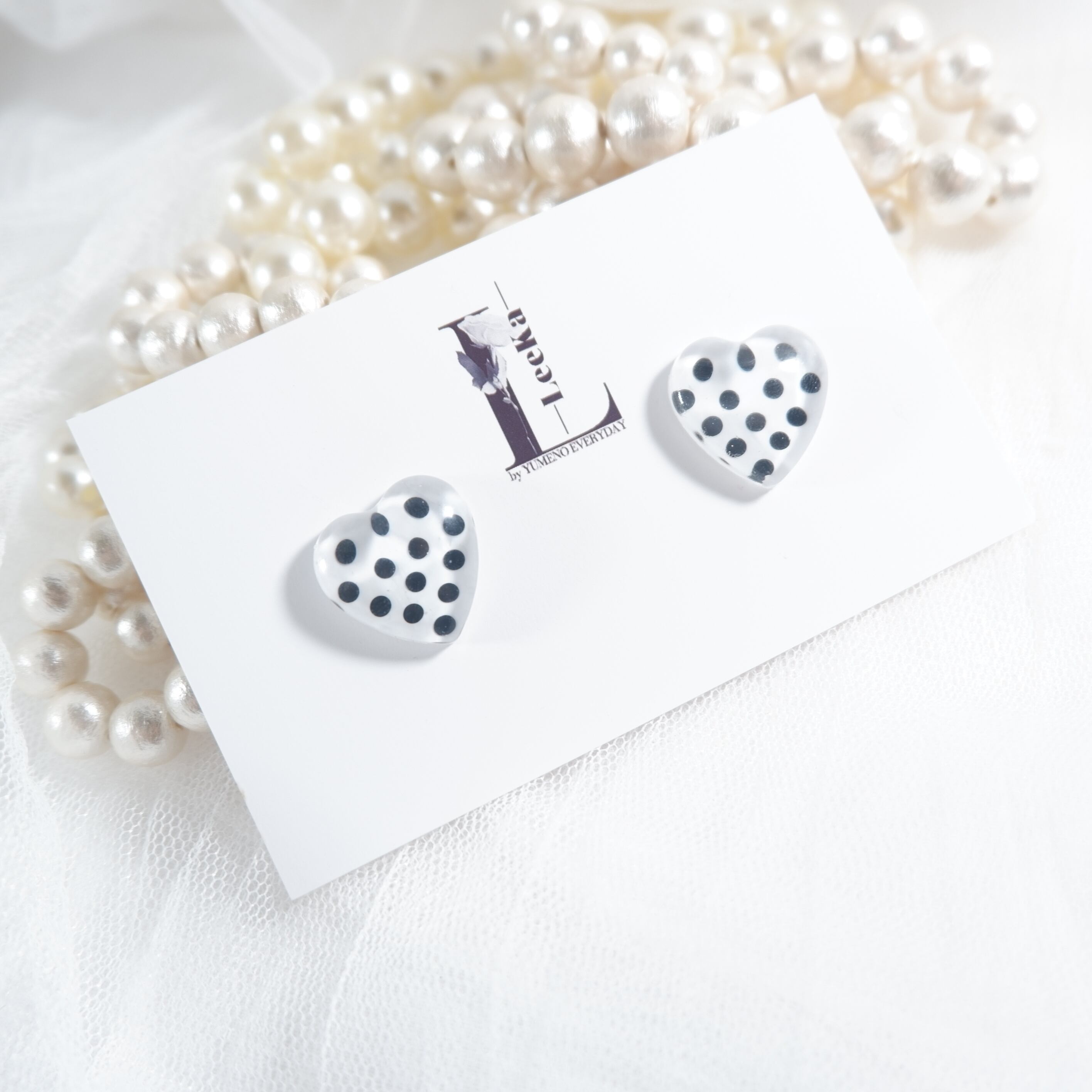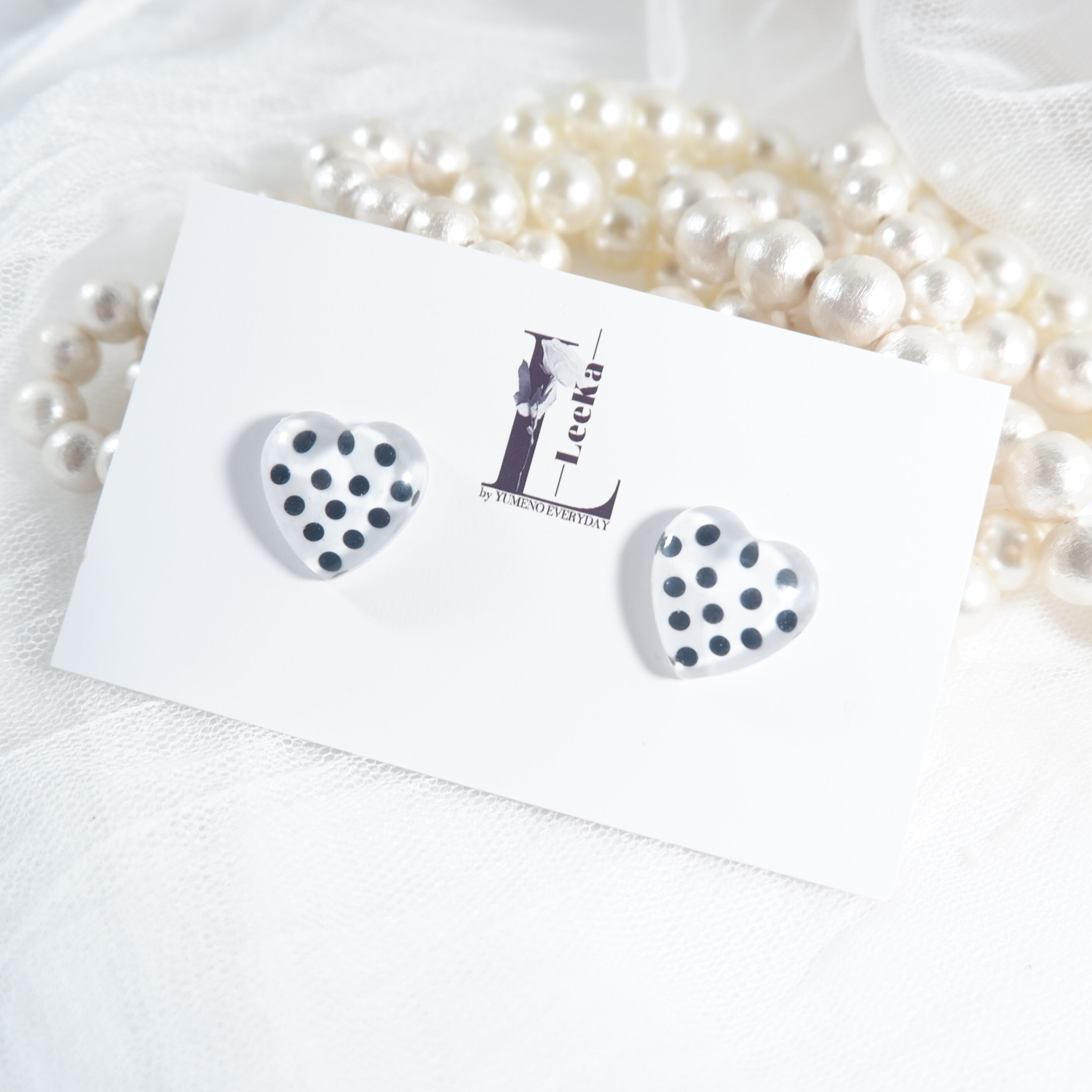 おしゃれなモノトーンのドット柄ハートのピアス、イヤリングです。