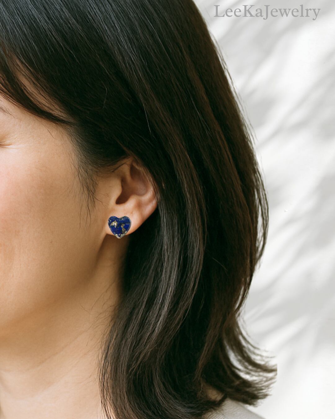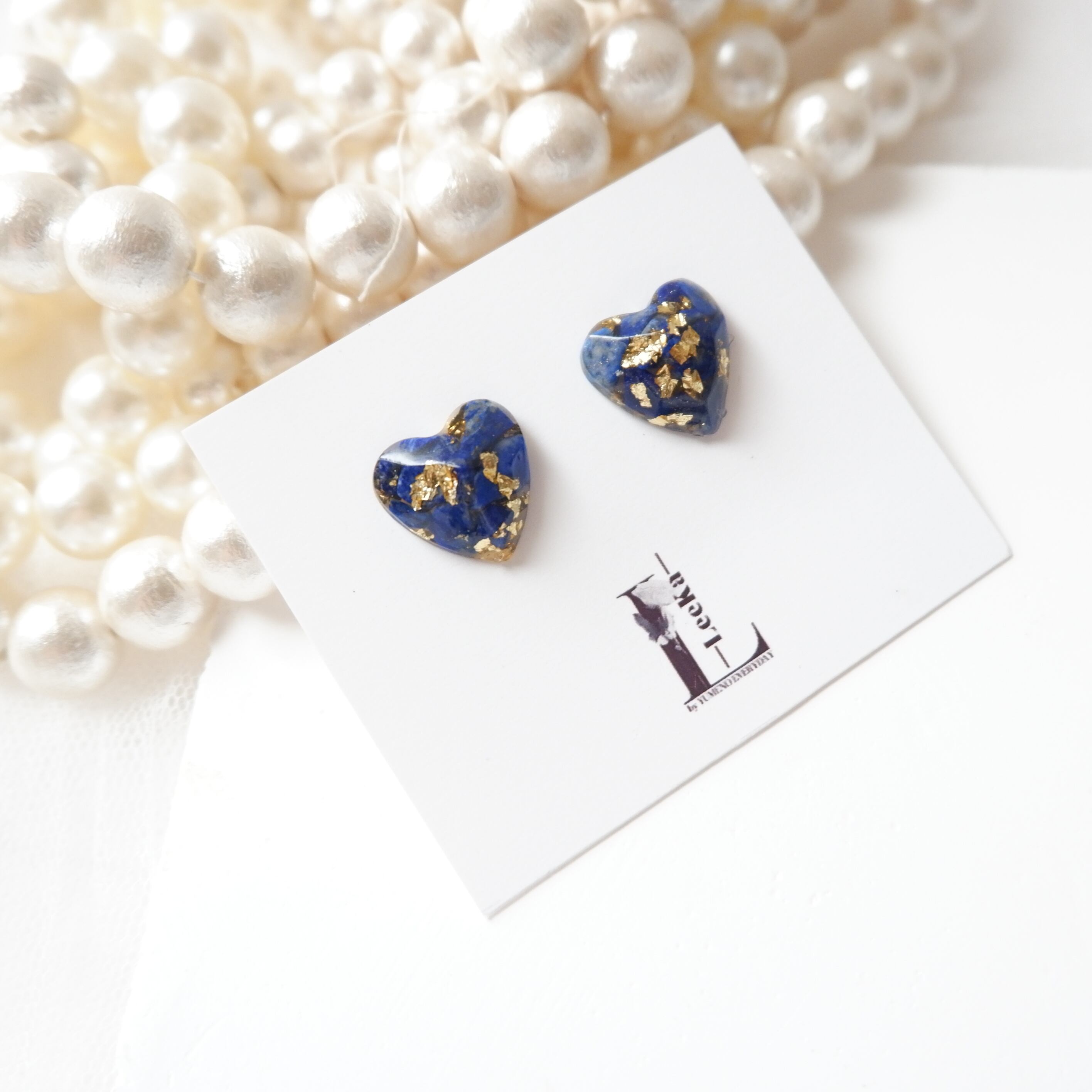 天然石ラピスラズリのさざれと金箔を使用した気軽にハートジュエリーのイヤリング、ピアスです。