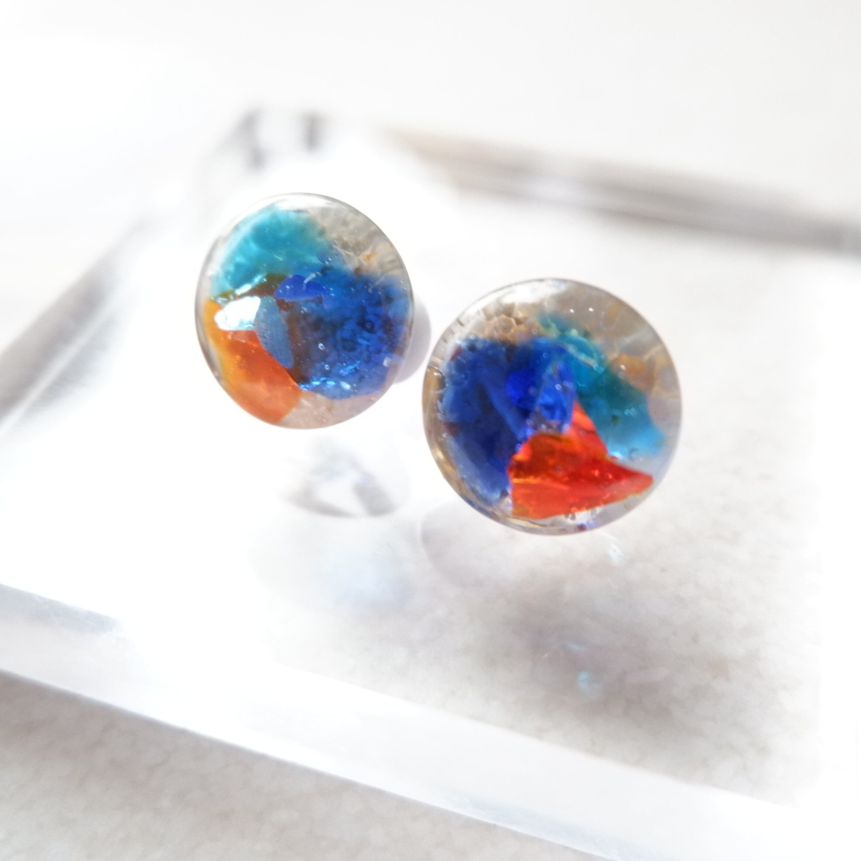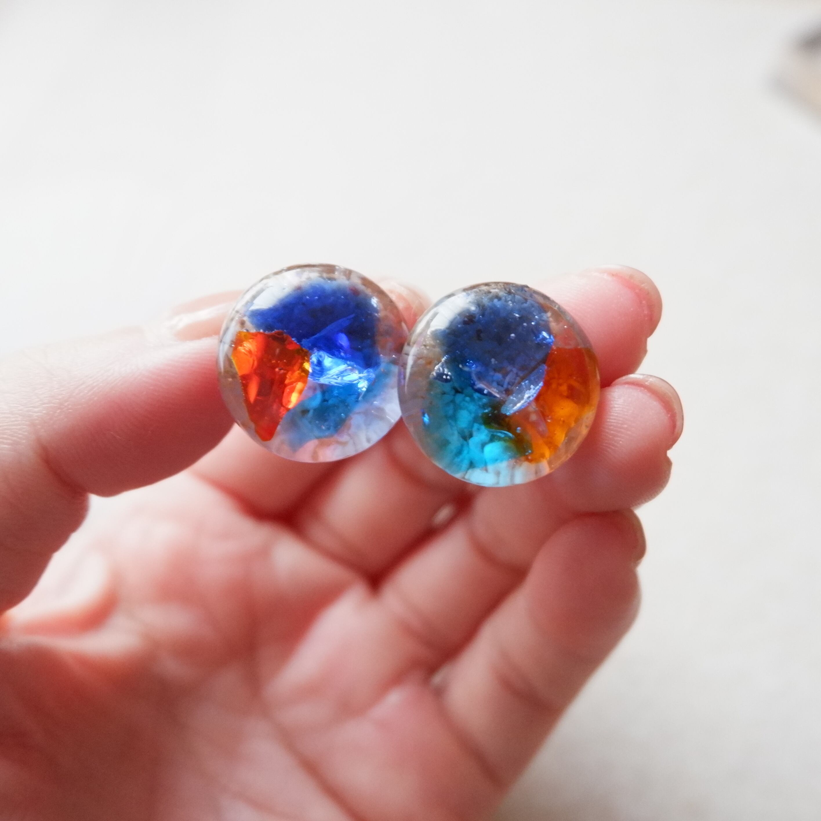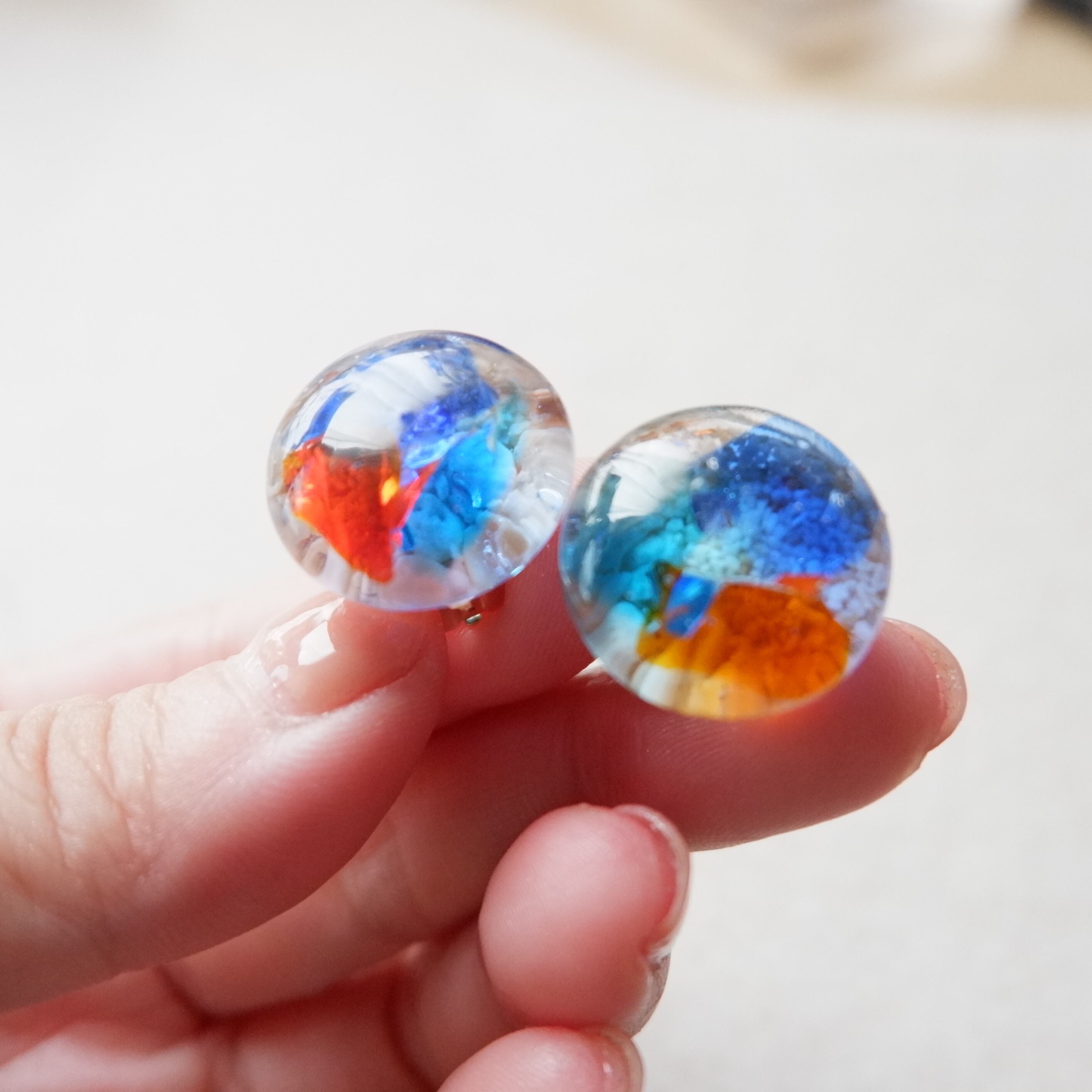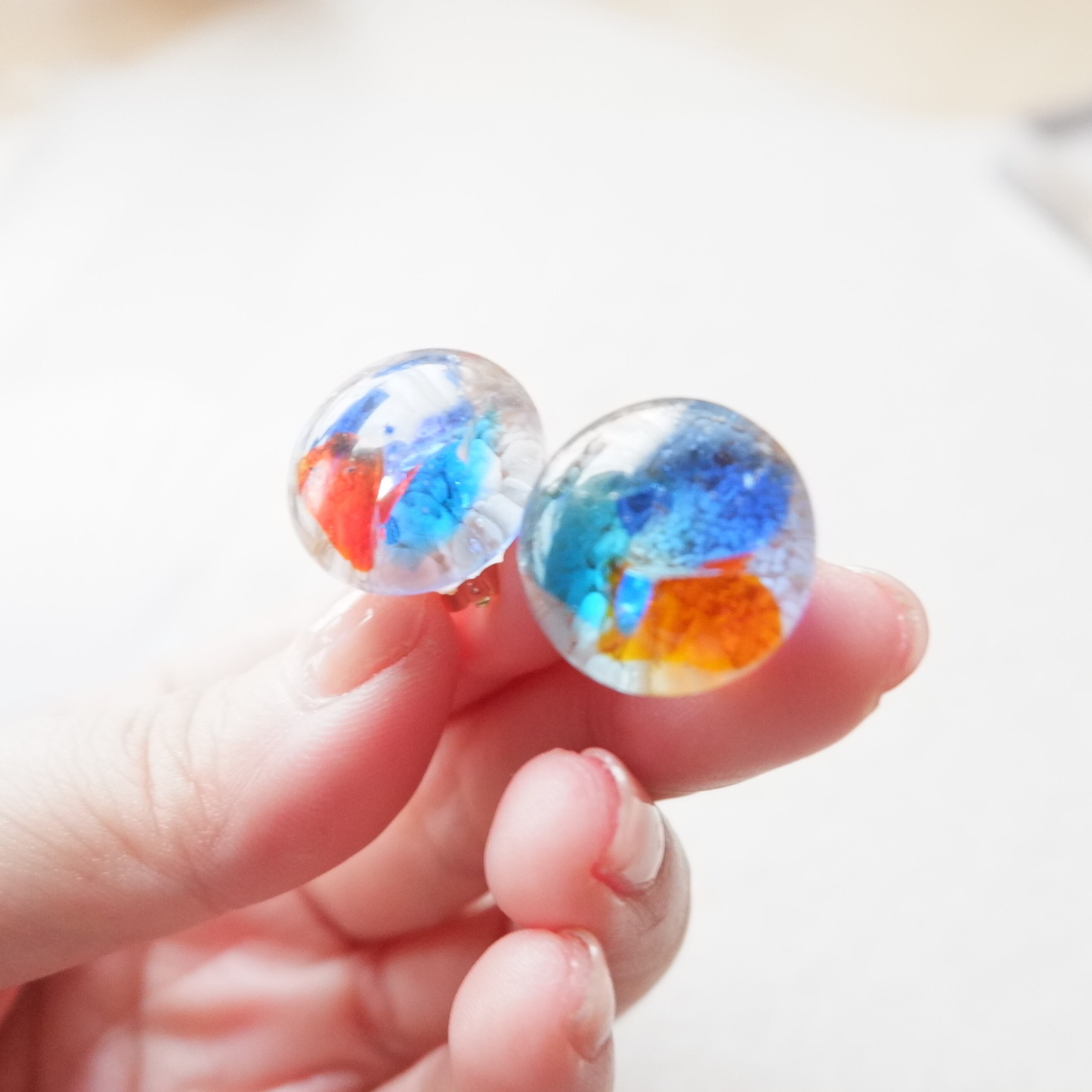 実り 琉球ガラス アクアリウム 大ぶり シンプル 一粒 イヤリング/ピアス 金属アレルギー対応 サージカルステンレス