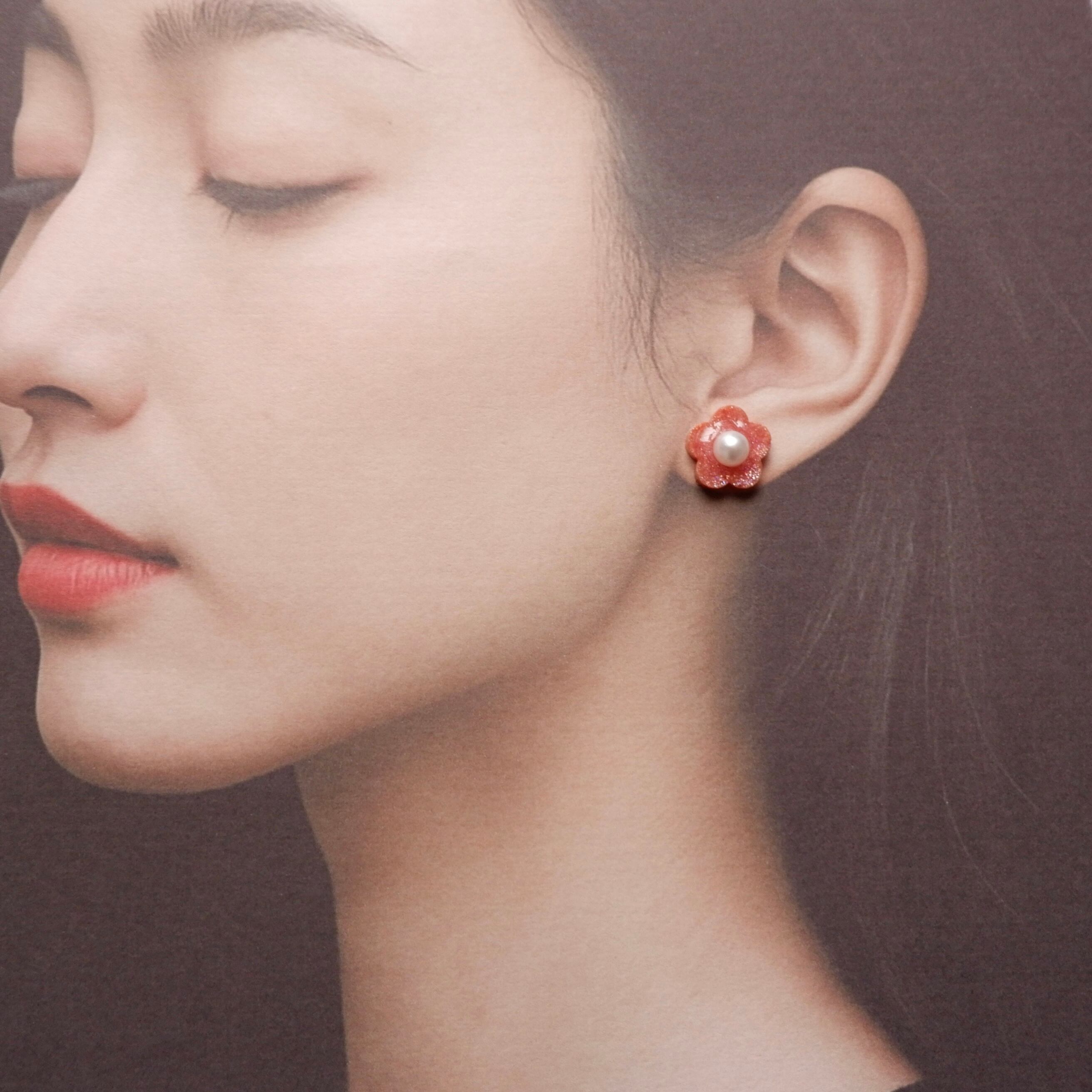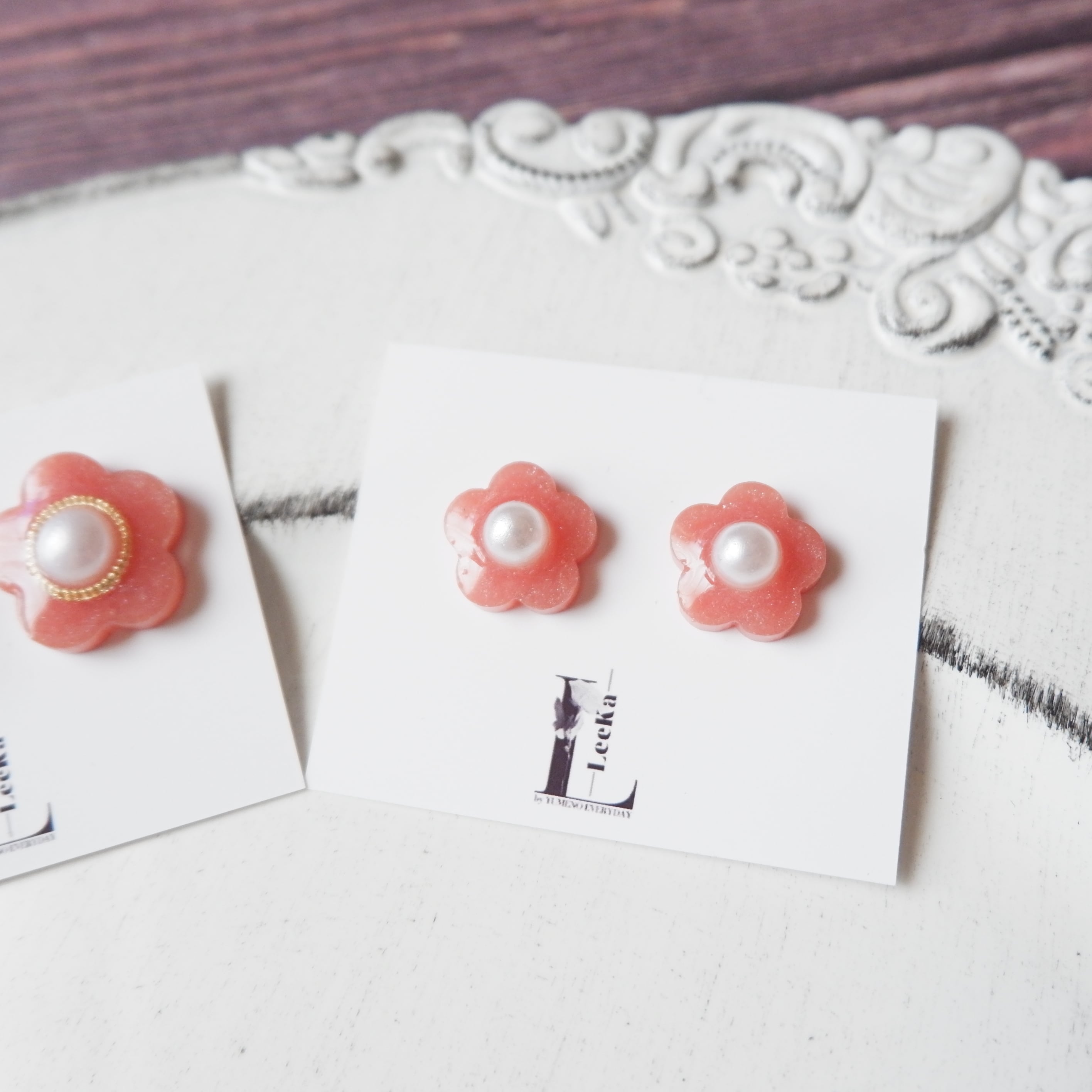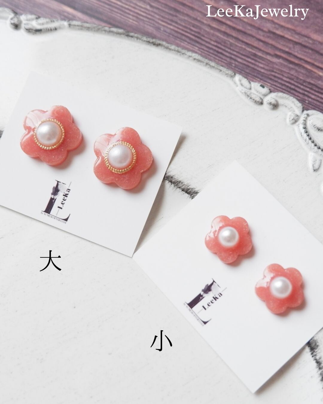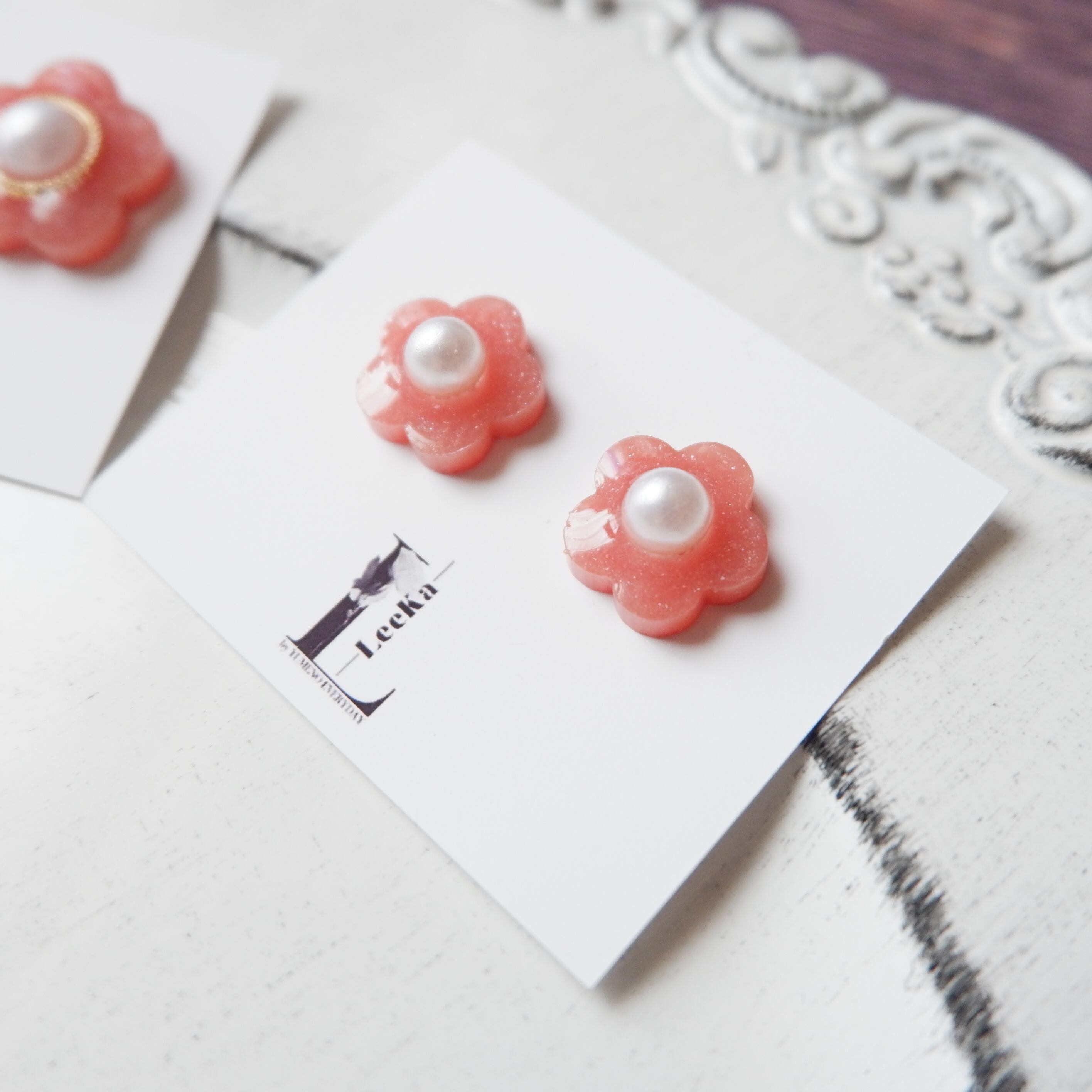 ⑦ お花 パール感 コーラル シンプル 一粒 イヤリング/ピアス 金属アレルギー対応 サージカルステンレス