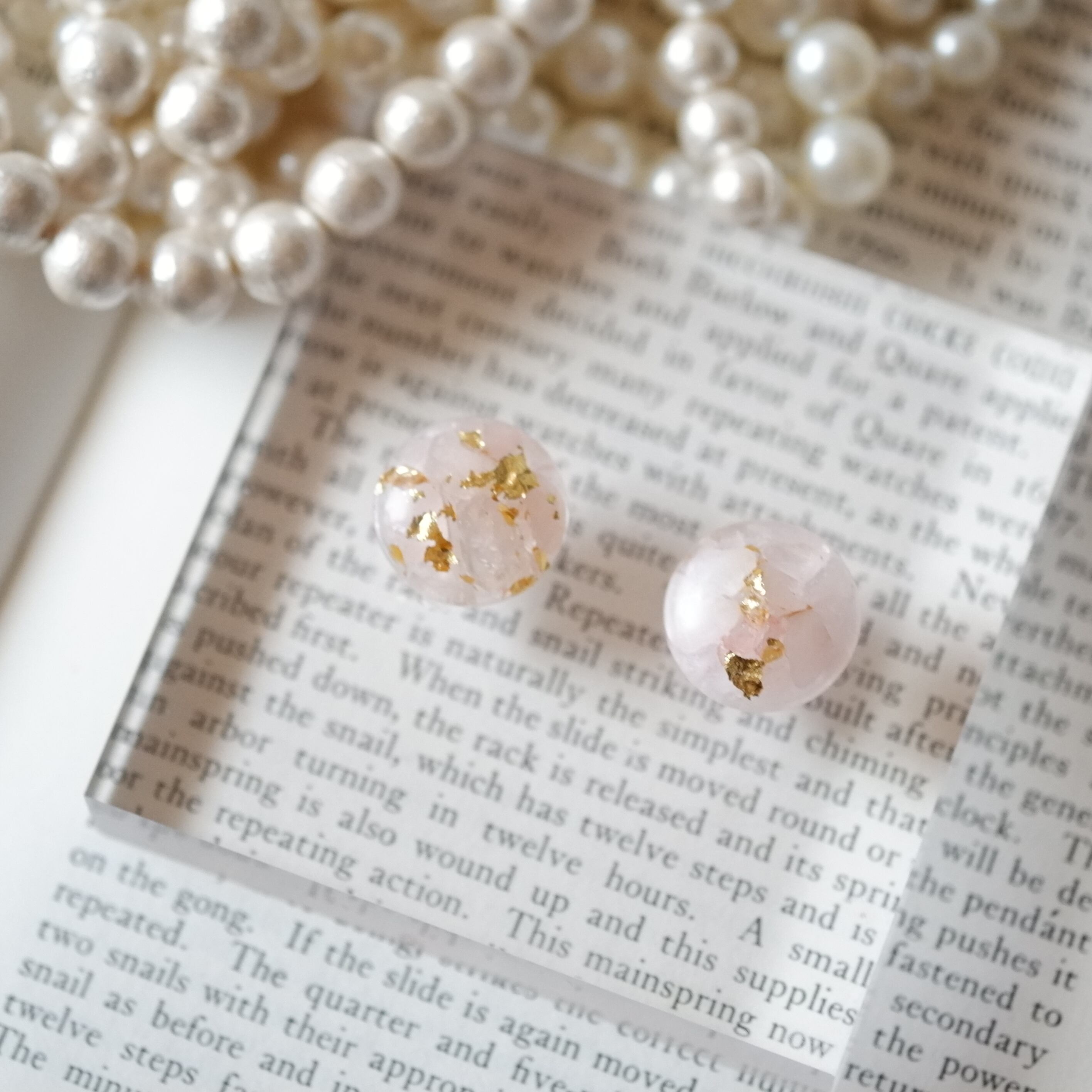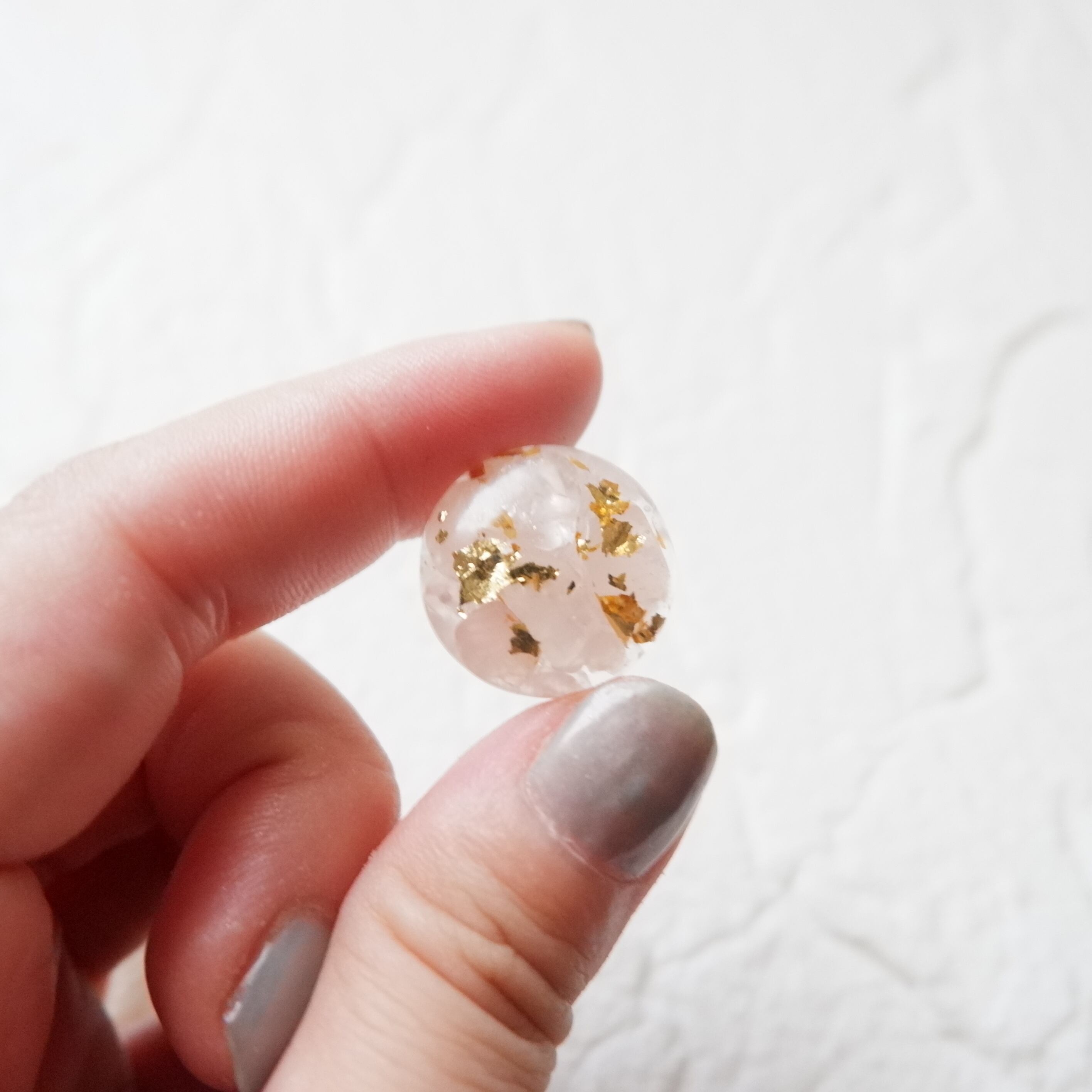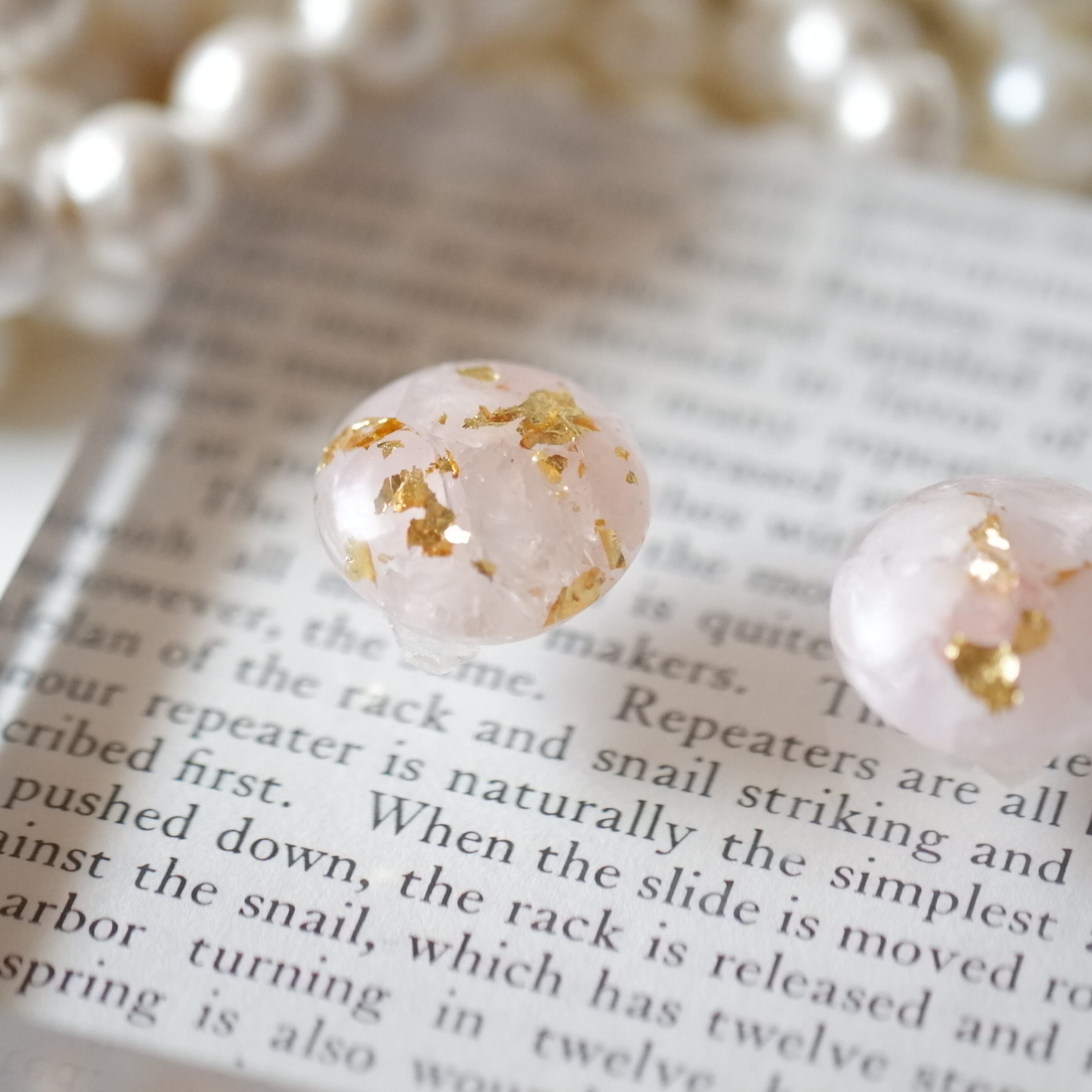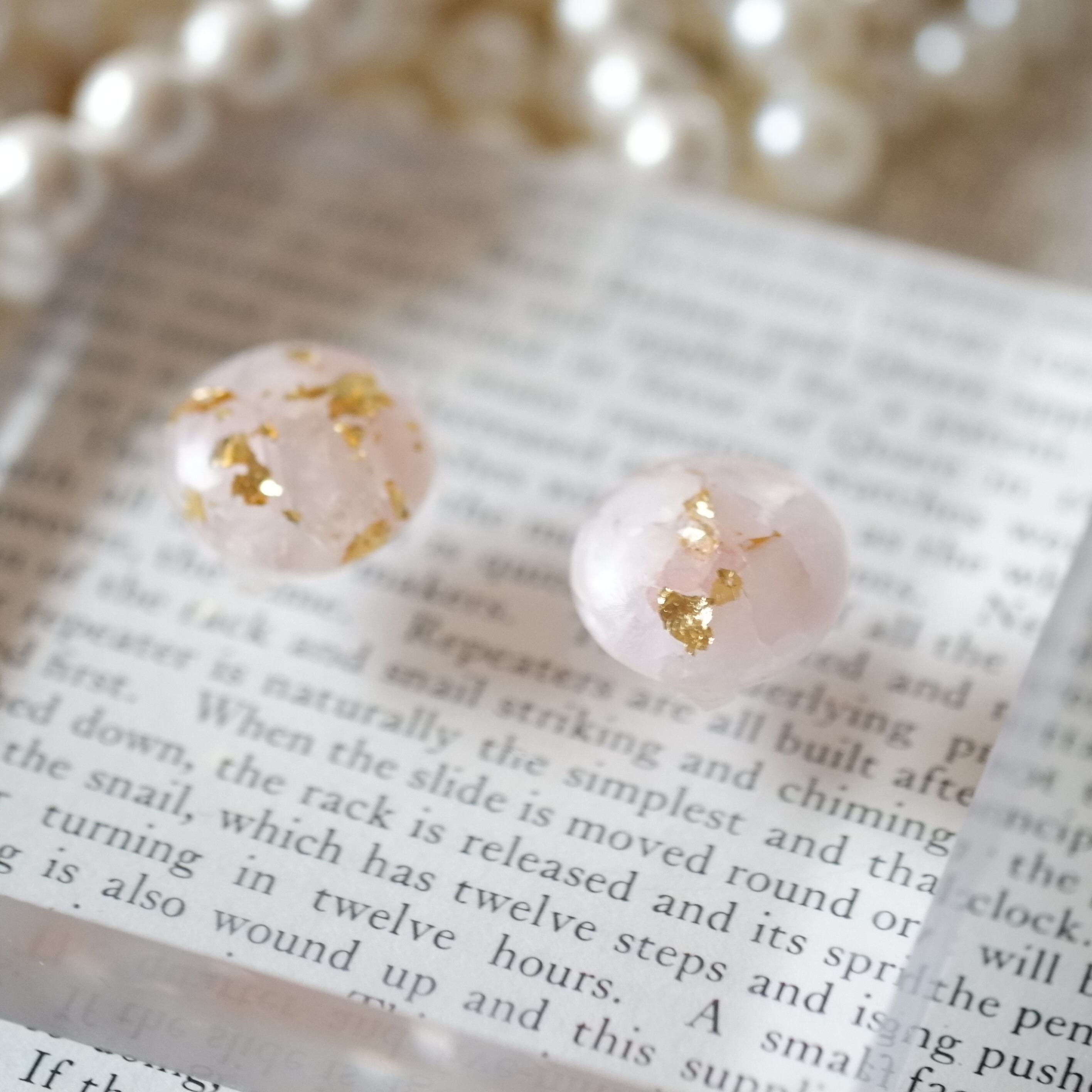 素材:金属、レジン、天然石(ローズクォーツ)、金箔