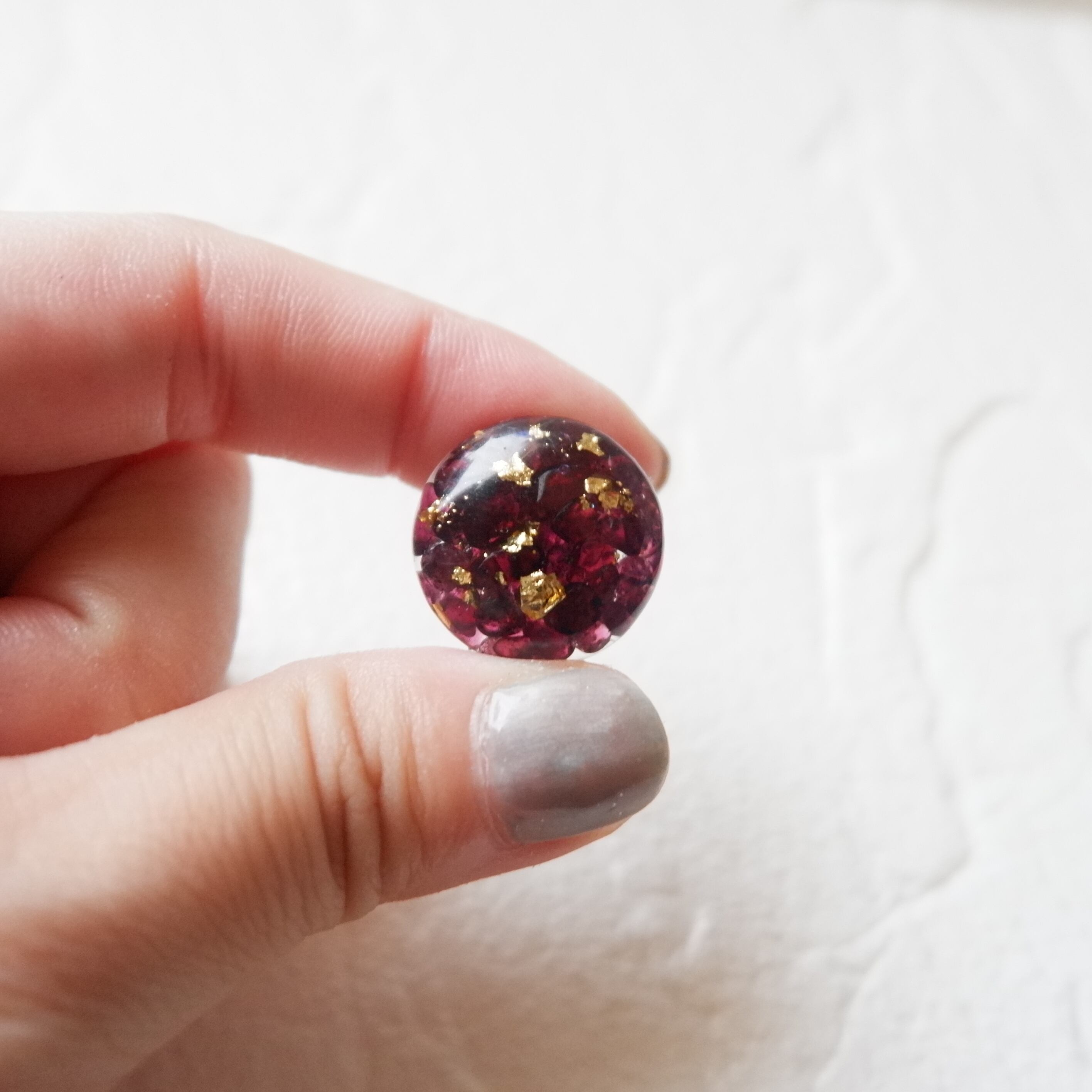 素材:金属、レジン、天然石(ガーネット)、金箔
