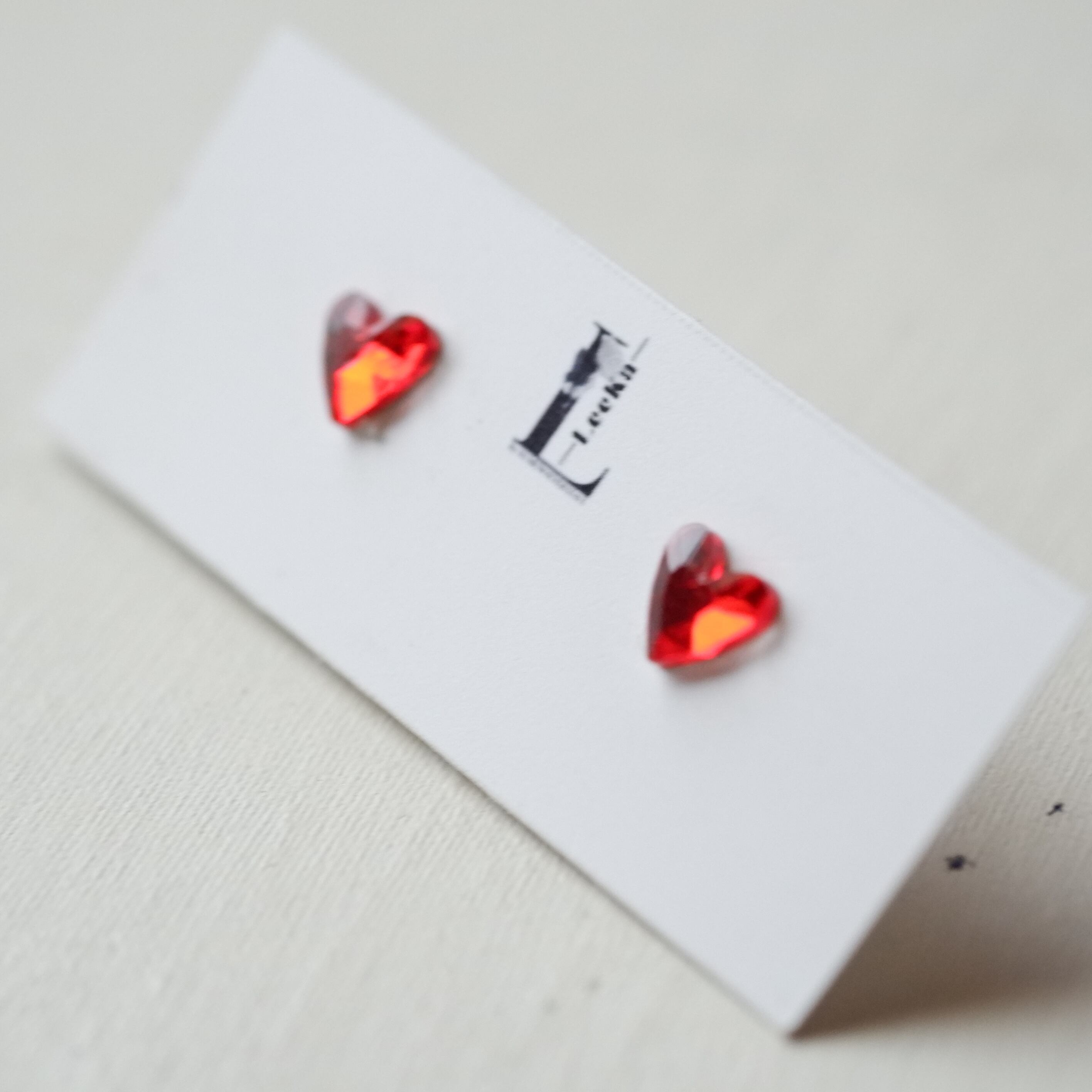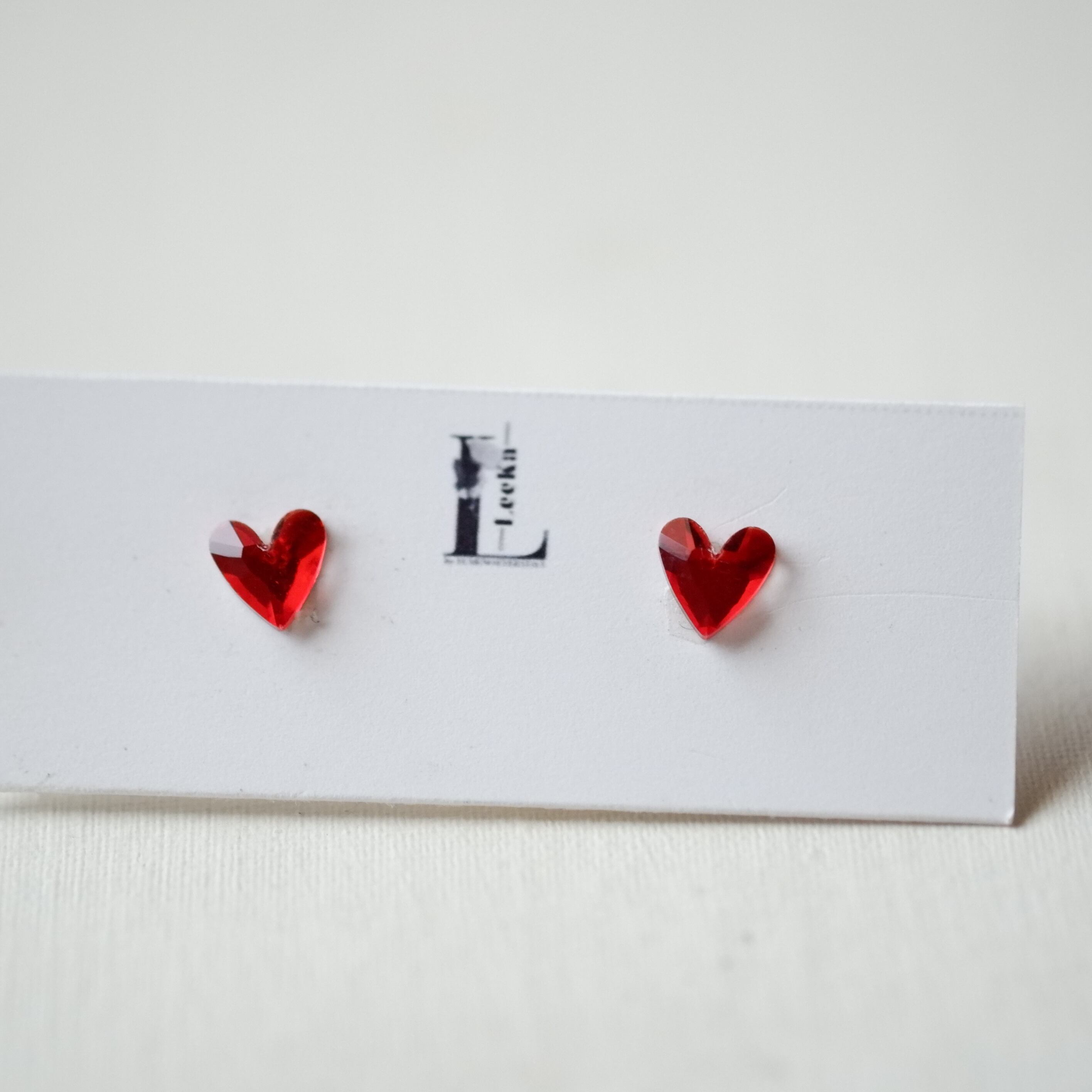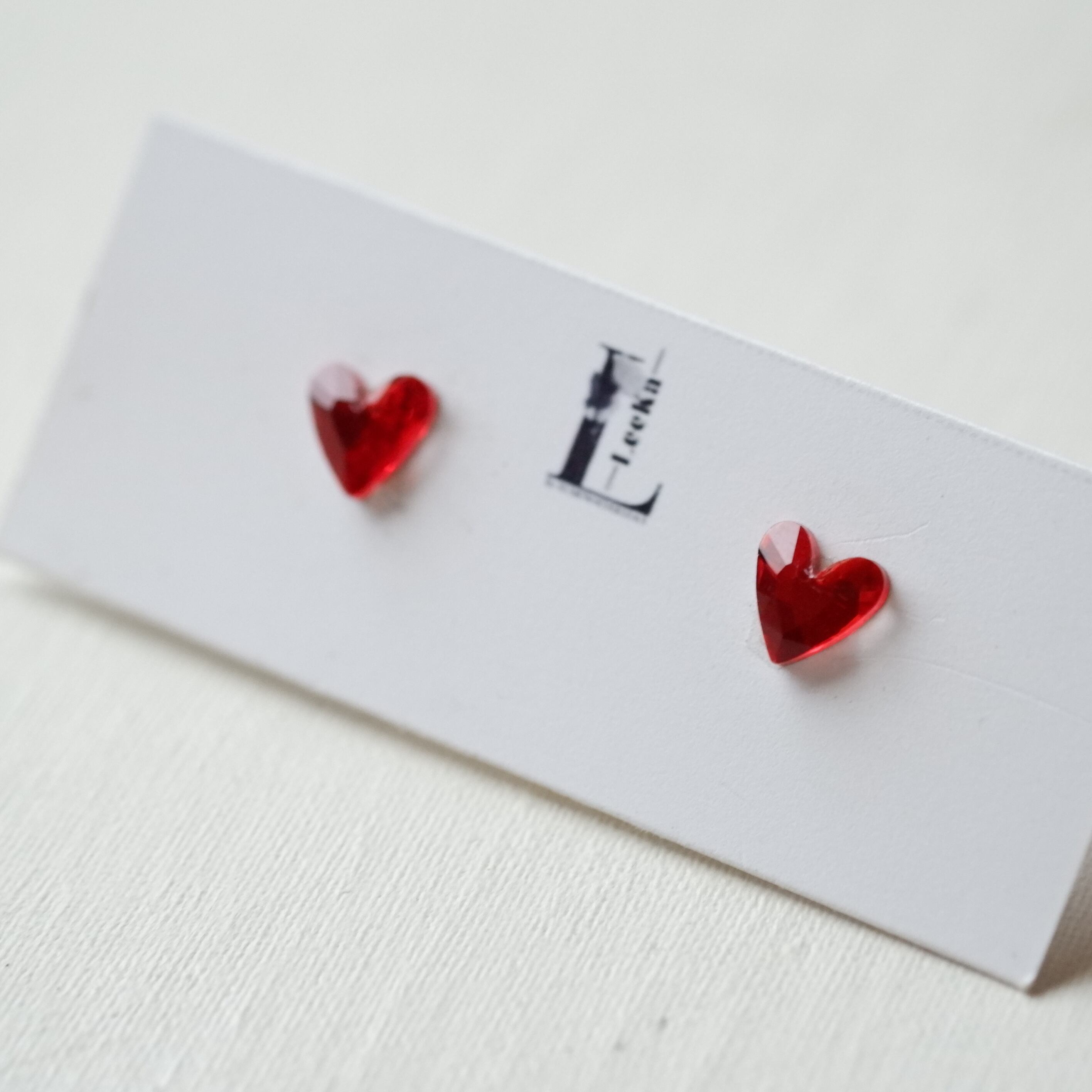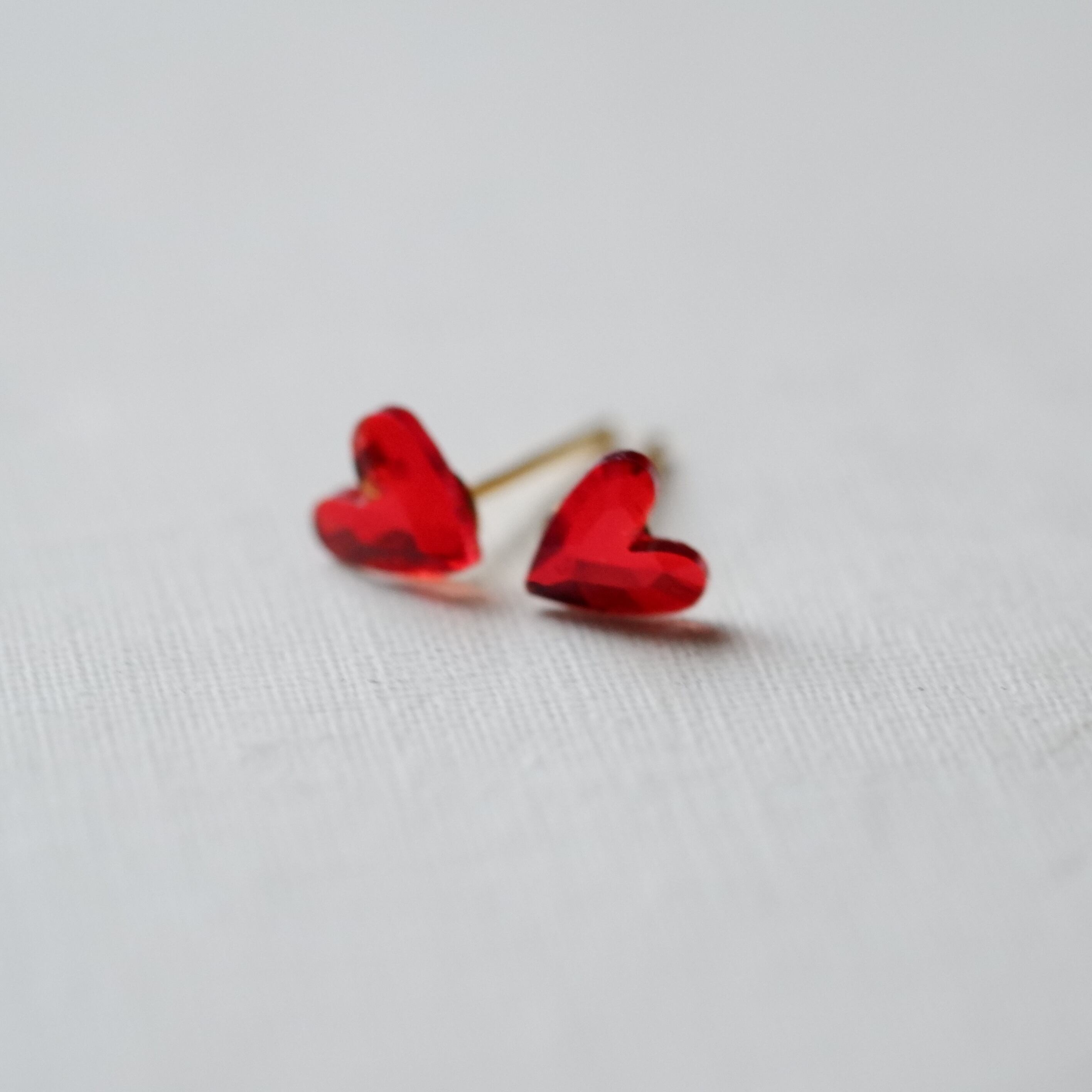 小さなハートのクリスタルガラス 赤 金属アレルギー対応 サージカルステンレス 1粒ピアス イヤリング/ピアス