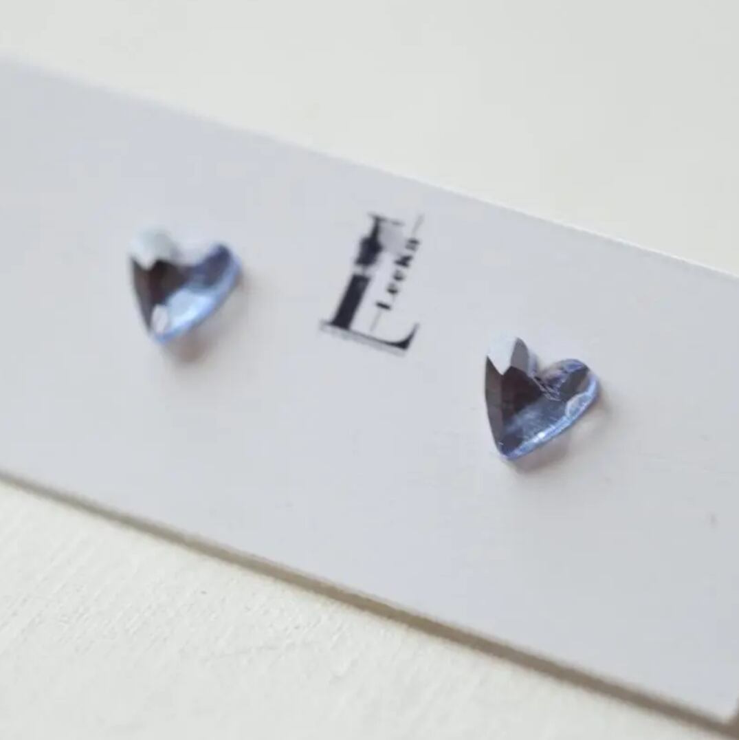 小さなハートのクリスタルガラス ライトブルー 金属アレルギー対応 サージカルステンレス 1粒ピアス イヤリング/ピアス