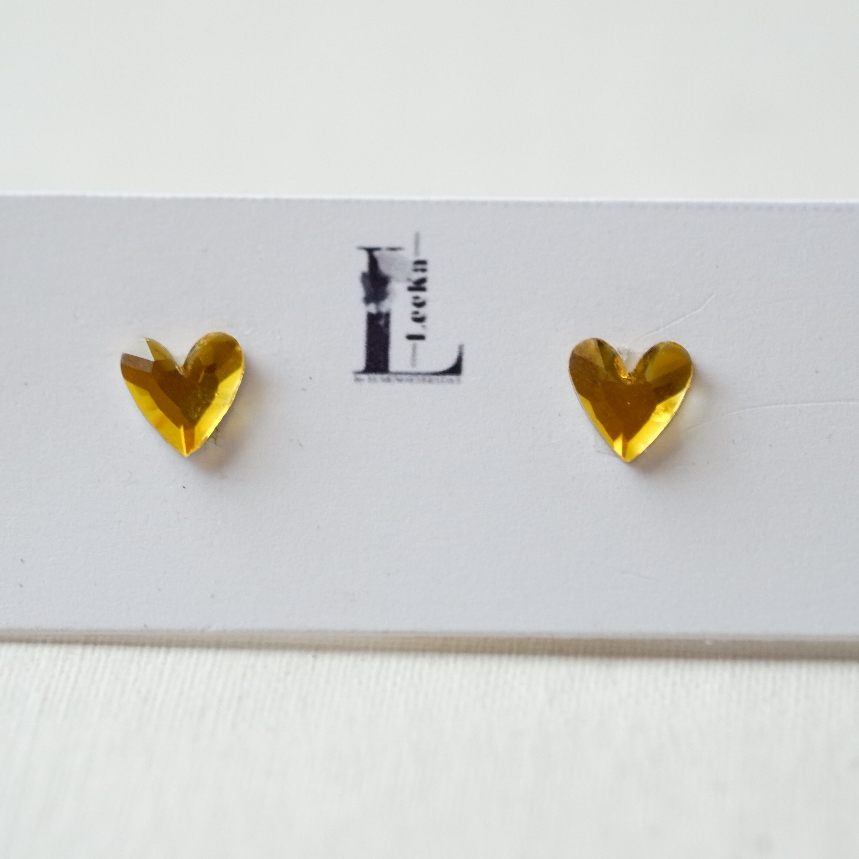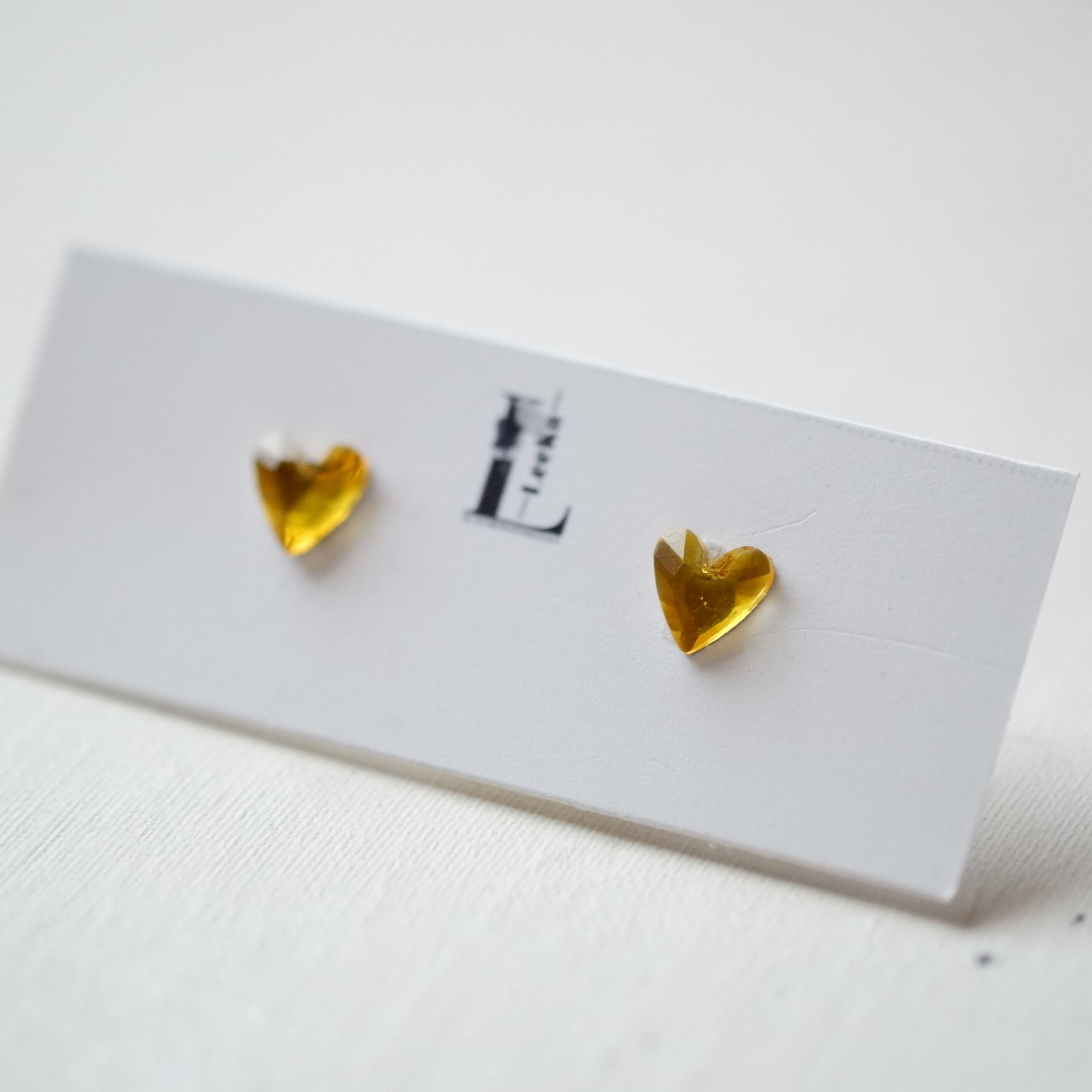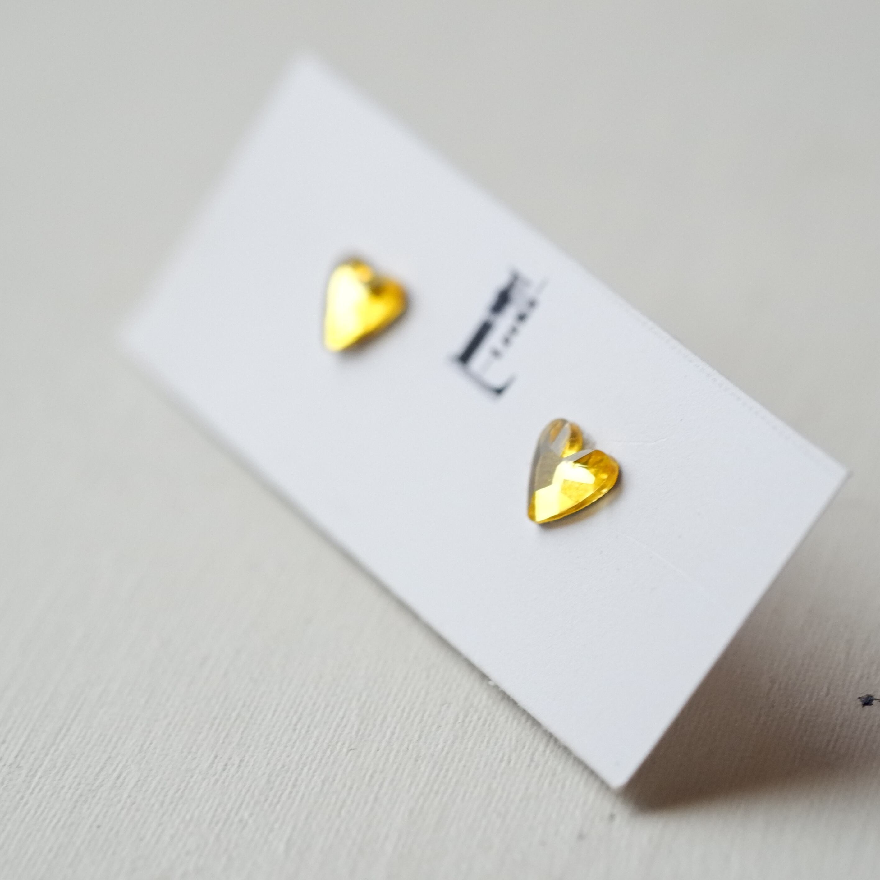 小さなハートのクリスタルガラス イエロー 金属アレルギー対応 サージカルステンレス 1粒ピアス イヤリング/ピアス