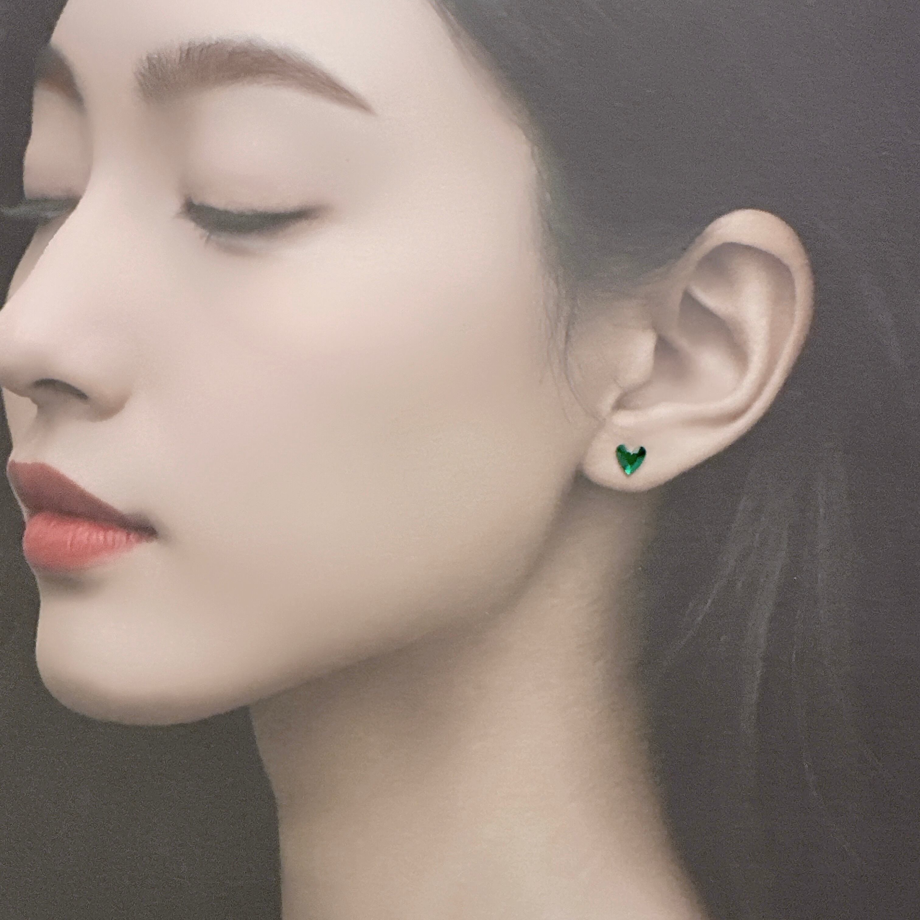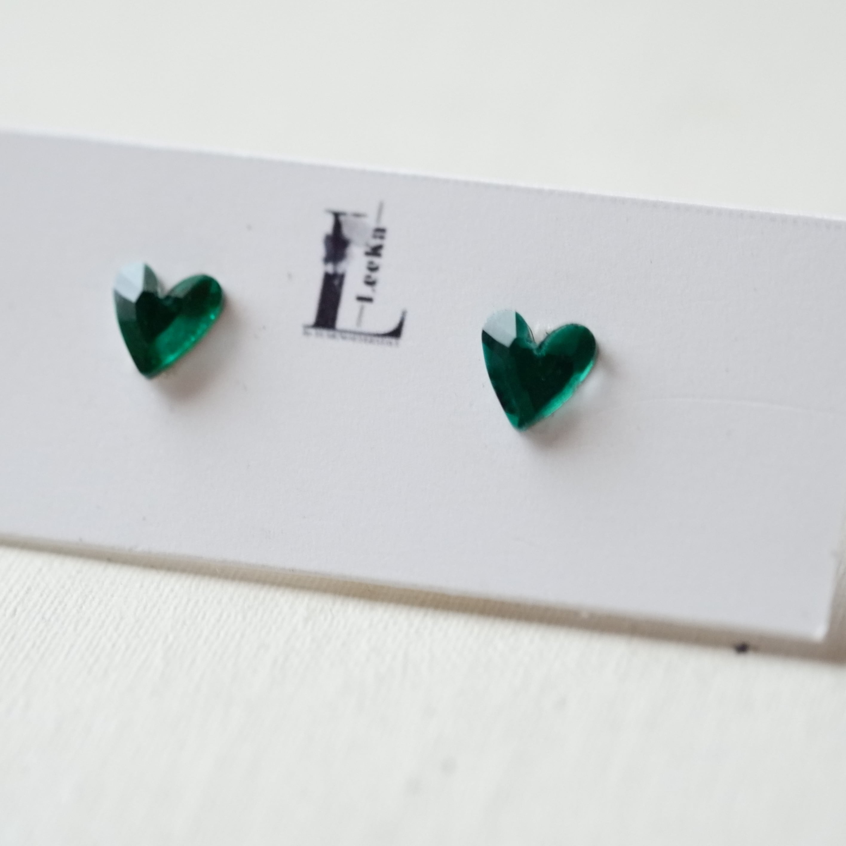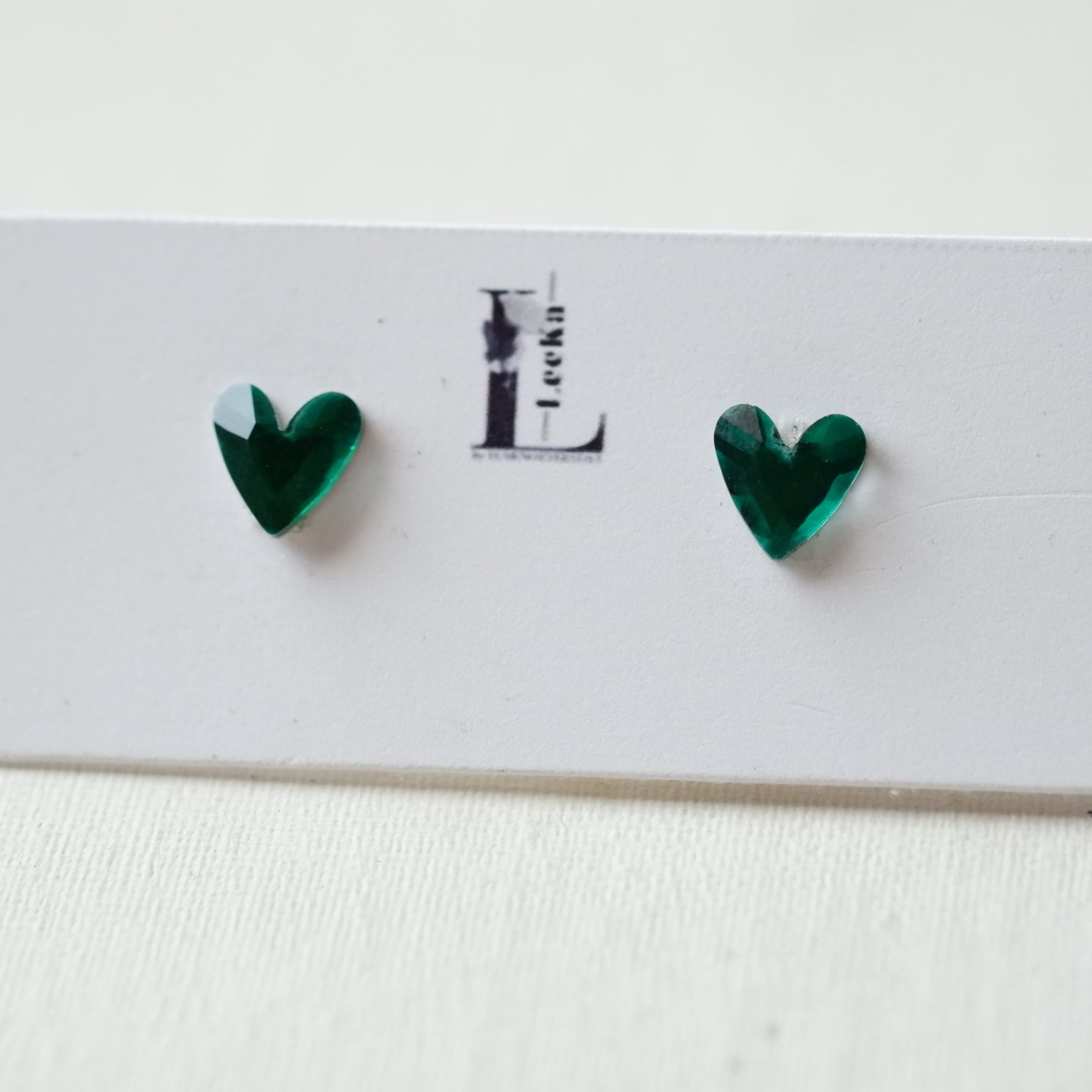 小さなハートのクリスタルガラス エメラルドグリーン 金属アレルギー対応 サージカルステンレス 1粒ピアス イヤリング/ピアス