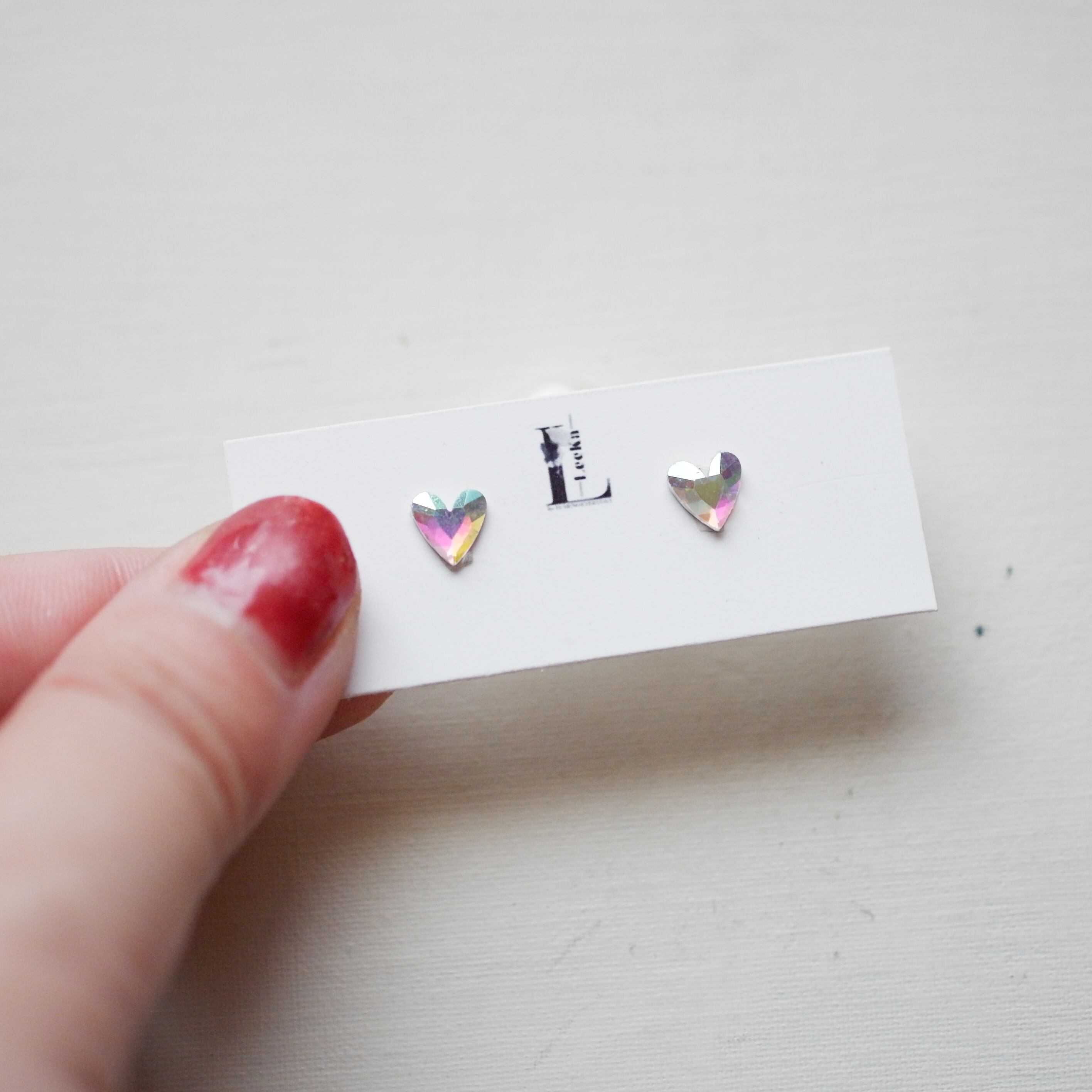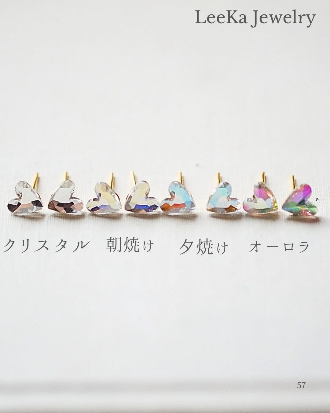 小さなハートのクリスタルガラス オーロラ 金属アレルギー対応 サージカルステンレス 1粒ピアス イヤリング/ピアス