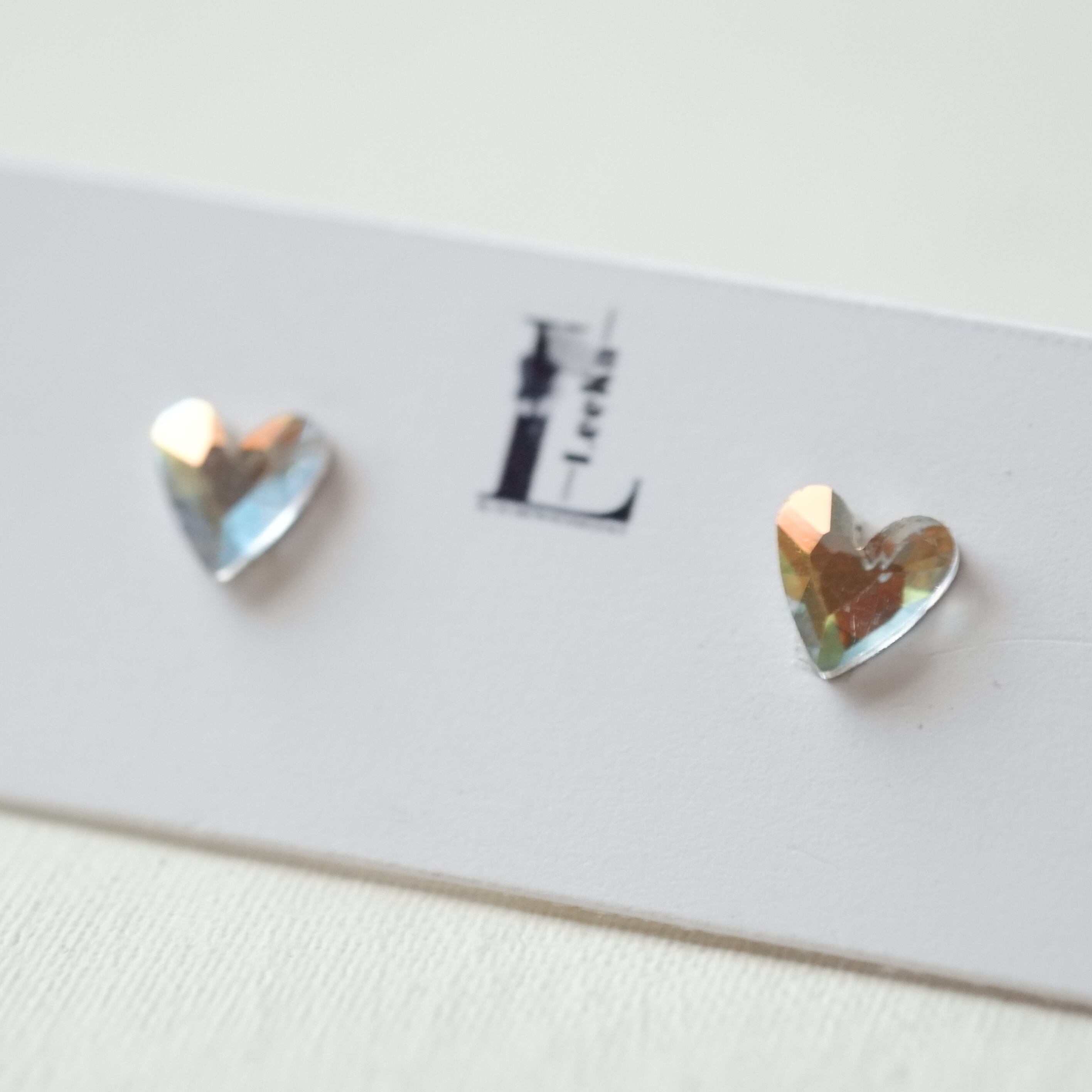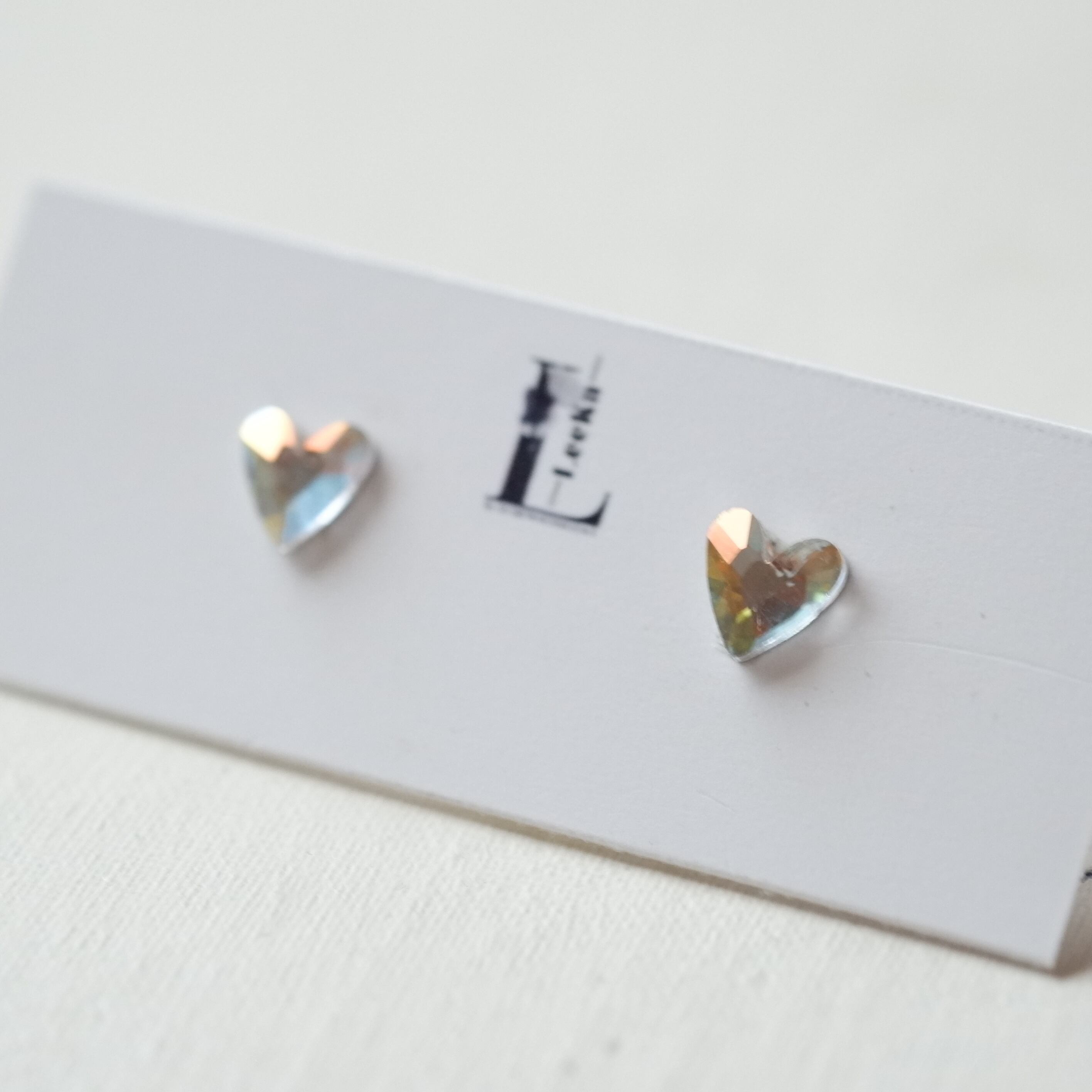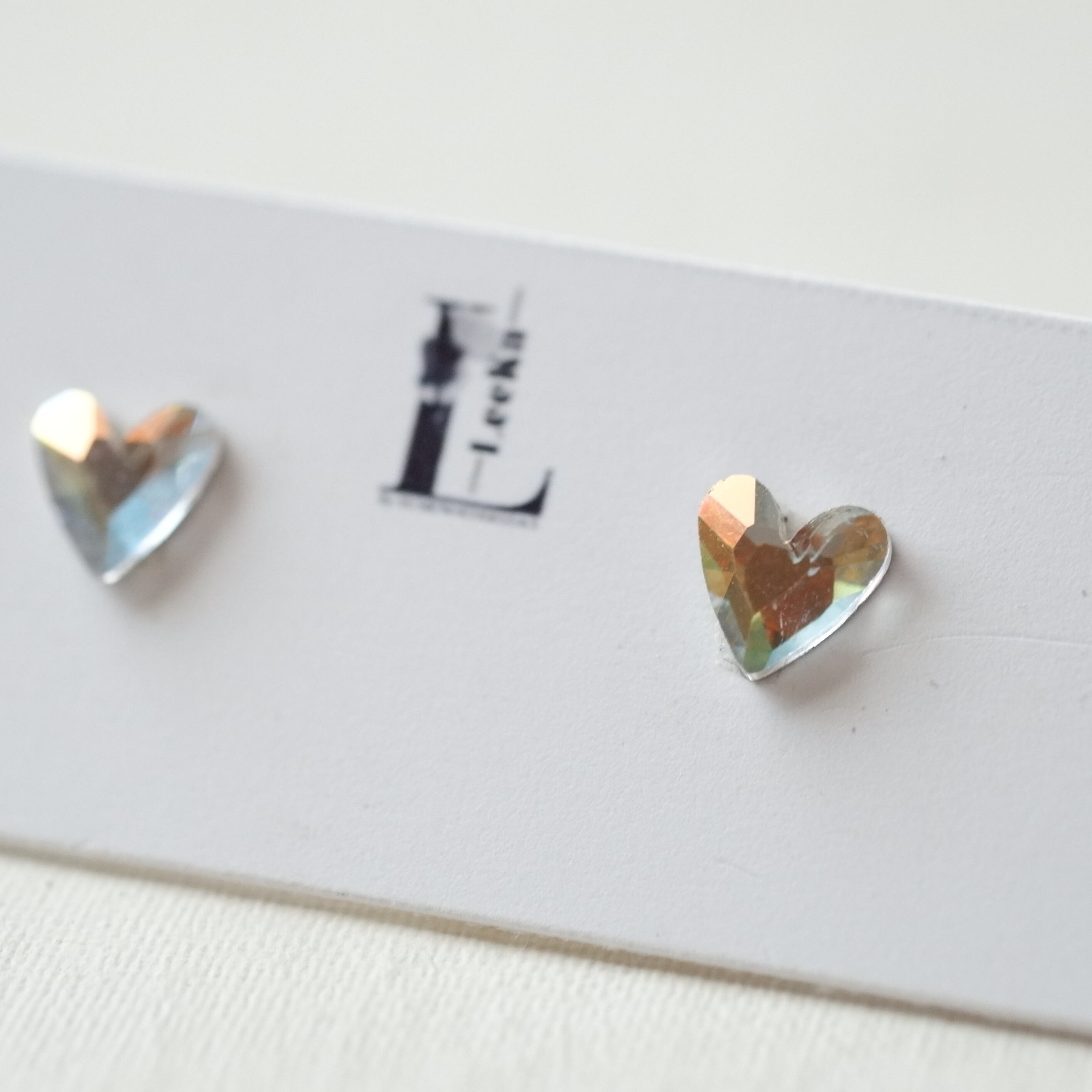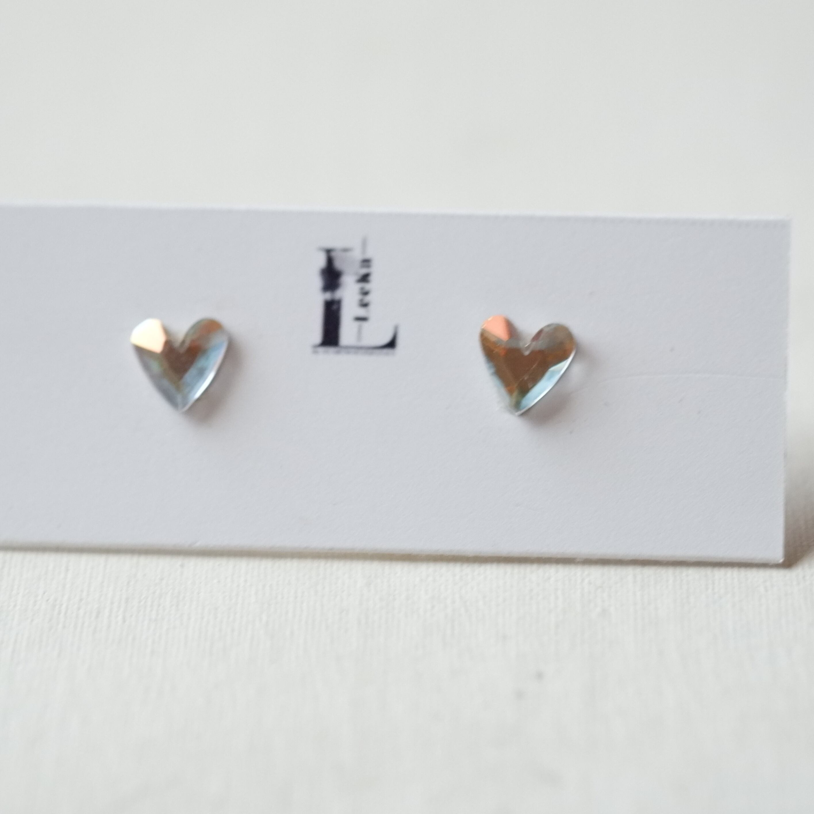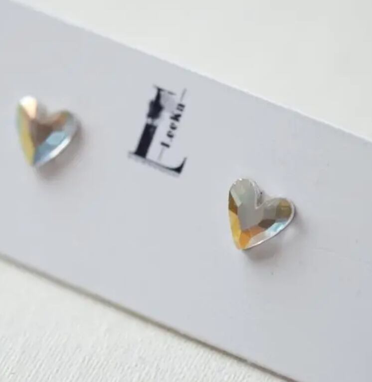 繊細にカットされたヨーロッパ製クリスタルガラスを、上品なハートモチーフに仕立てた約6mmのピアス。