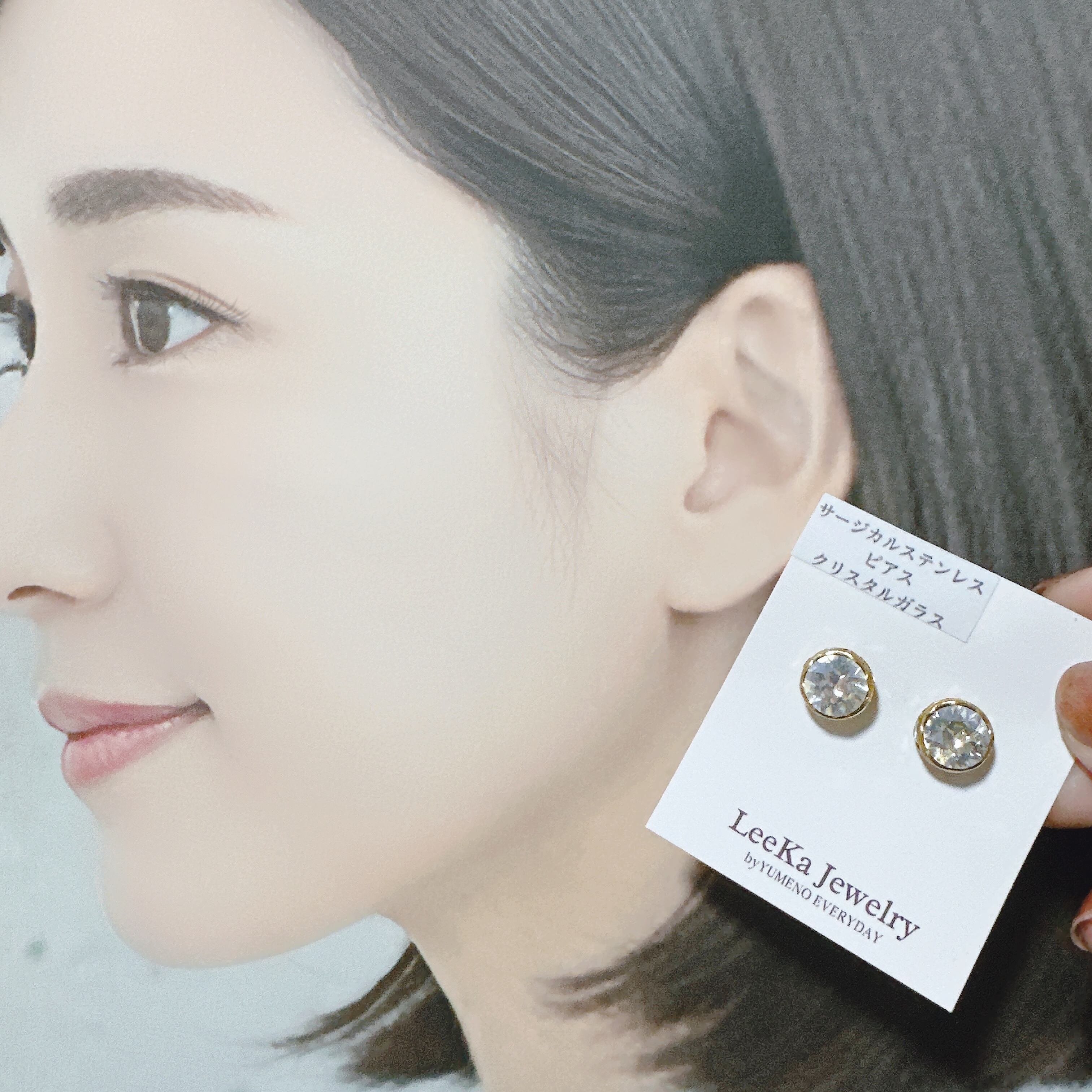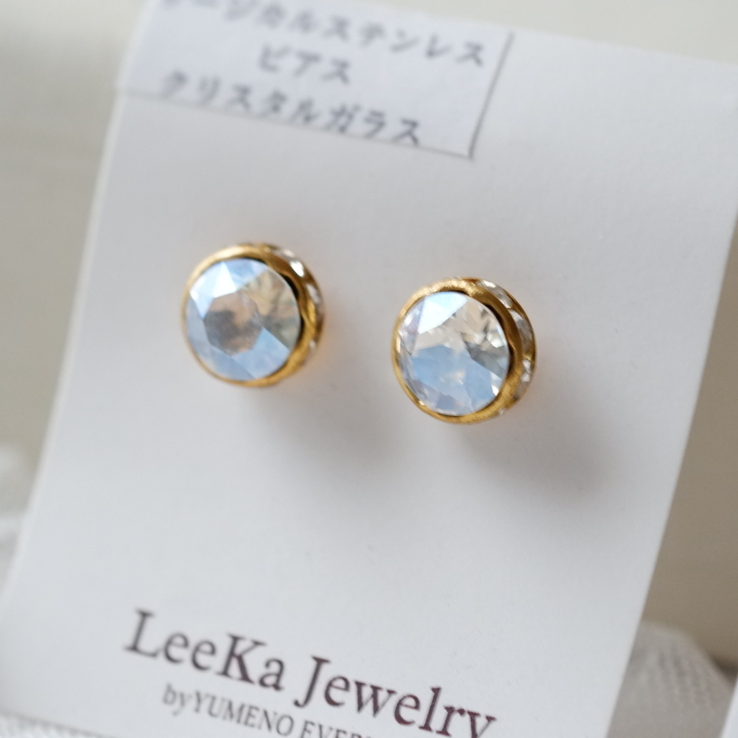 【ピアス限定】クリスタルガラス グラデーションクリア ×ジュエリー台座 シンプル 一粒 イヤリング/ピアス 金属アレルギー対応 サージカルステンレス