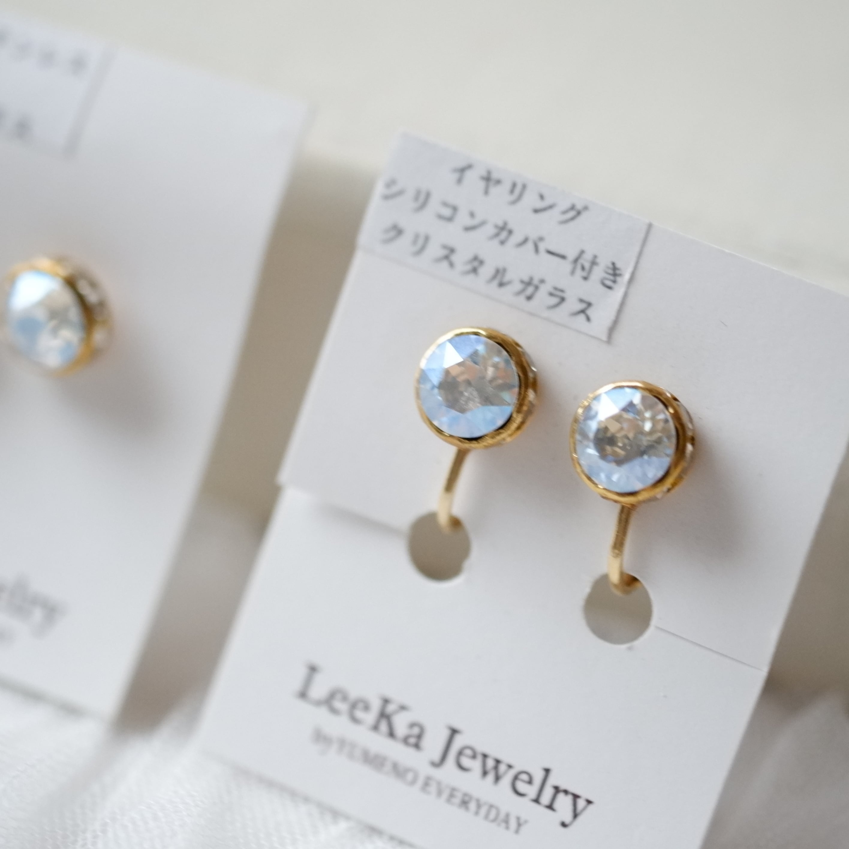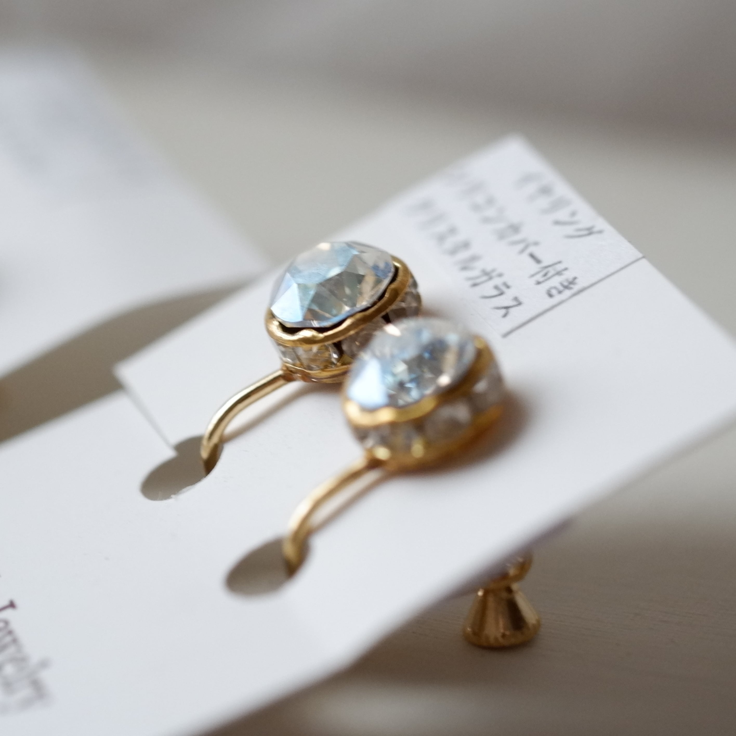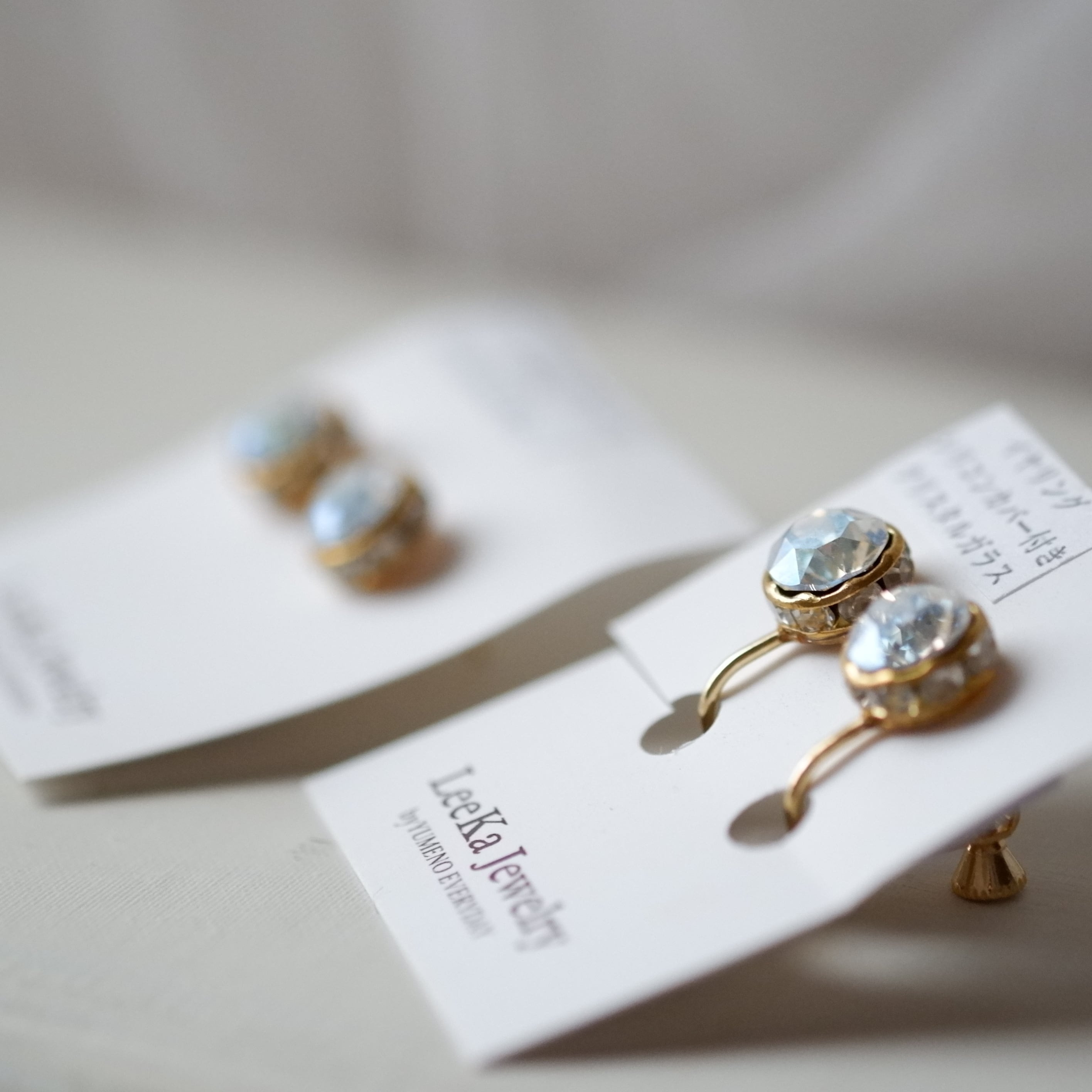 【イヤリング限定】クリスタルガラス グラデーションクリア ×ジュエリー台座 シンプル 一粒 イヤリング/ピアス 金属アレルギー対応 サージカルステンレス