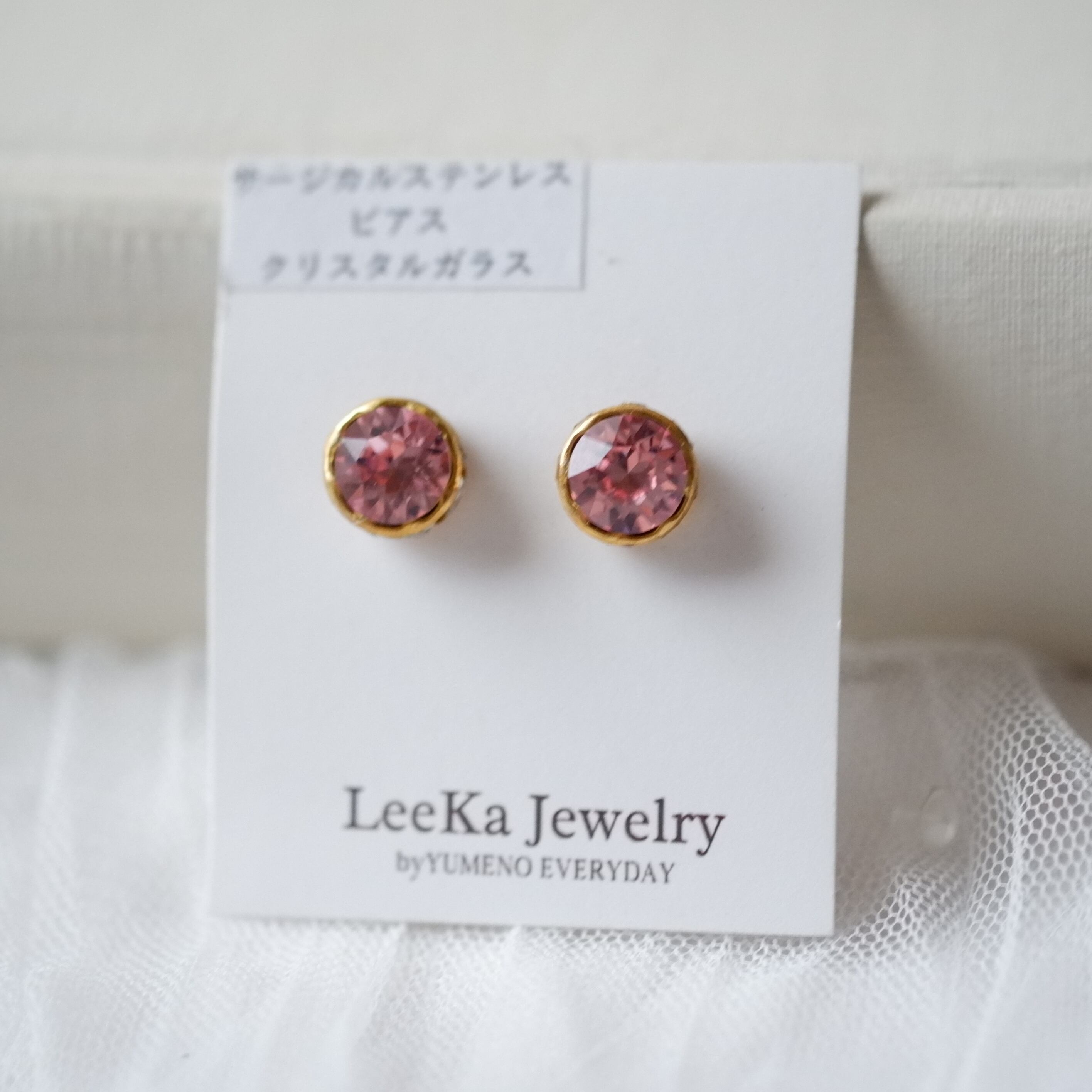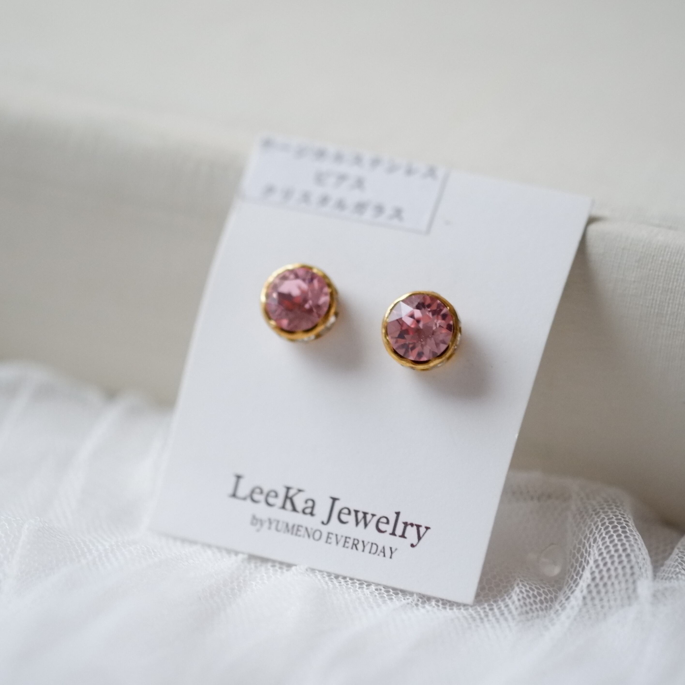 【ピアス限定】クリスタルガラス ライトピンク ×ジュエリー台座 シンプル 一粒 イヤリング/ピアス 金属アレルギー対応 サージカルステンレス