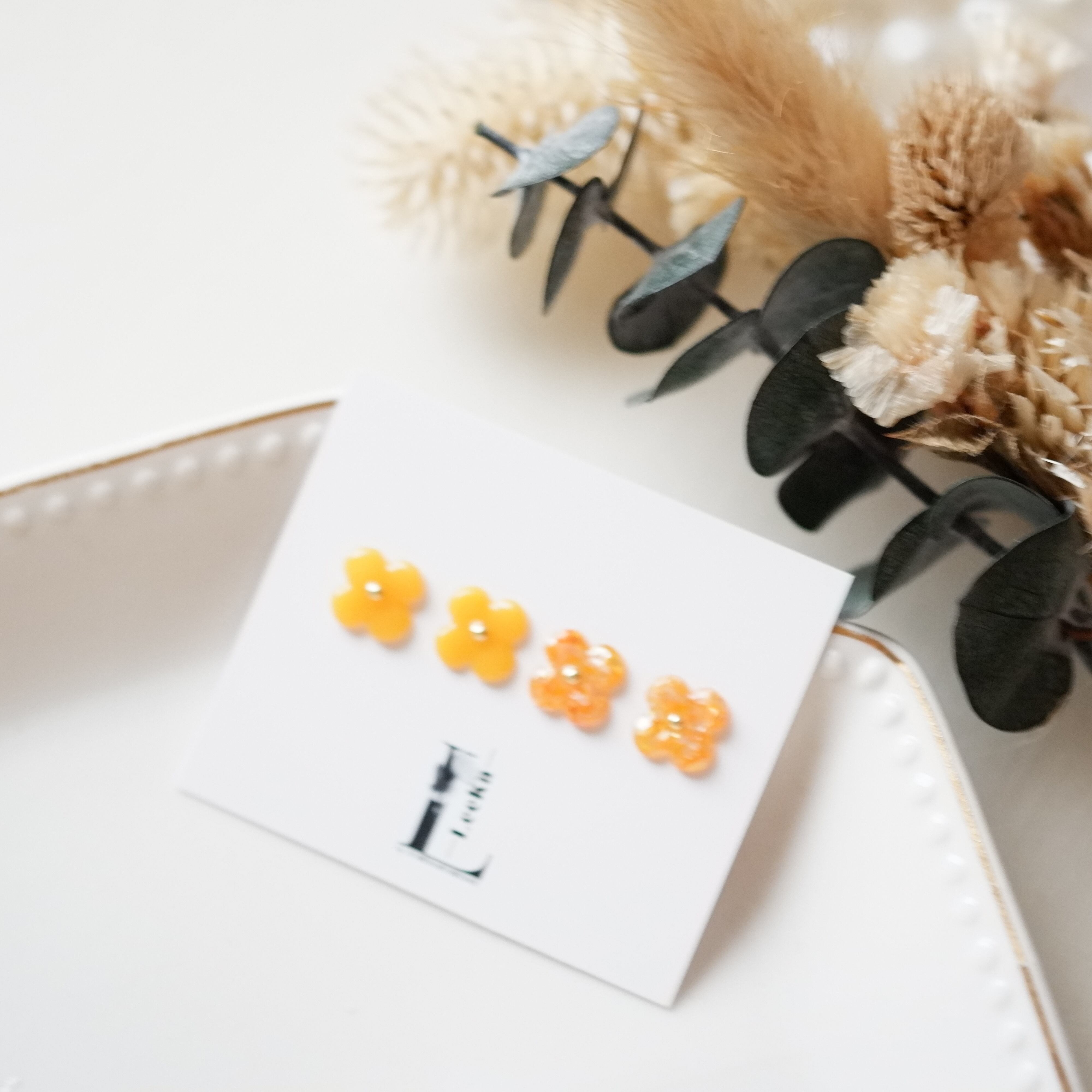つけっぱなしOK 金木犀のお花 4個セット ピアス/イヤリング サージカルステンレス 金属アレルギー対応 小さい 小粒 キンモクセイ