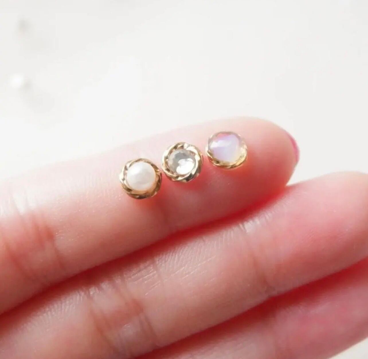 10月 誕生石 ジュエリーセット 天然石 オパール ピアス/イヤリング つけっぱなしOK 金属アレルギー応 サージカルステンレスサー小さい 小粒 1粒ピアス 3点セット