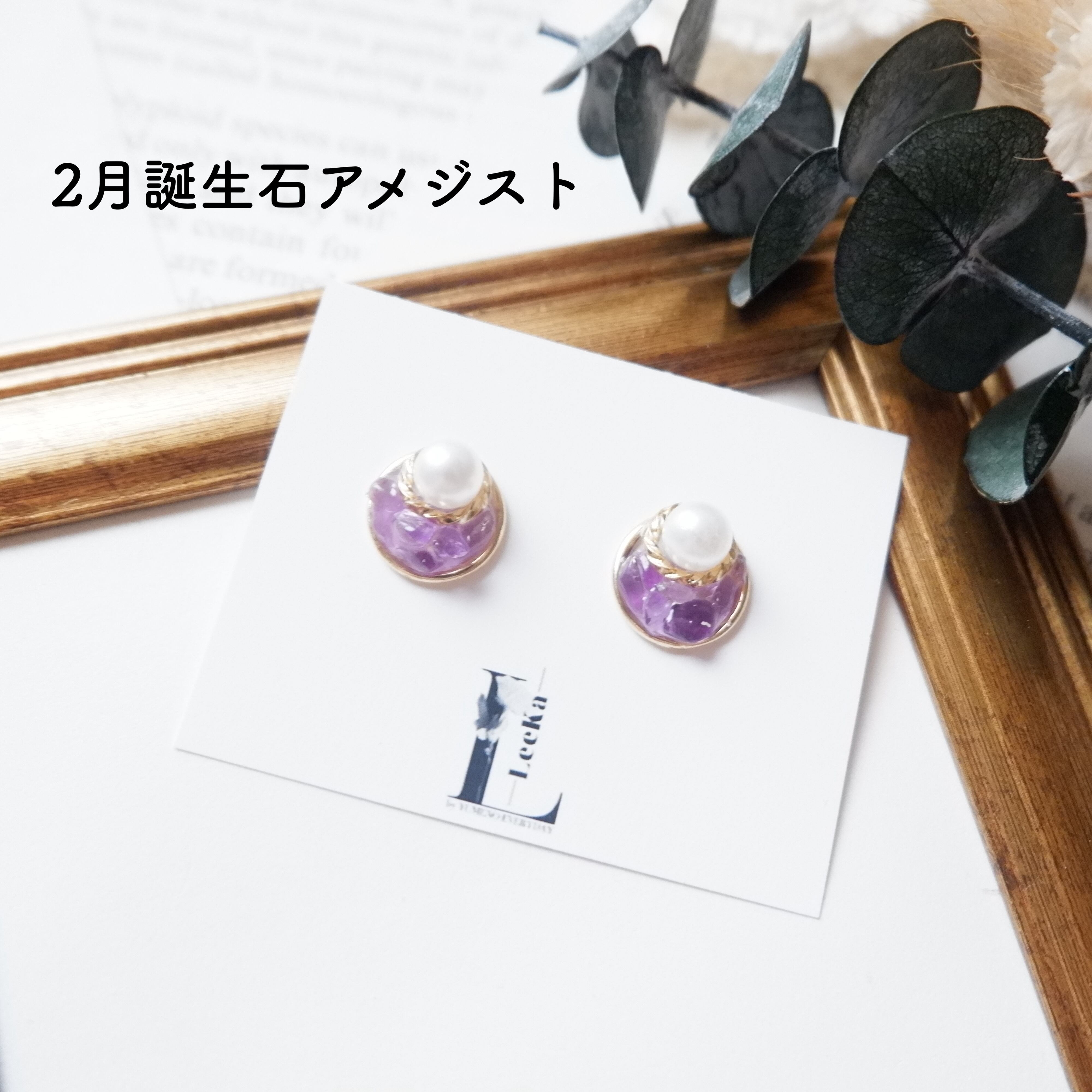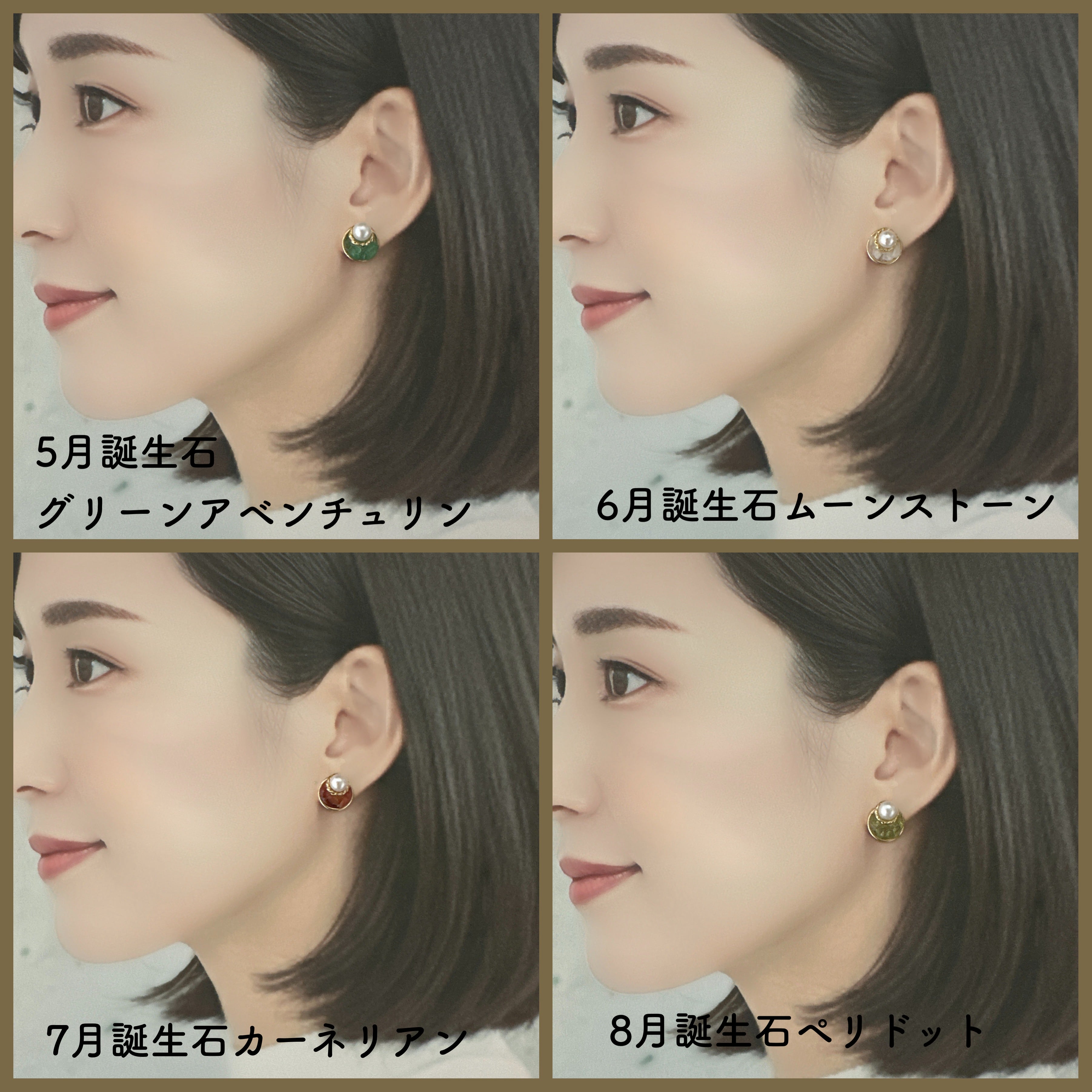 誕生石ジュエリー 天然石×パール イヤリング/ピアス シンプル 金属アレルギー対応 サージカルステンレス 上品 エレガント
