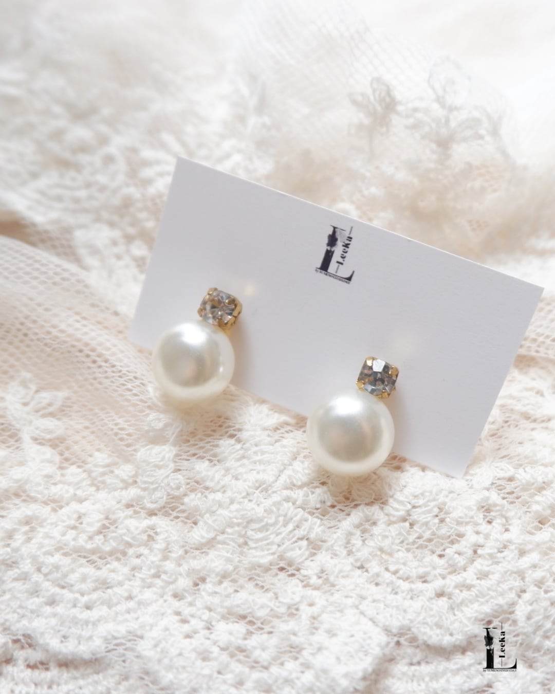 一年中カジュアルにもキレイめにも使えるようにクリスタルガラスは控えめ、パールを大きめに。