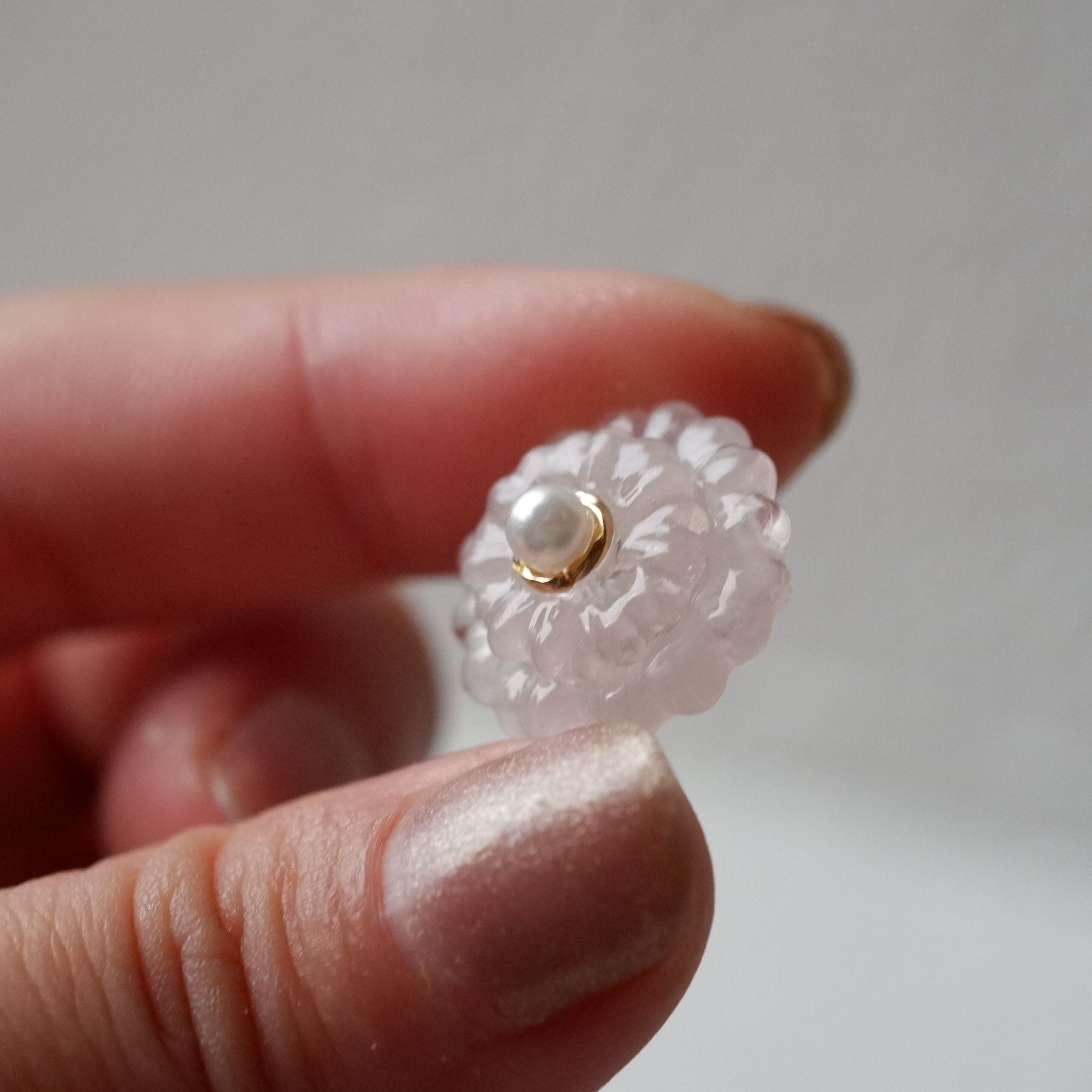 母の日の象徴として愛されるカーネーションを、天然石ローズクォーツで一粒ずつ丁寧に象りました。