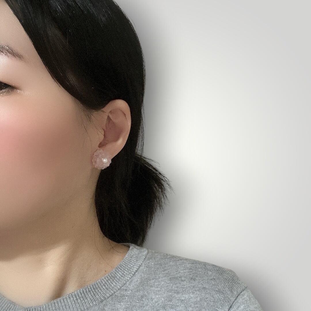 天然石 ローズクォーツ 心に春を咲かせる、優しさのカーネーション ピアス/イヤリング つけっぱなしOK 金属アレルギー応 サージカルステンレス 母の日