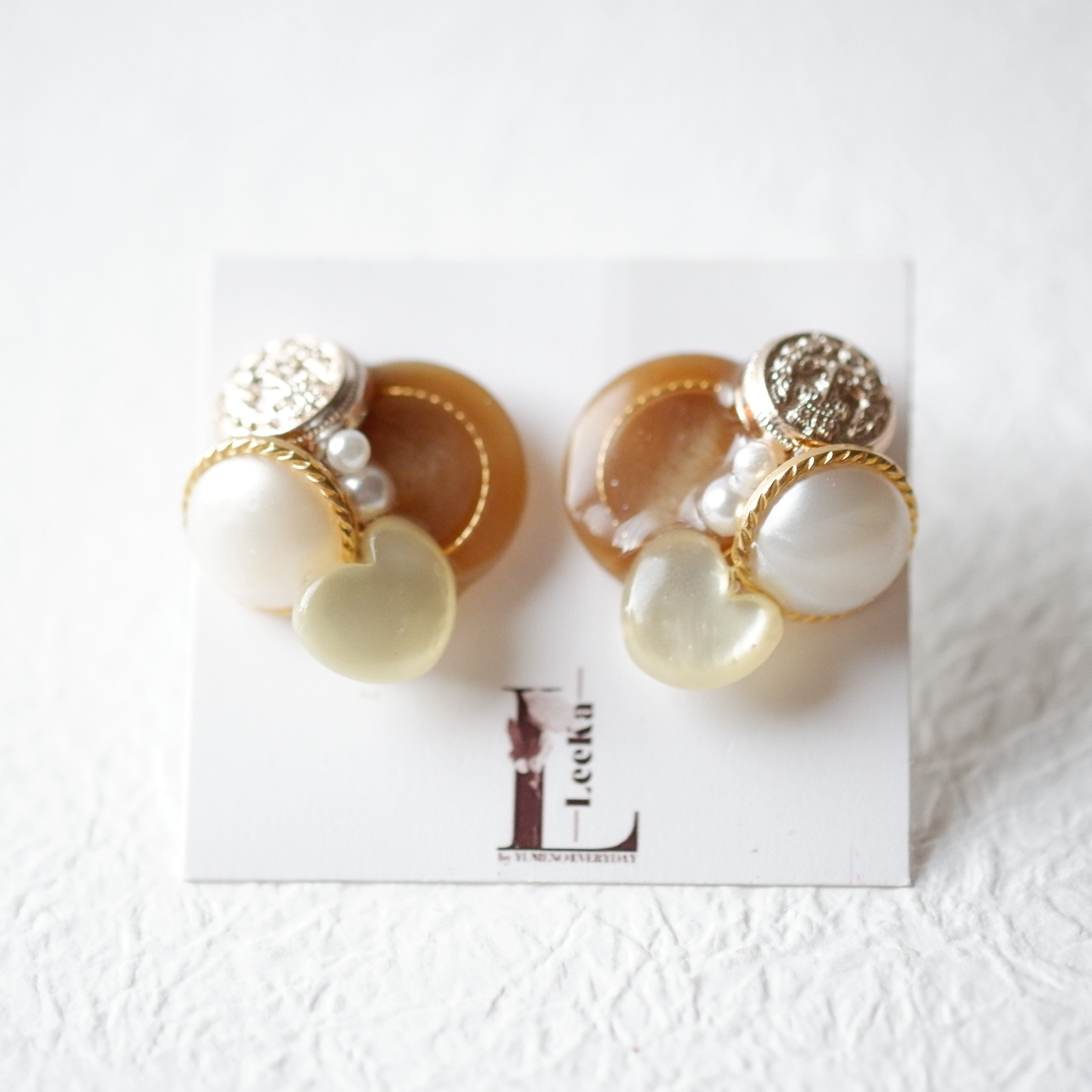 ③ボタン ピアス/イヤリング 金属アレルギー対応 大ぶり