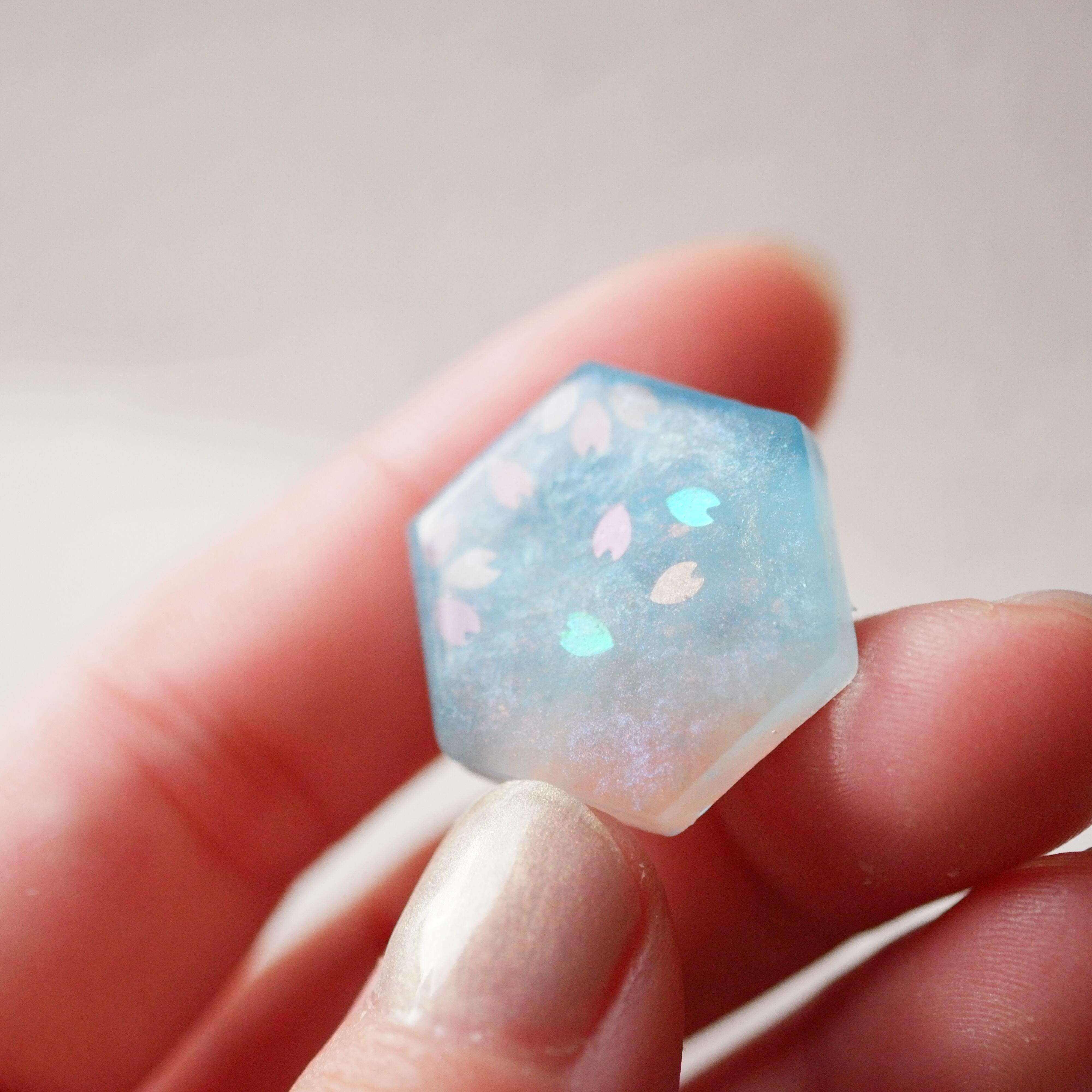 素材:レジン、桜ホロ、ピンバッジ、カラー剤