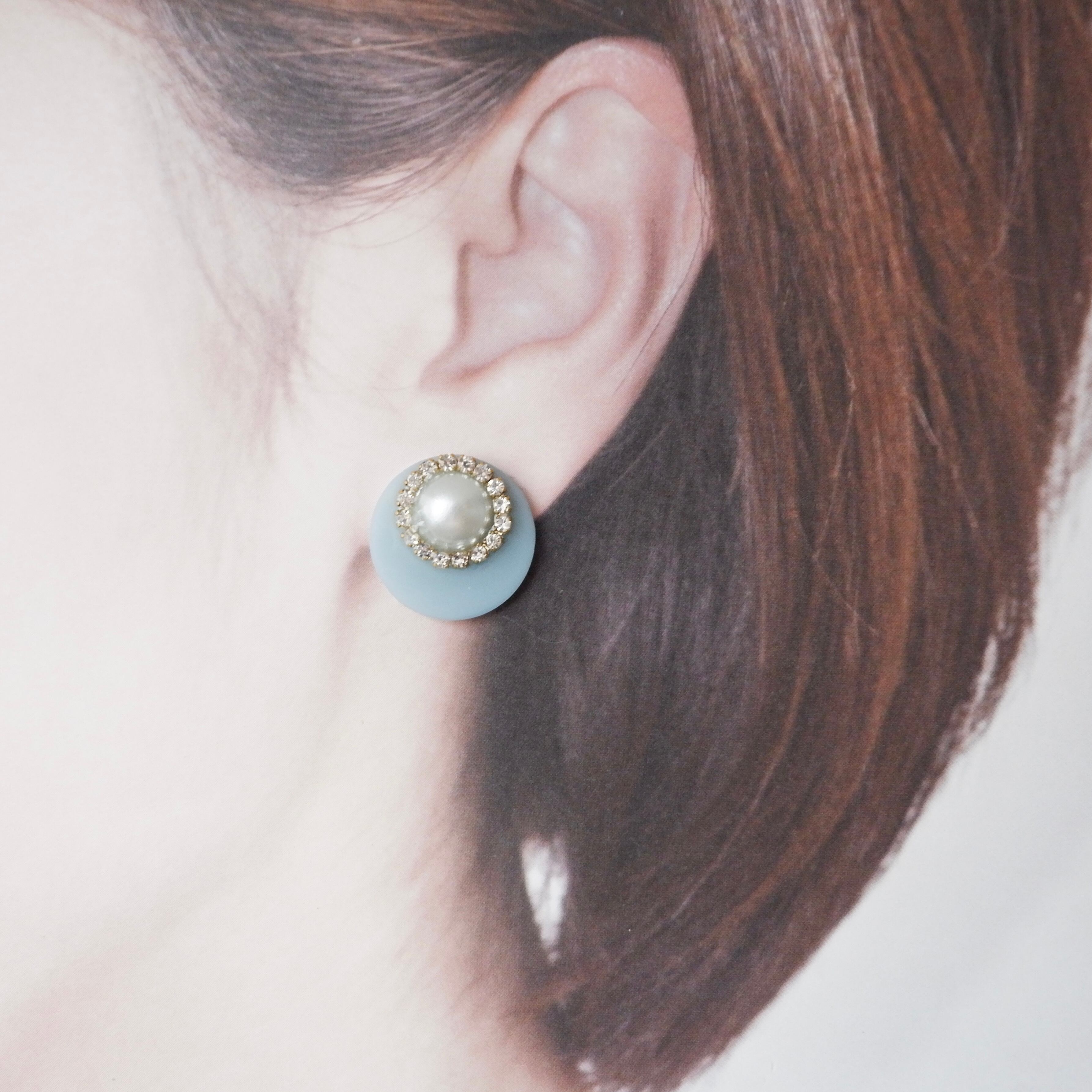 パールとクリスタルを組み合わせた艶の無いマットな質感の大人Ladyのためにデザインをしたイヤリング、ピアスです。