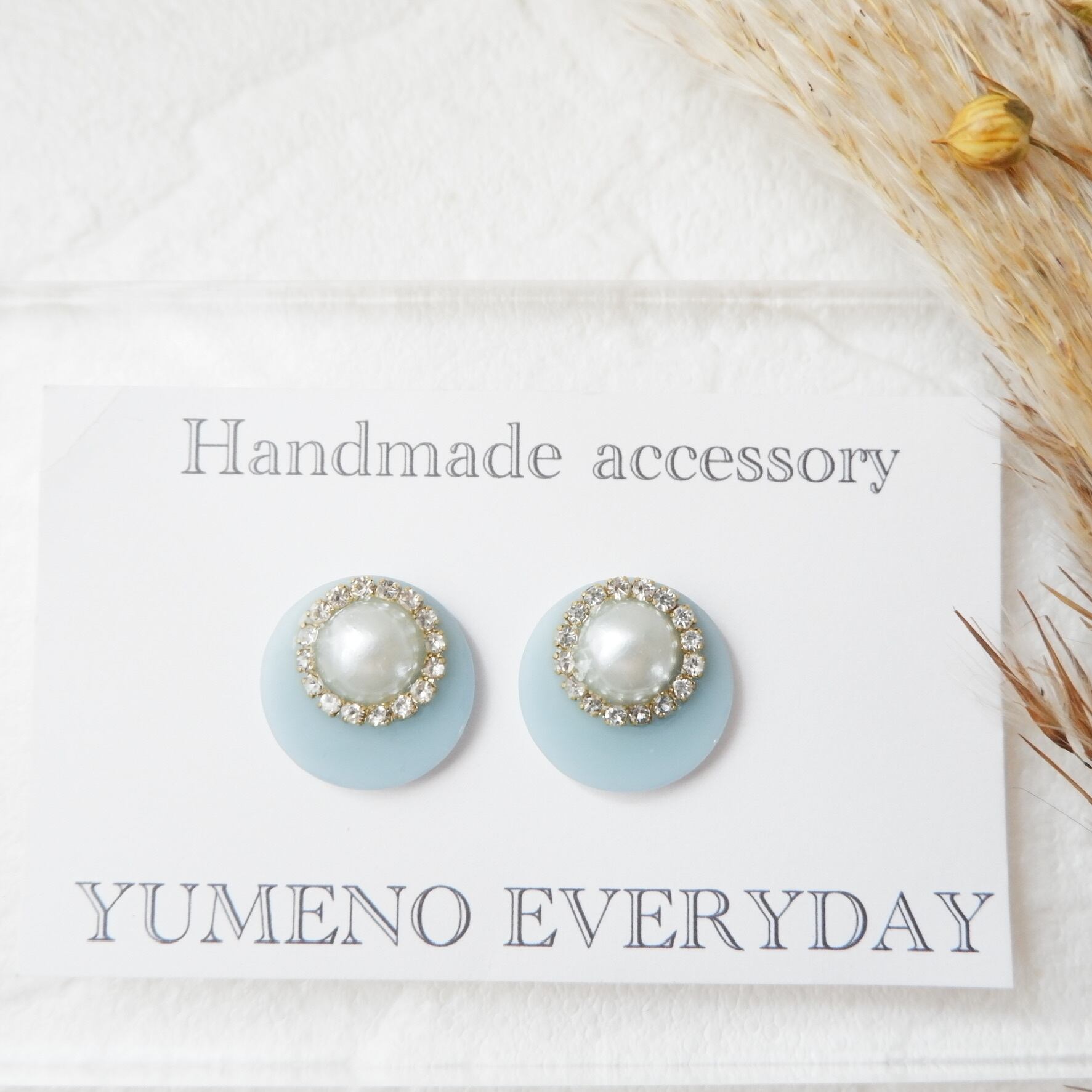 大人Ladyのマット✖️パール✖️クリスタルイヤリング/ピアス(くすみブルー)