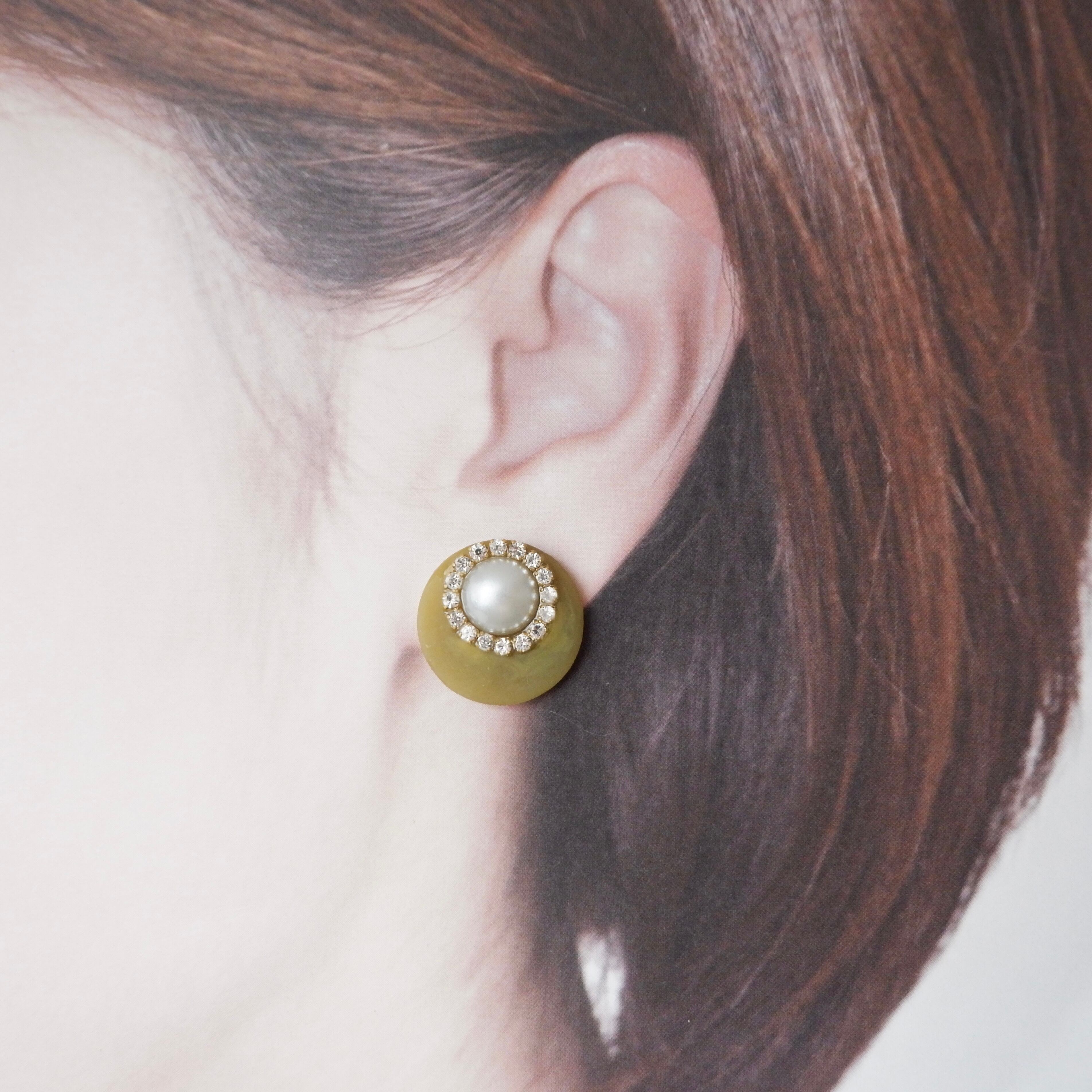 パールとクリスタルを組み合わせた艶の無いマットな質感の大人Ladyのためにデザインをしたイヤリング、ピアスです。
