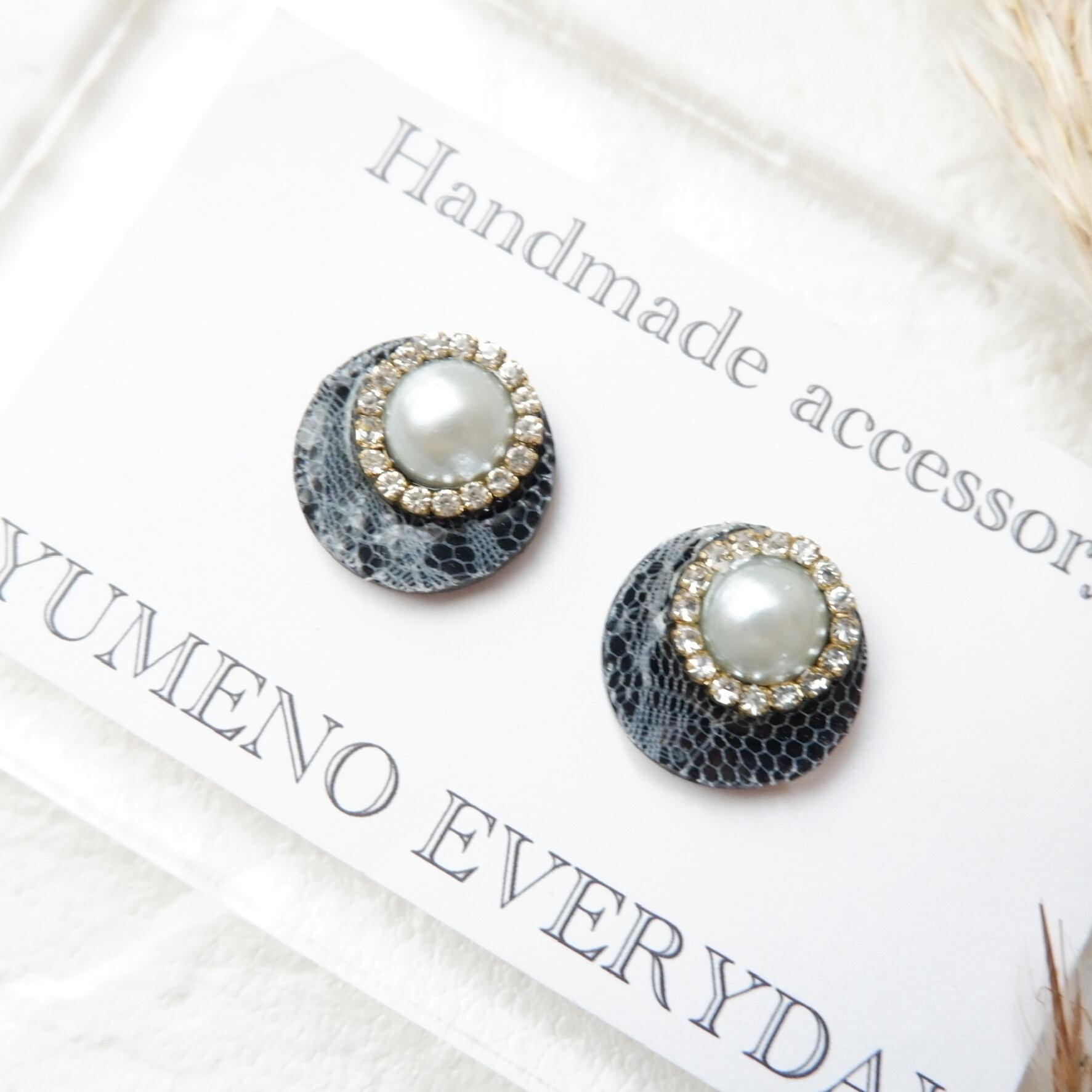 大人Ladyのレース✖️パール✖️クリスタルイヤリング/ピアス(ブラック)
