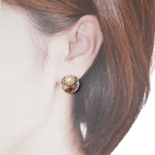 天然石スモーキークォーツの透明感✖️パールラウンドイヤリング/ピアス