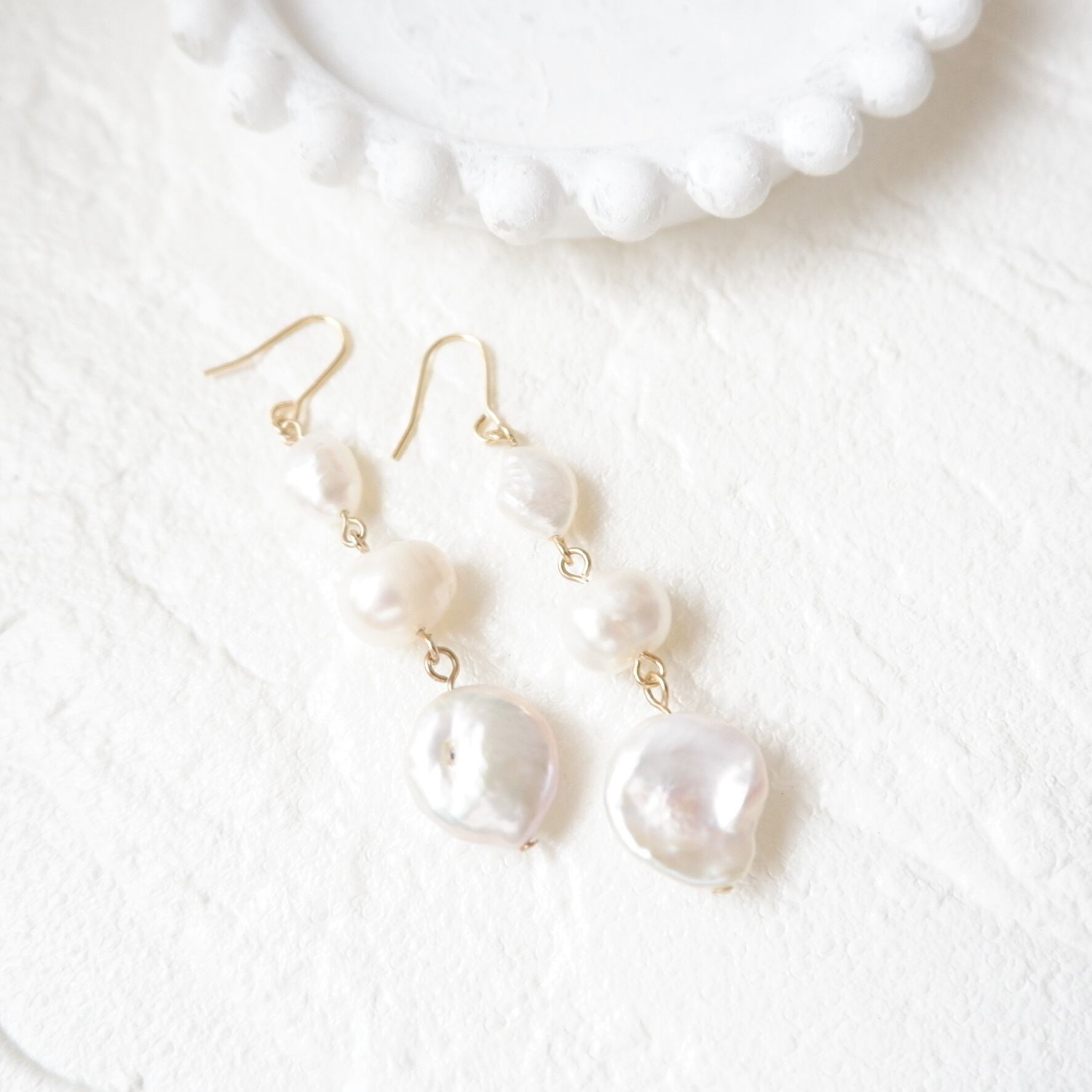 あえての不揃いさが魅力的 淡水パール3連イヤリング/ピアス