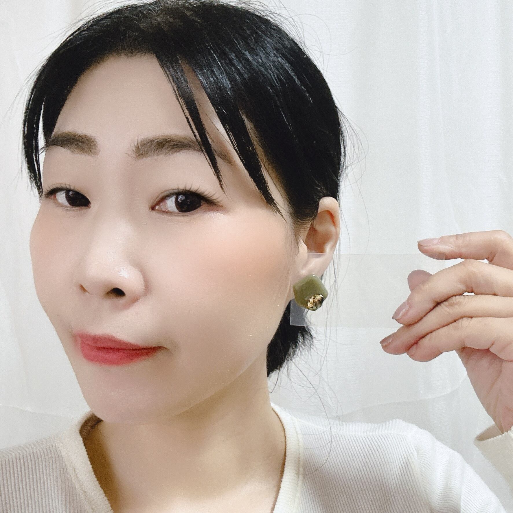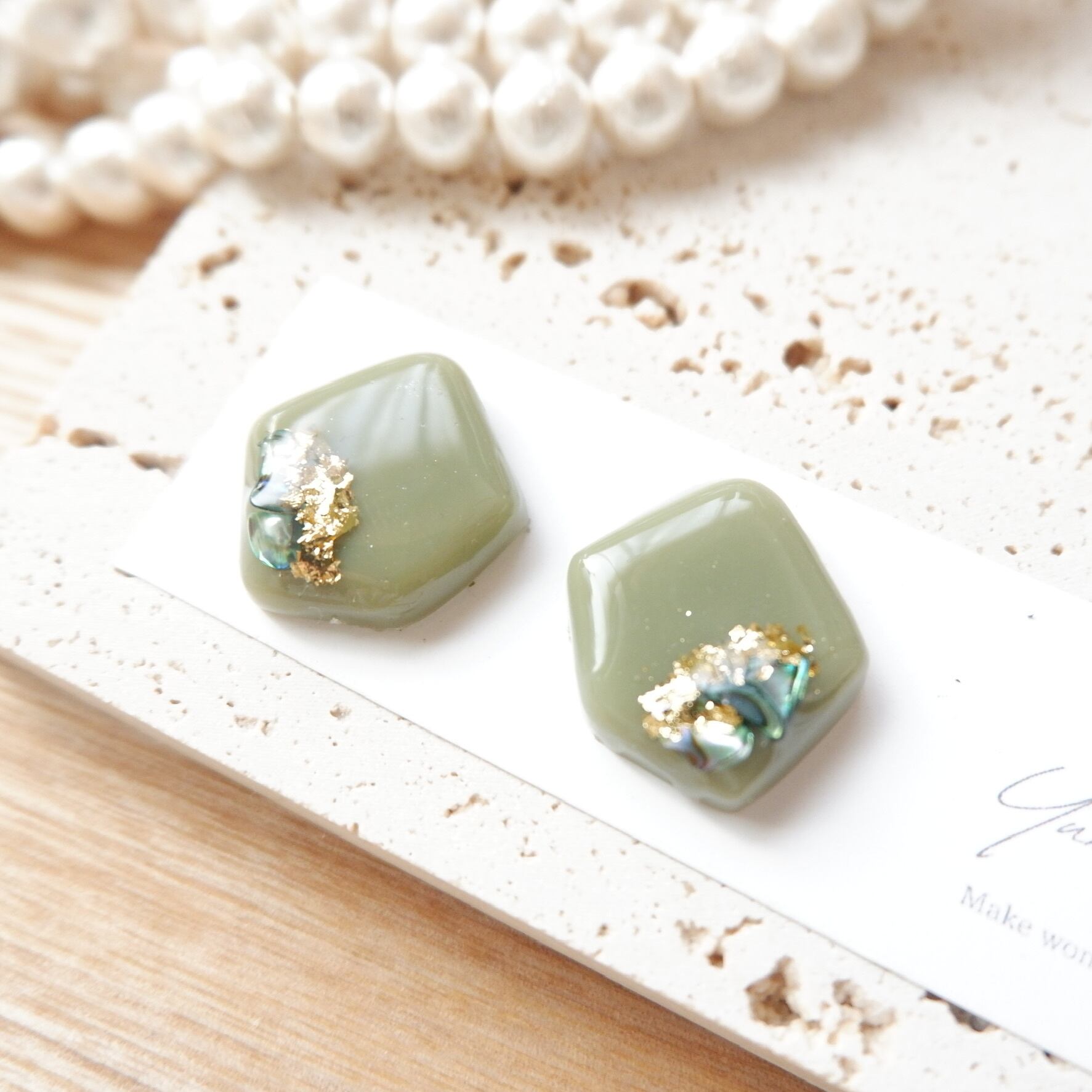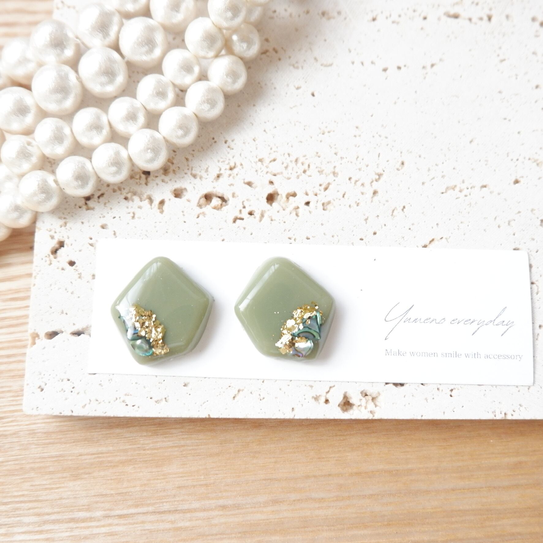 五角形×くすみカラー×シェル グリーン イヤリング/ピアス