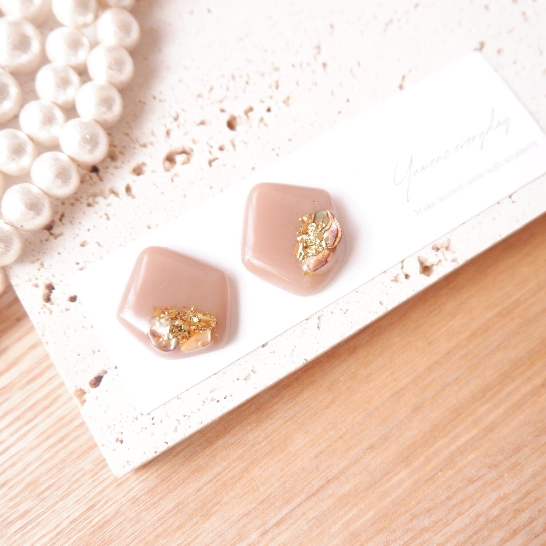 五角形×くすみカラー×シェル ライトブラウン イヤリング/ピアス