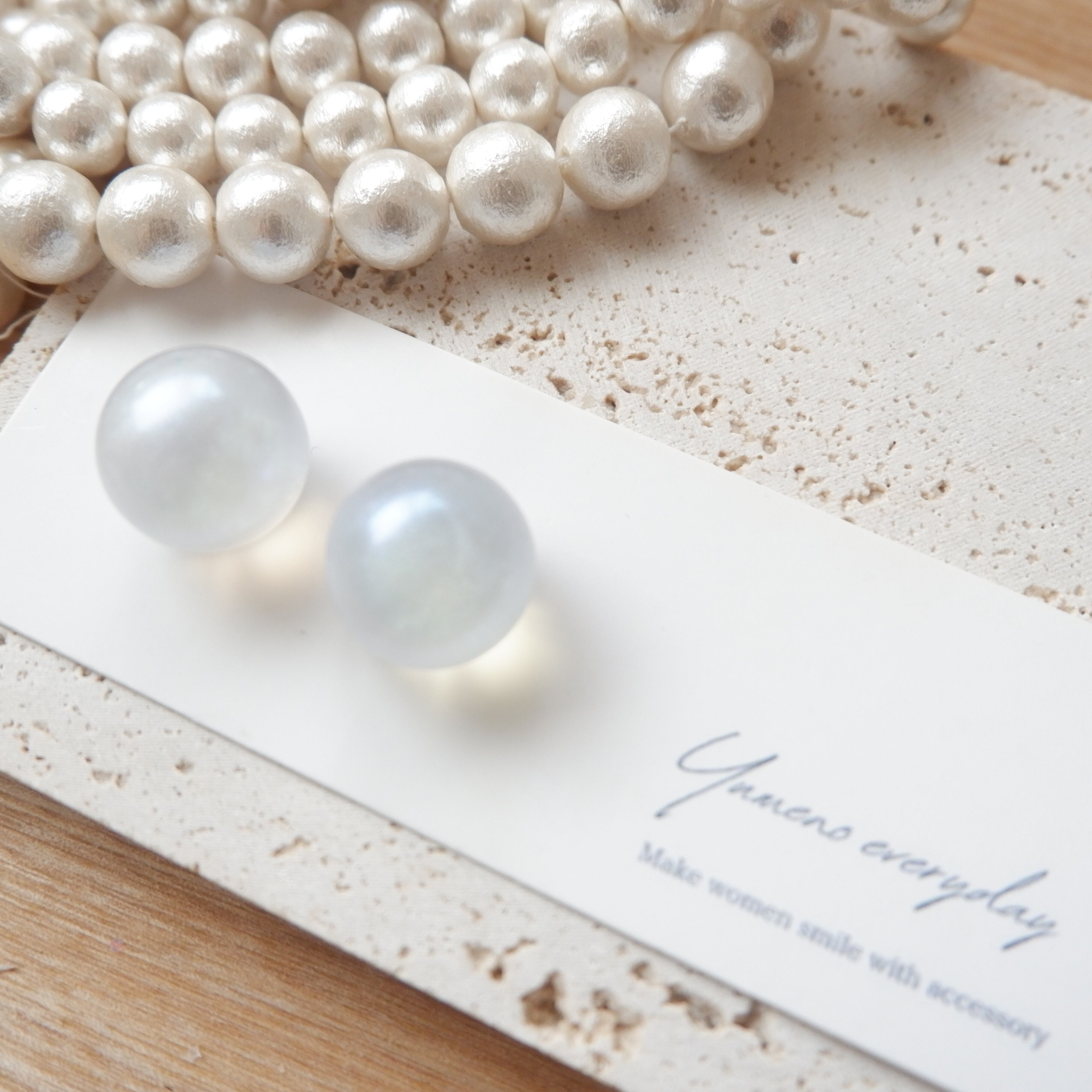 無色透明のレジン液に着色剤を使わず、ふんわりとした優しい人魚姫のココロのような不思議なパールです。