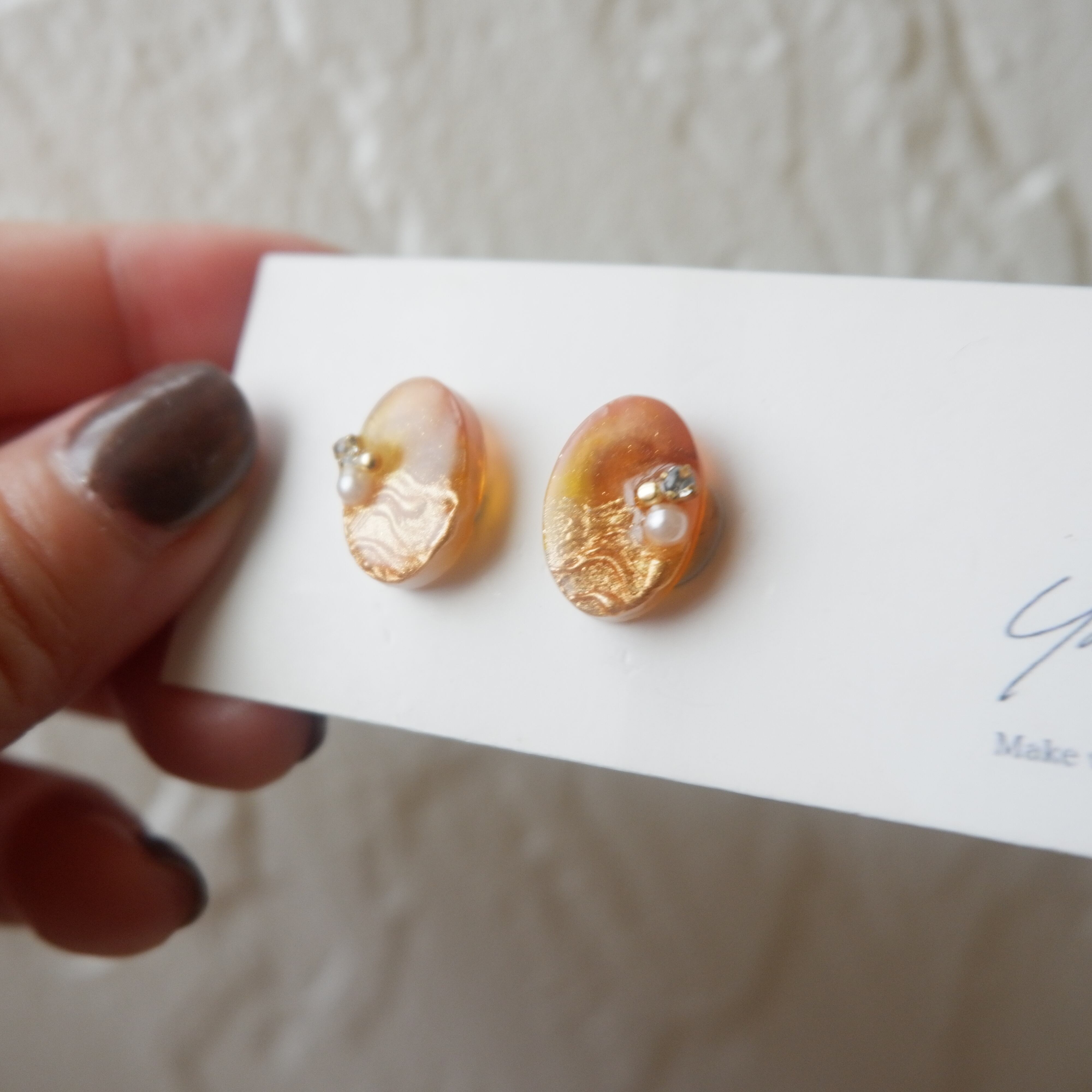 ネイルみたいなアクセサリー ミニべっ甲×ミラーアート クリスタルガラス パール イヤリング/ピアス