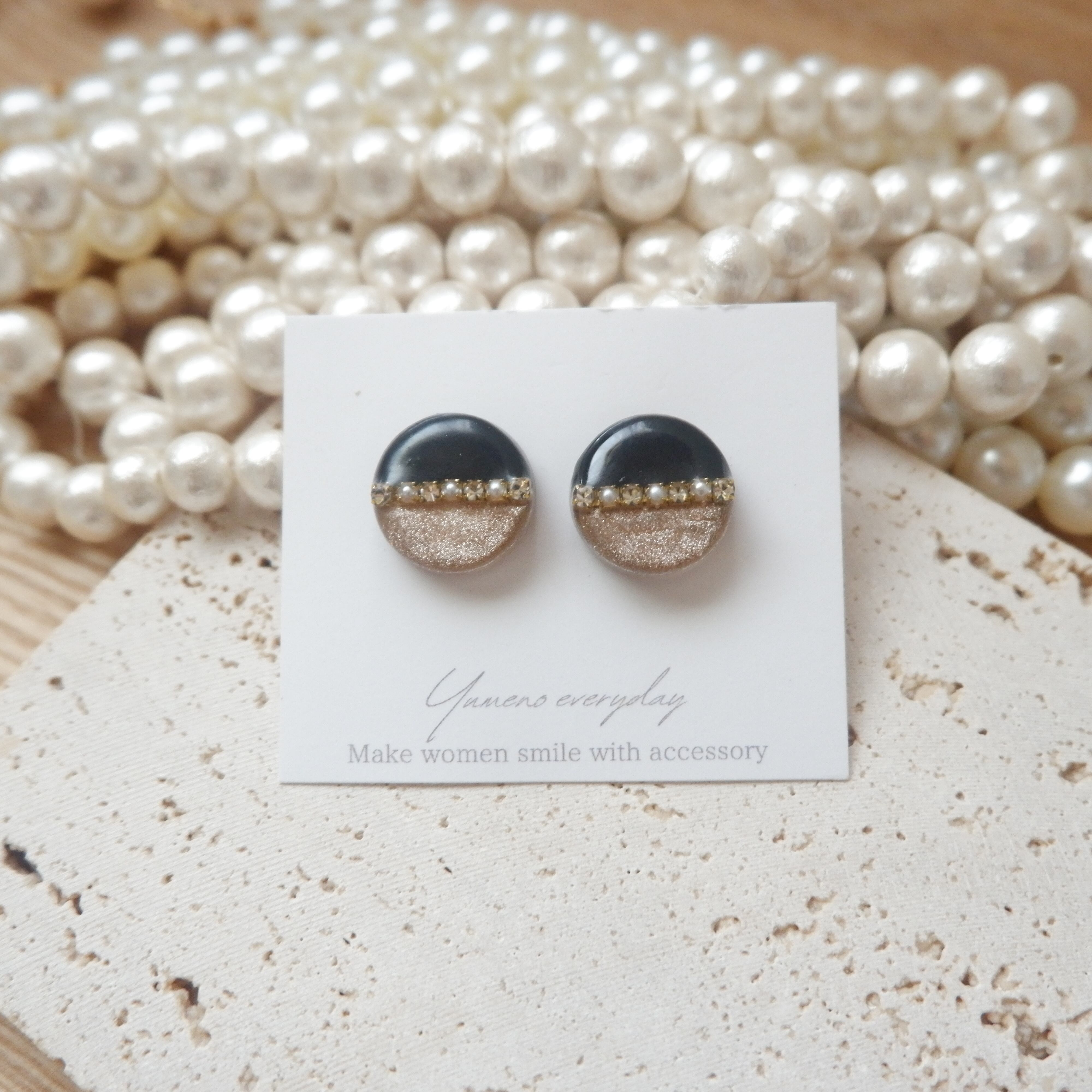 OTONA バイカラー ブラック×ゴールド イヤリング/ピアス