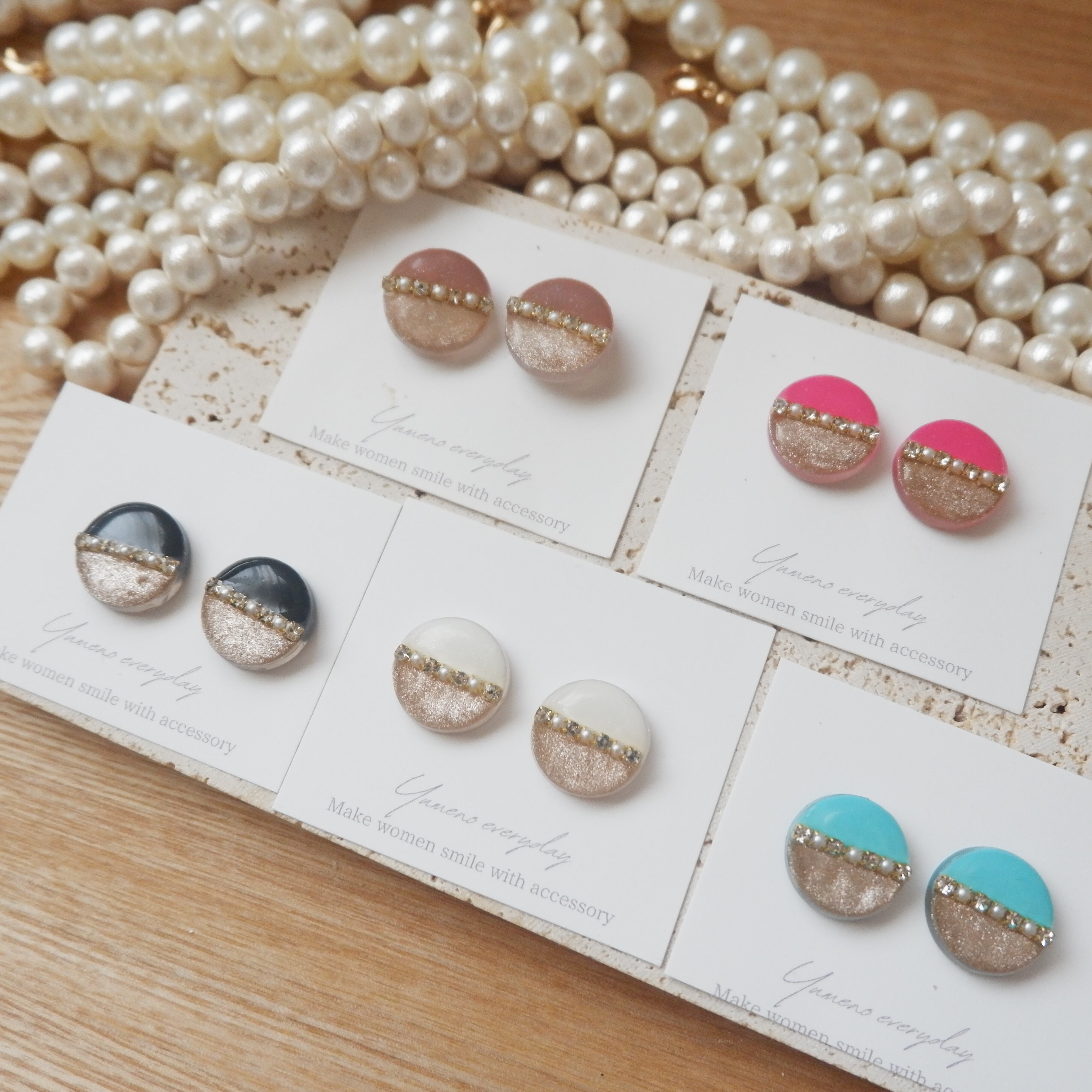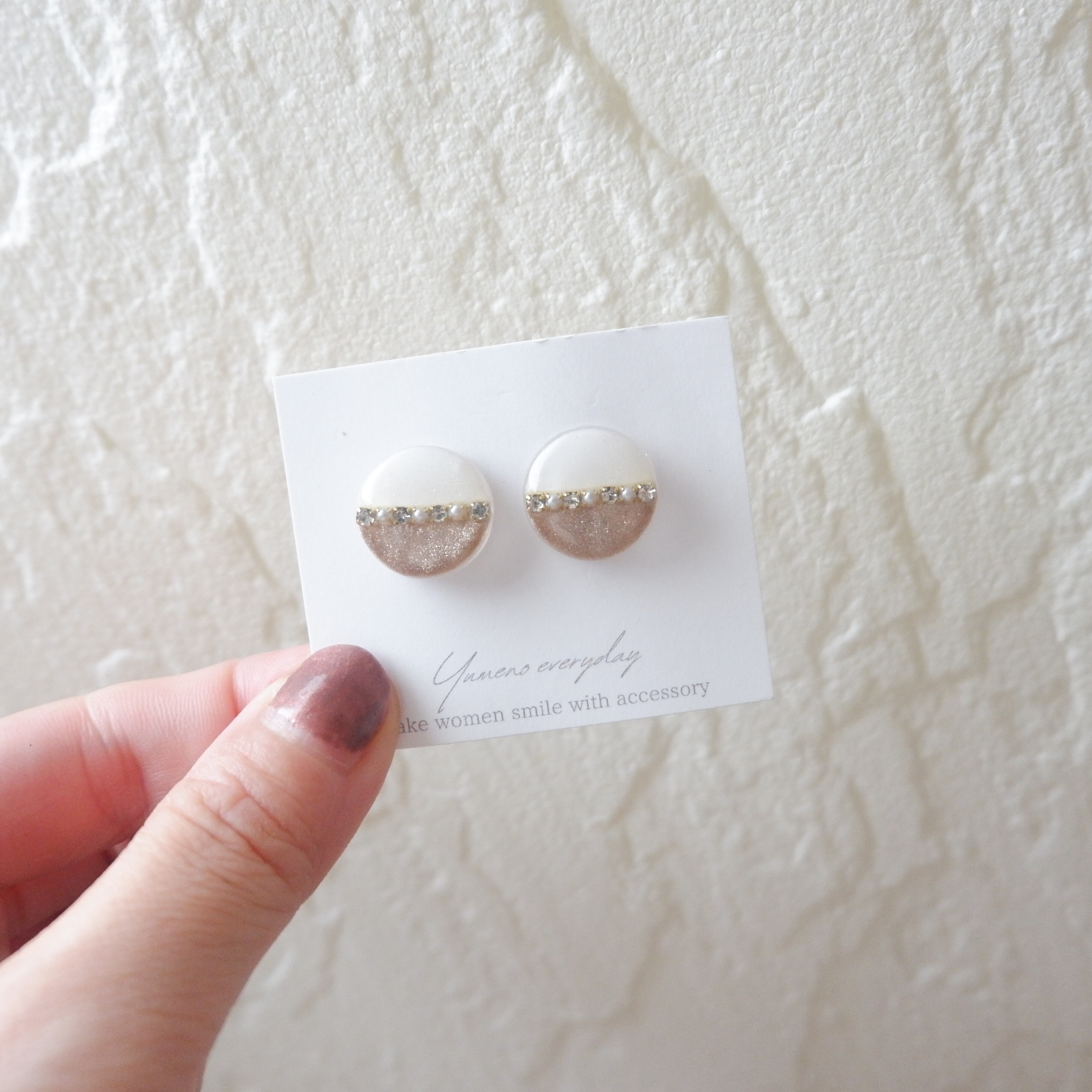 とってもシンプルなバイカラーの丸い耳飾りです。