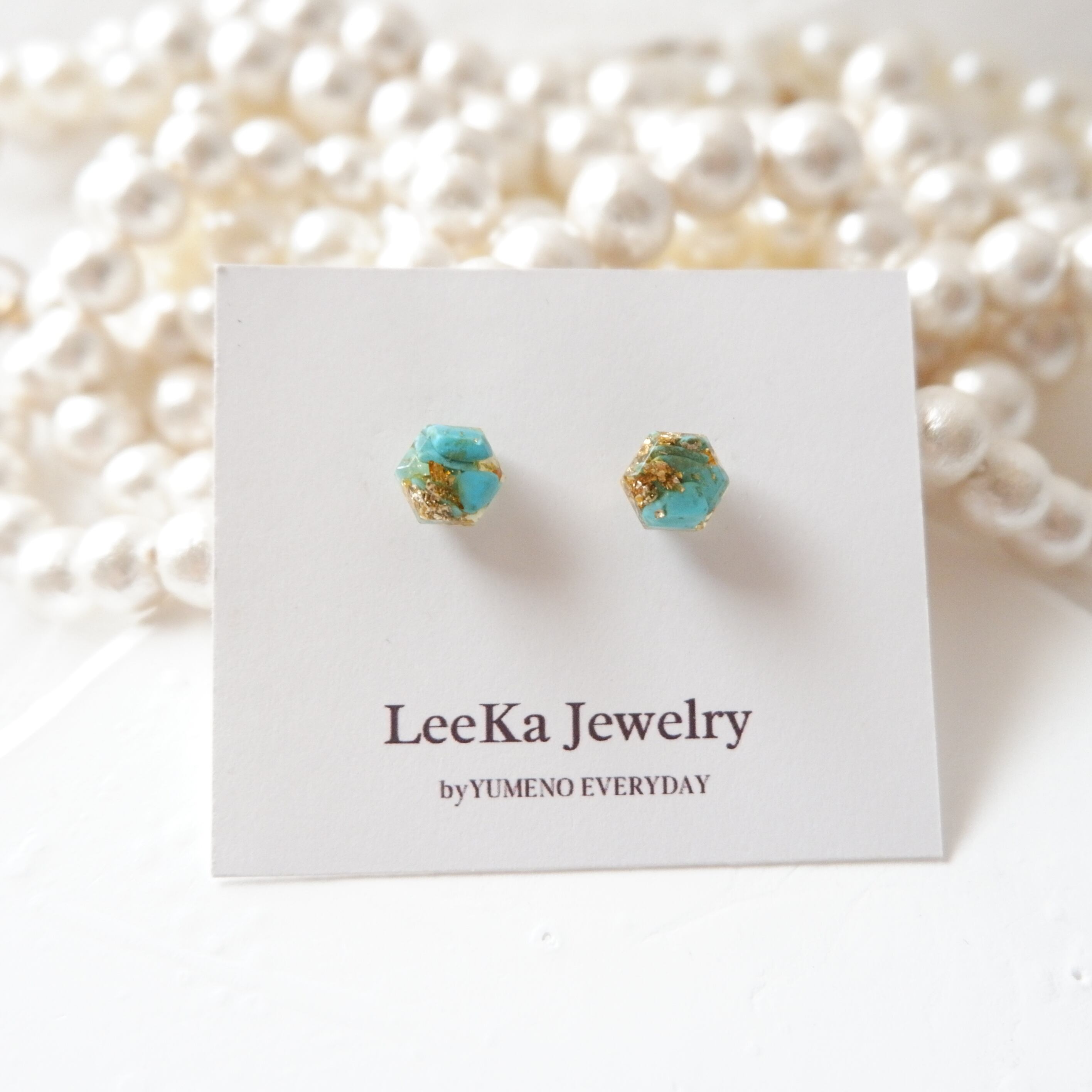 天然石KOTSUBU 小粒 六角形 ターコイズ イヤリング/ピアス