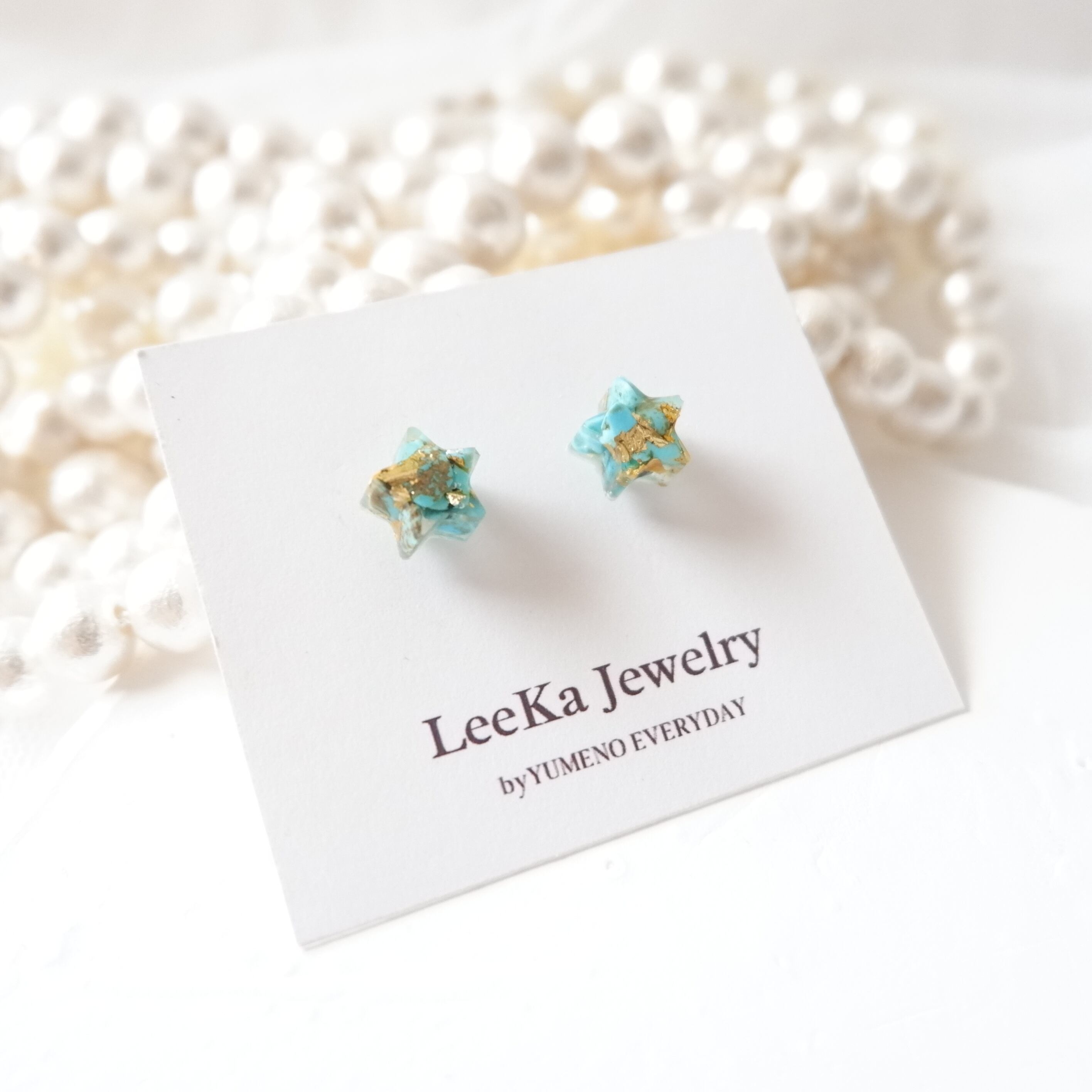 1㎝の星の中にターコイズのさざれと金箔を閉じ込めました。