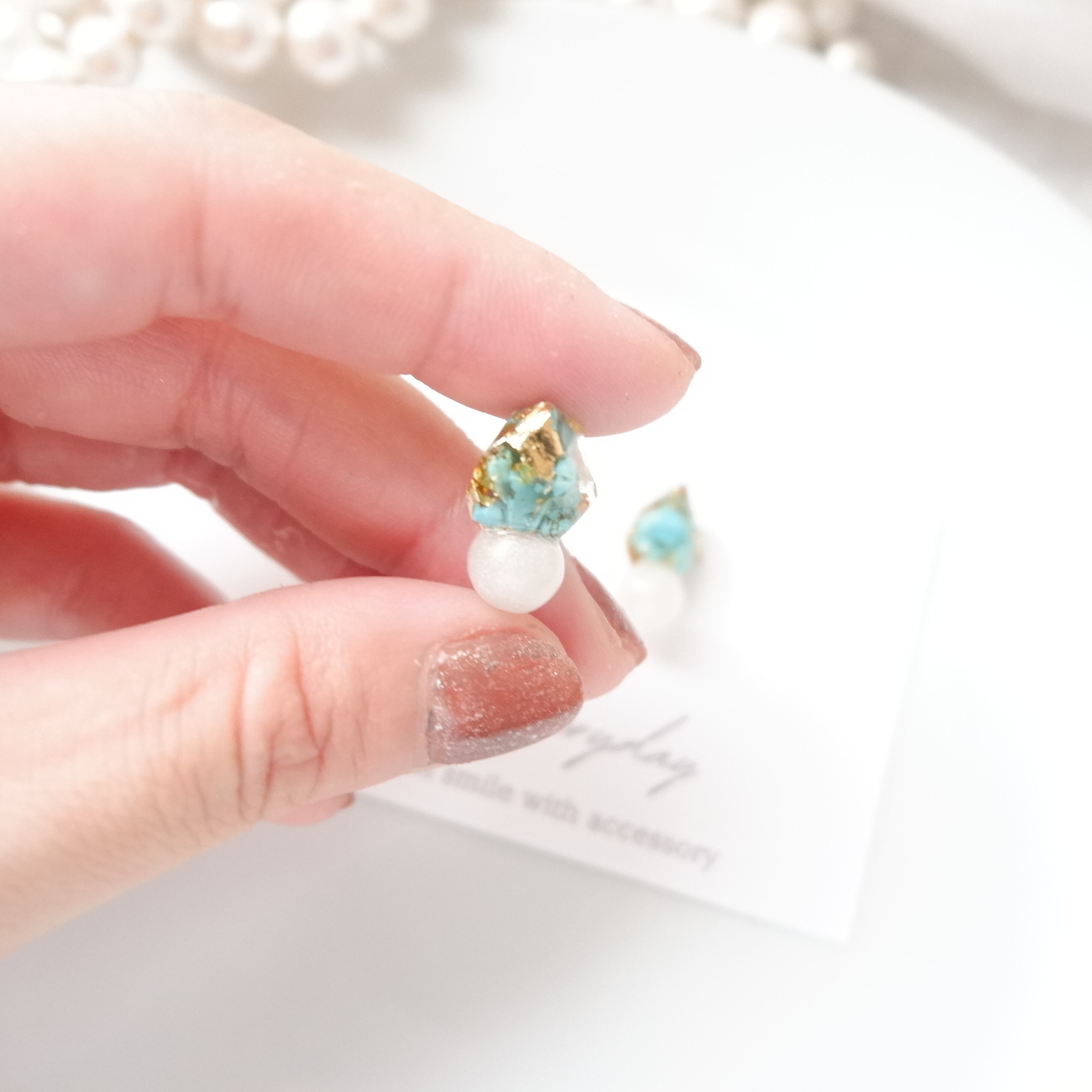 天然石 氷×パール ターコイズ イヤリング/ピアス
