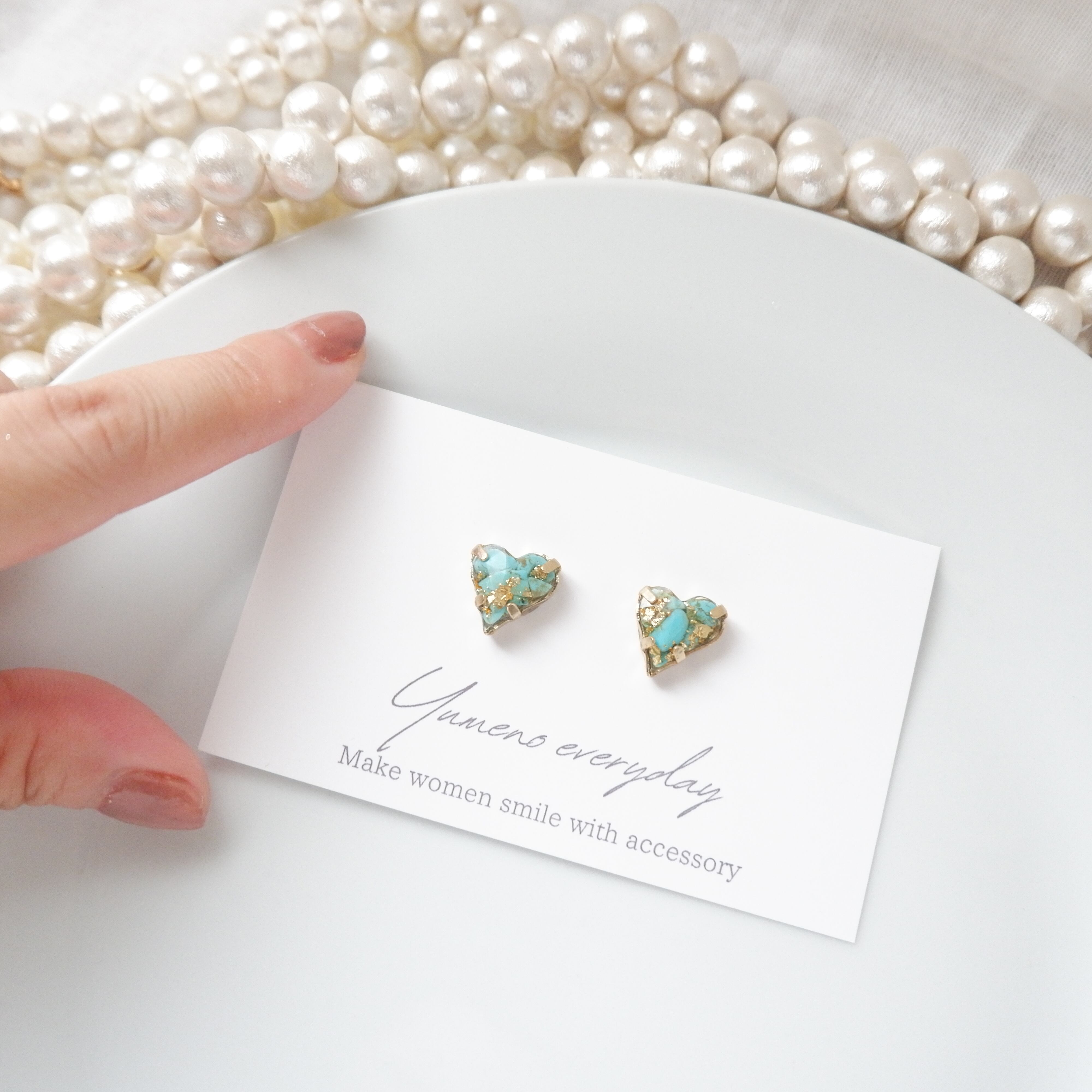 天然石のターコイズのさざれと金箔をハートのジュエリーに仕上げました。