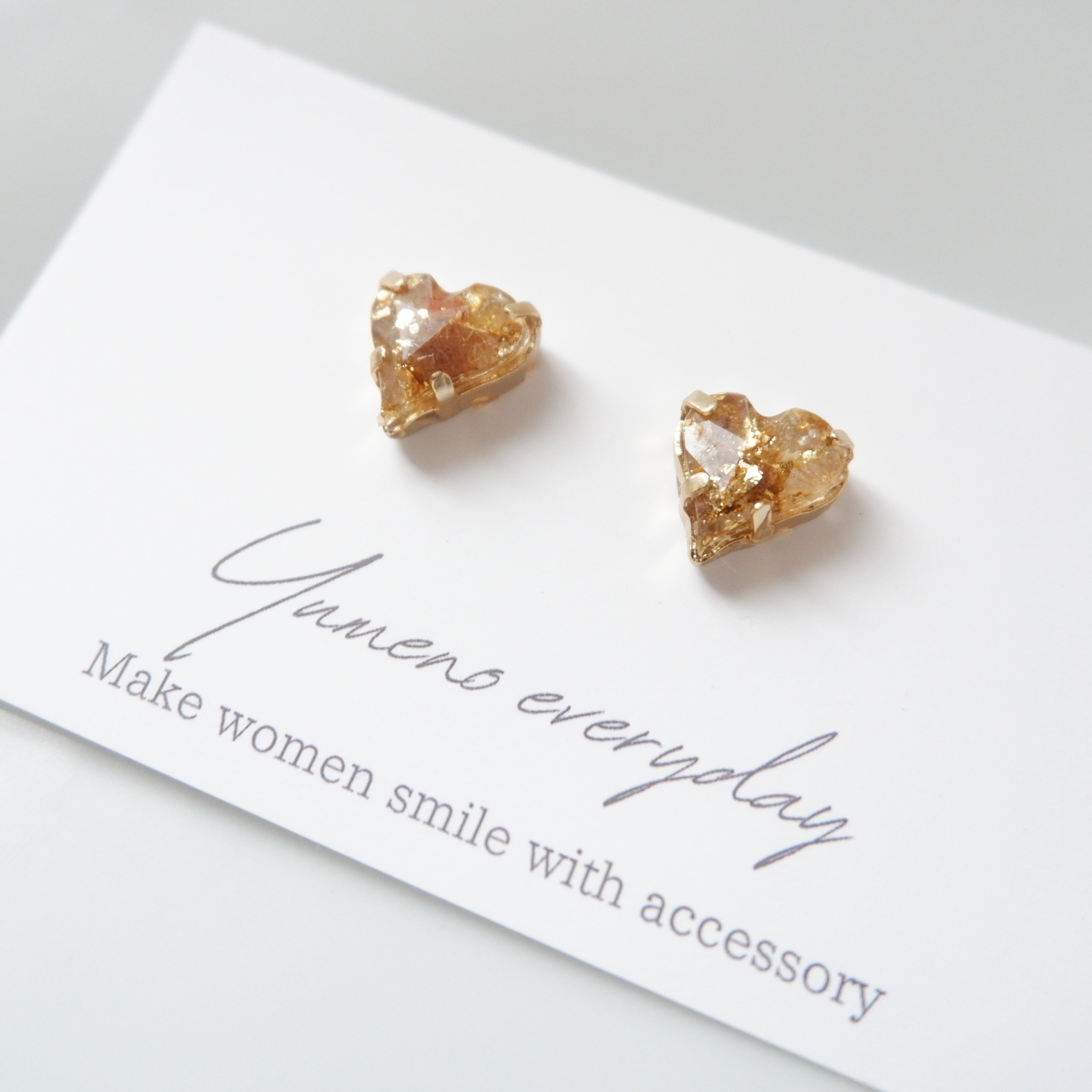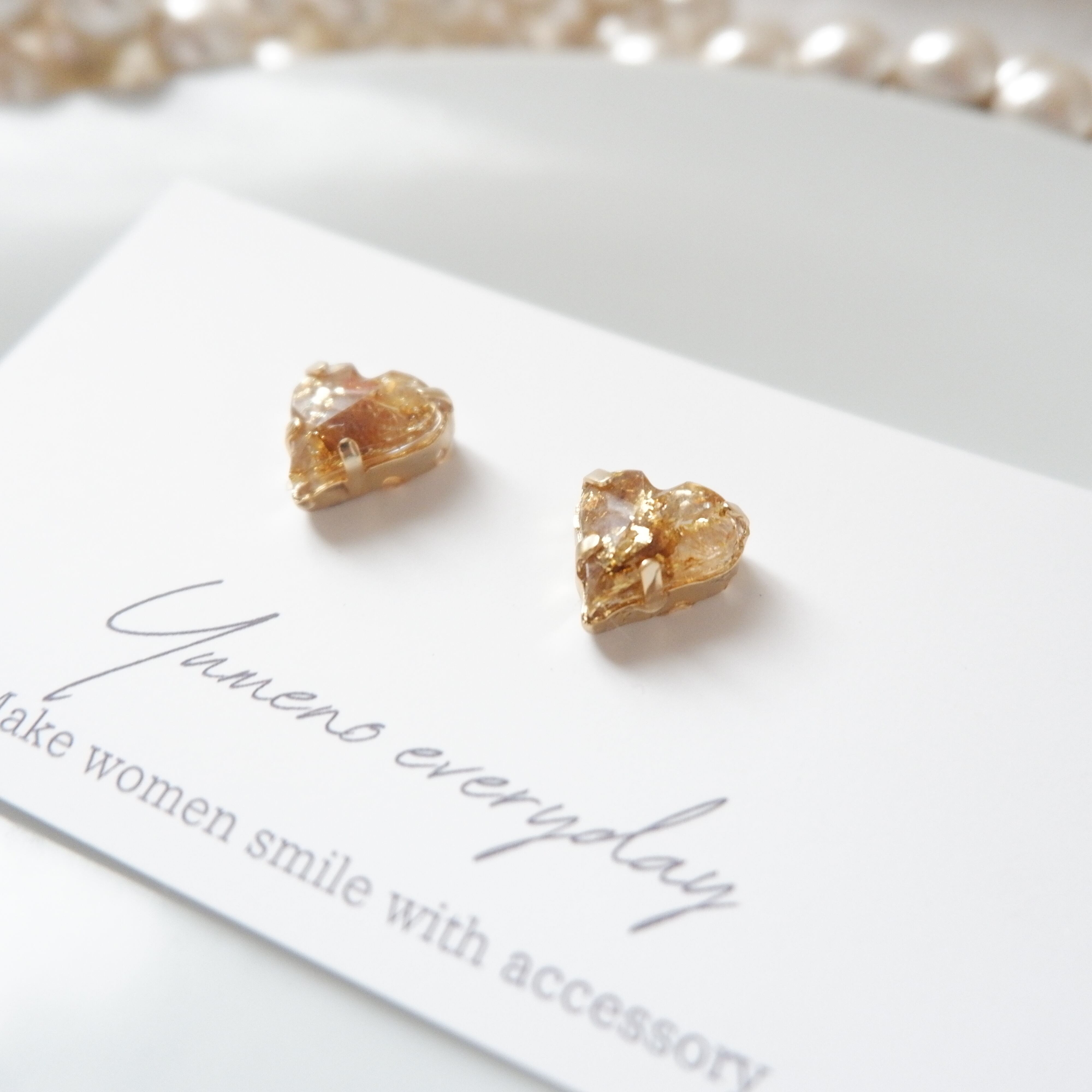 天然石のブラウンルチルクォーツのさざれと金箔をハートのジュエリーに仕上げました。