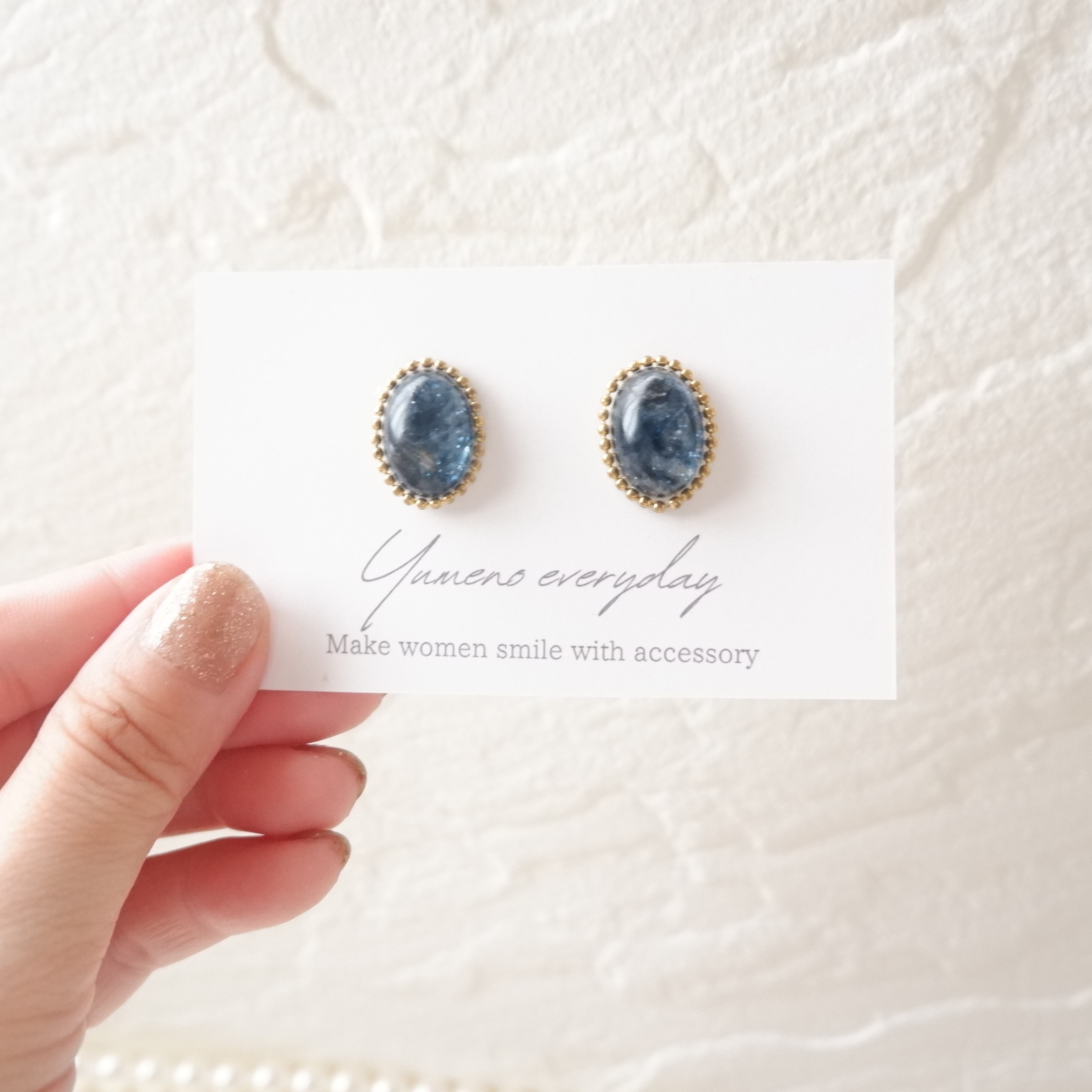 不思議なキラキラ感の神戸ピアスのシンプルなオーバル(楕円形)のダークブルーです。