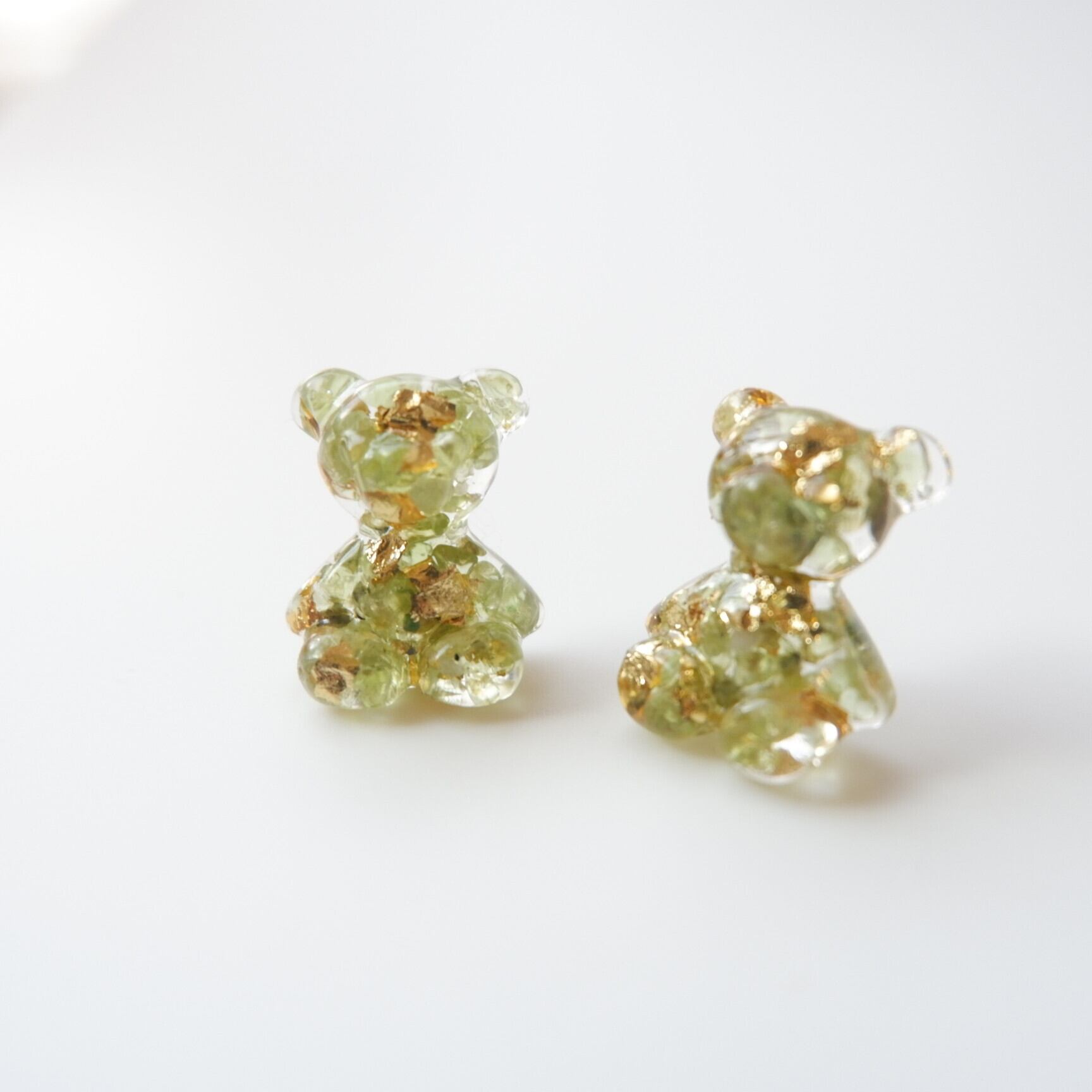 天然石 ゆめくまちゃん ペリドット イヤリング/ピアス
