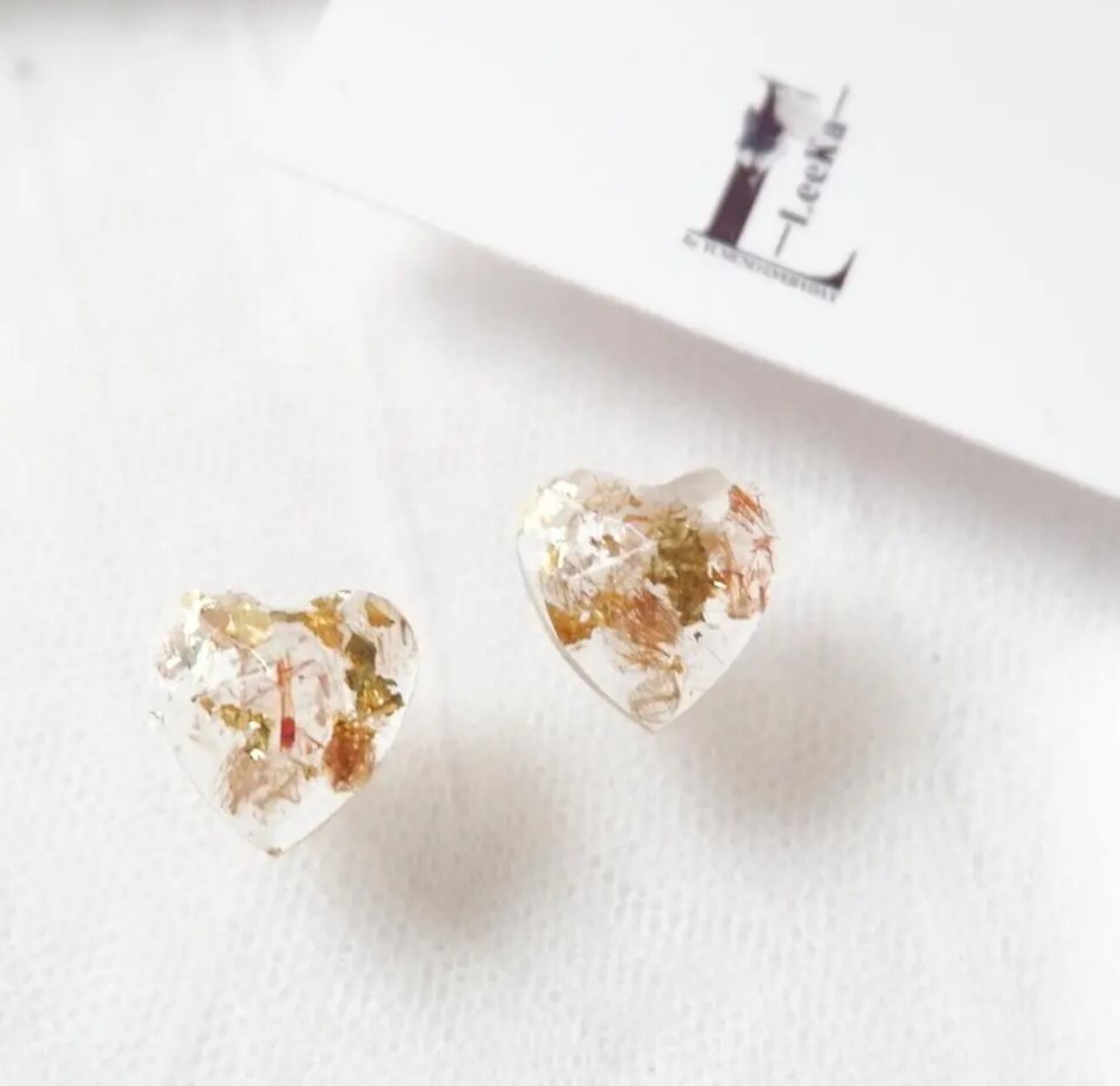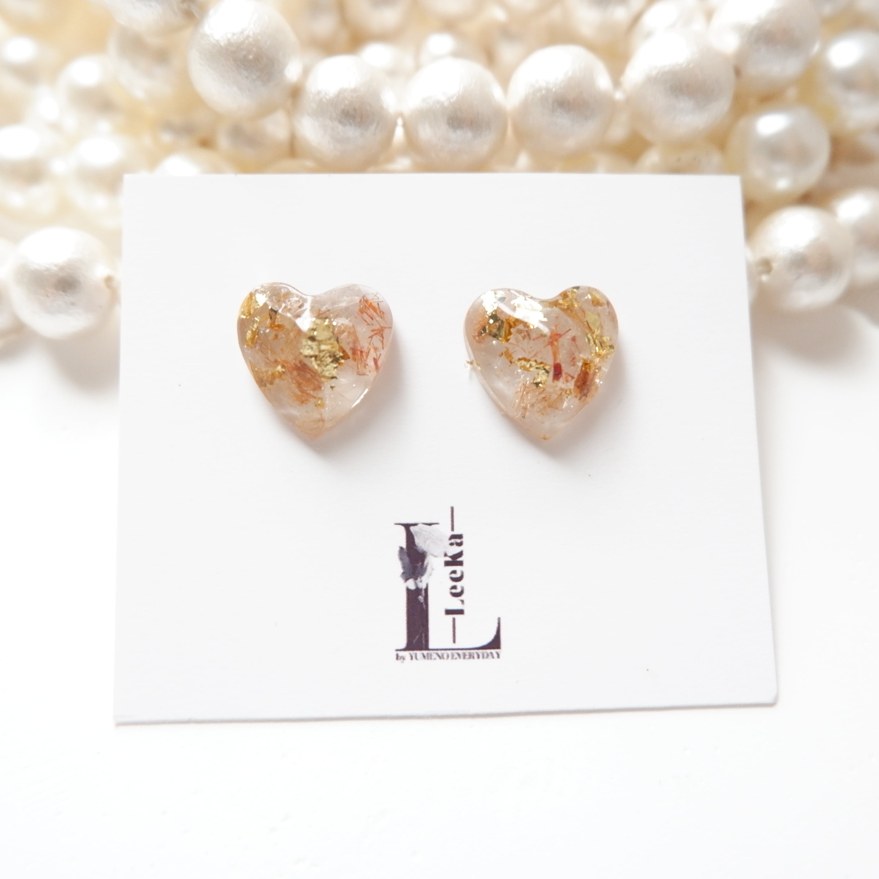 天然石のブラウンルチルクォーツのさざれと金箔をハートのジュエリーに仕上げました。