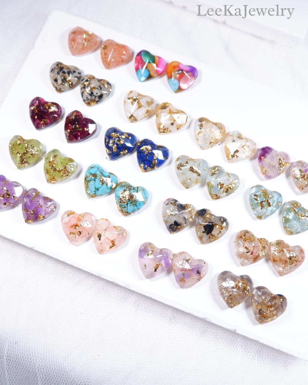 ご注文後にお選びいただいたパーツを接着後にレジンでジュエリーカットをしっかりと残してツヤツヤにコーティングします。
