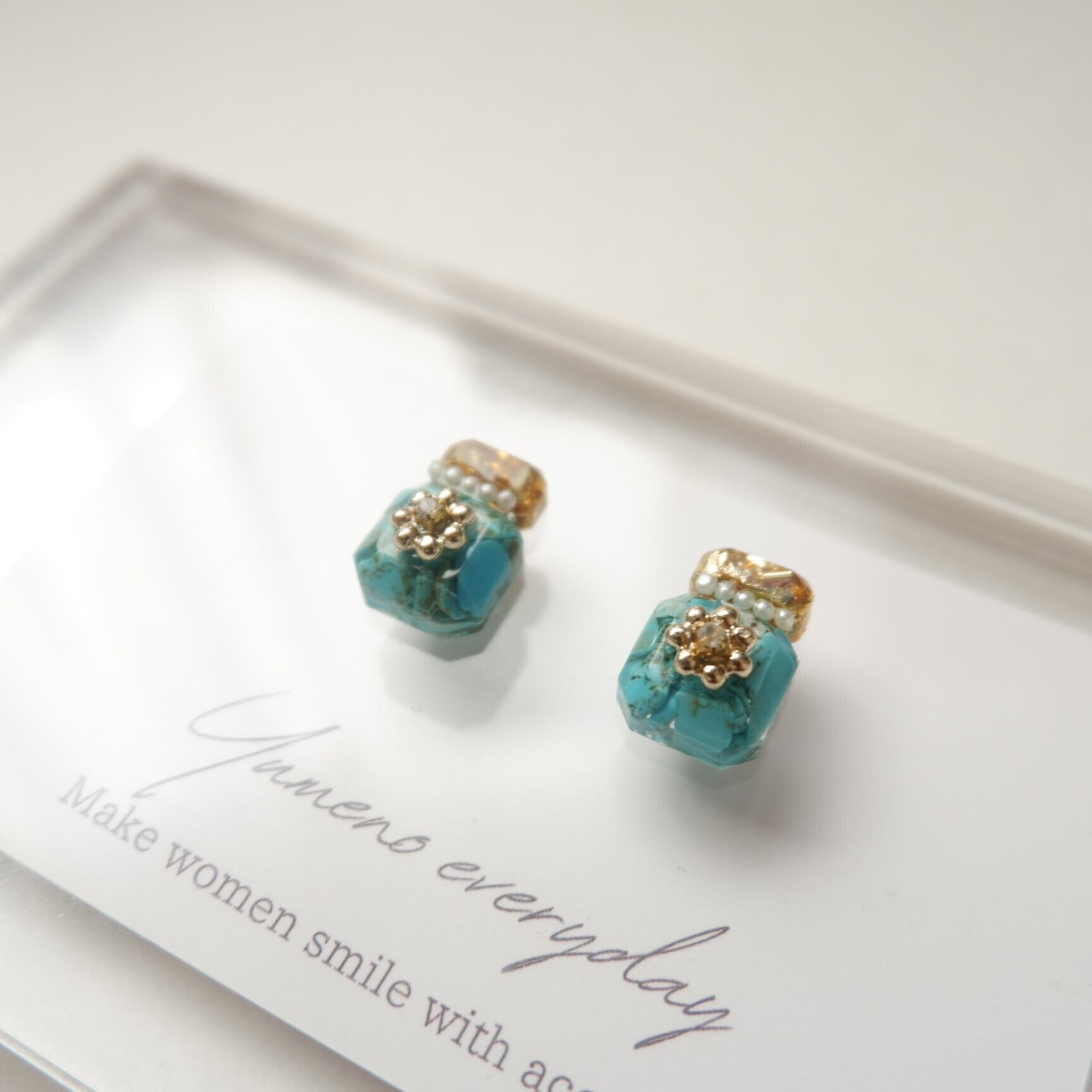 素材:金属、レジン、パール、クリスタル、天然石(ターコイズ)、金箔
