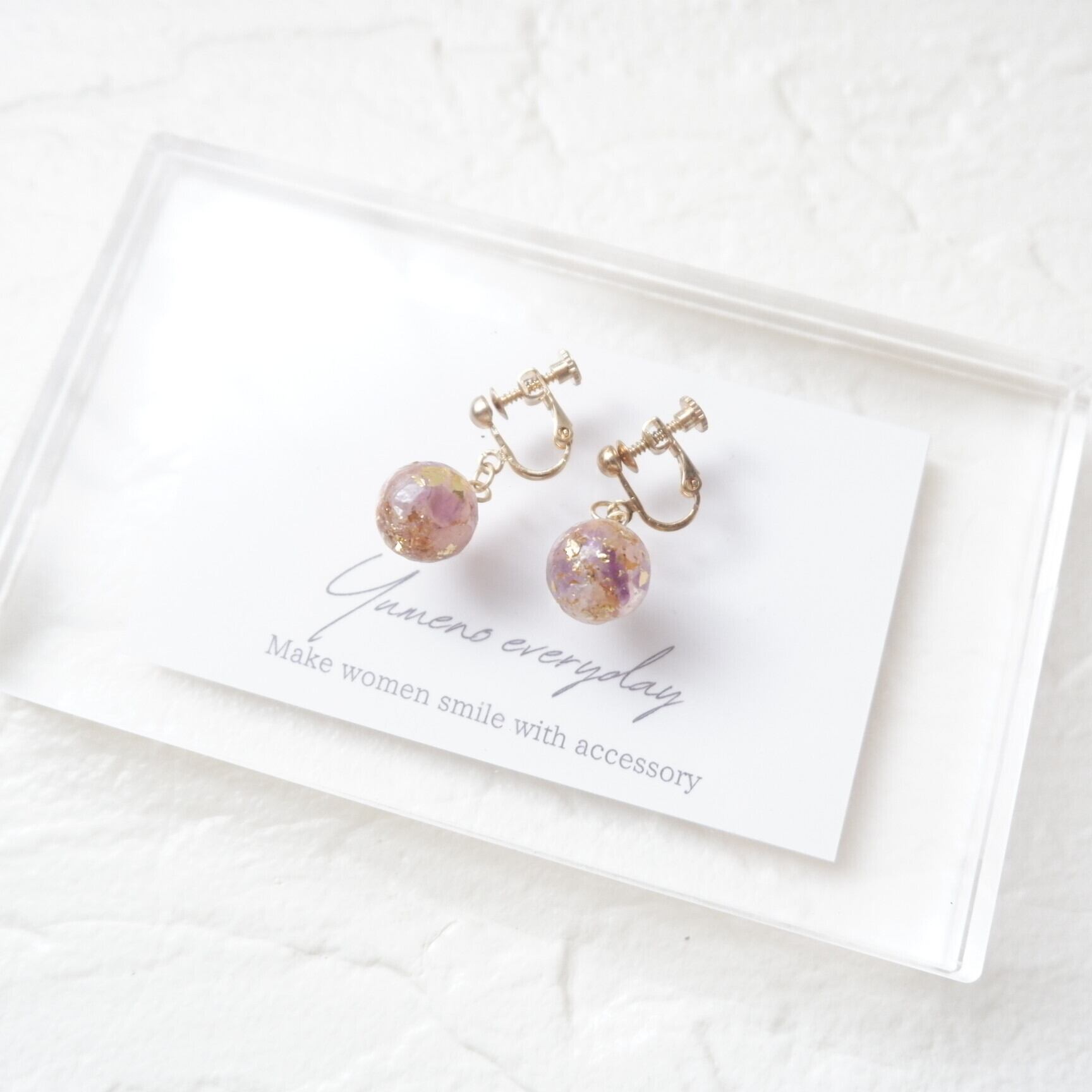 素材:レジン、天然石(アメジスト、ローズクォーツ)、金箔、金属