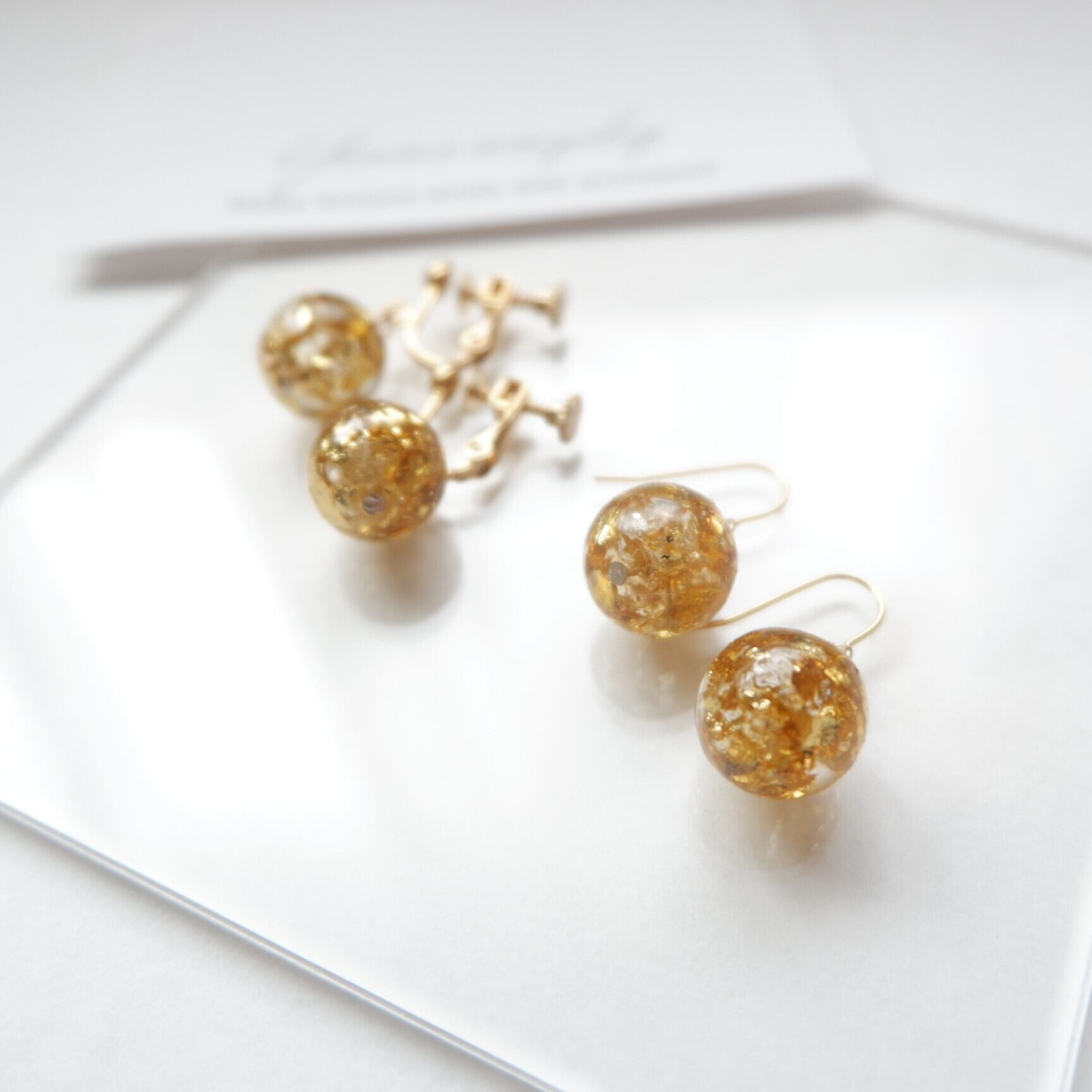 シンプル毎日一粒耳飾り 揺れる金箔 心の栄養 イヤリング/ピアス
