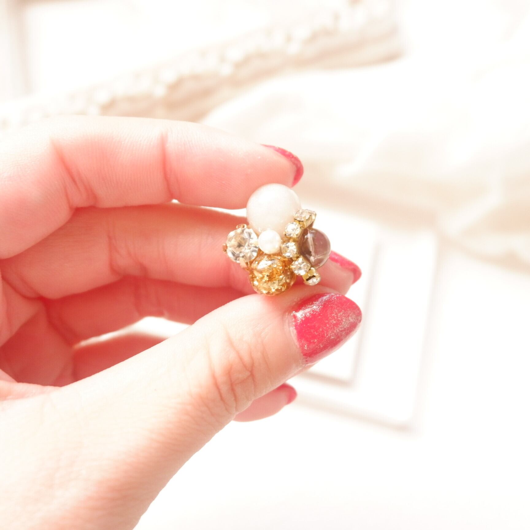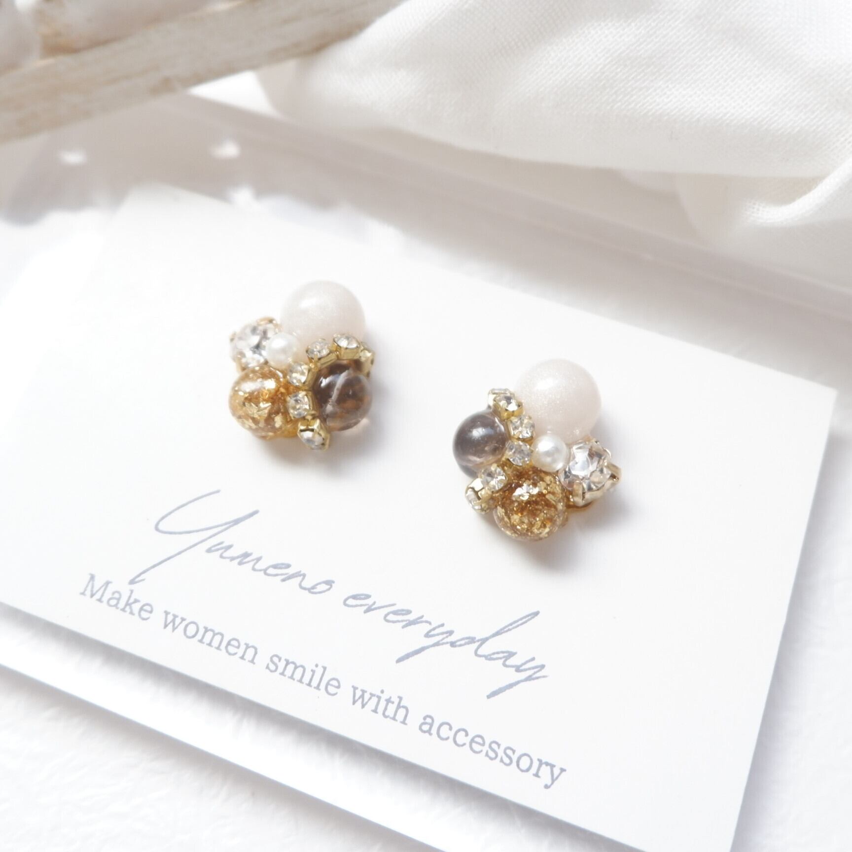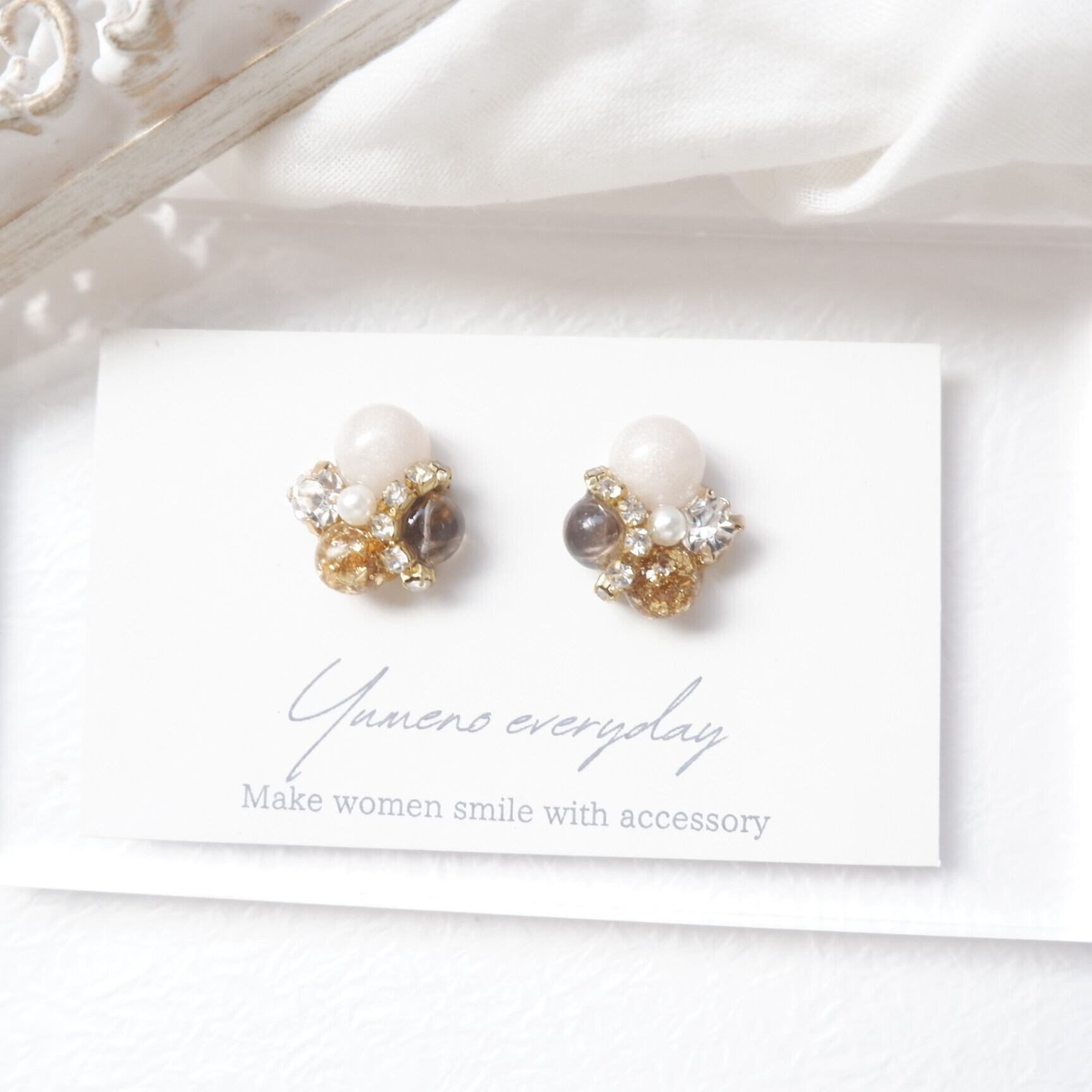 素材:金属、パール、クリスタル、レジン、天然石スモーキークォーツのさざれ、金箔