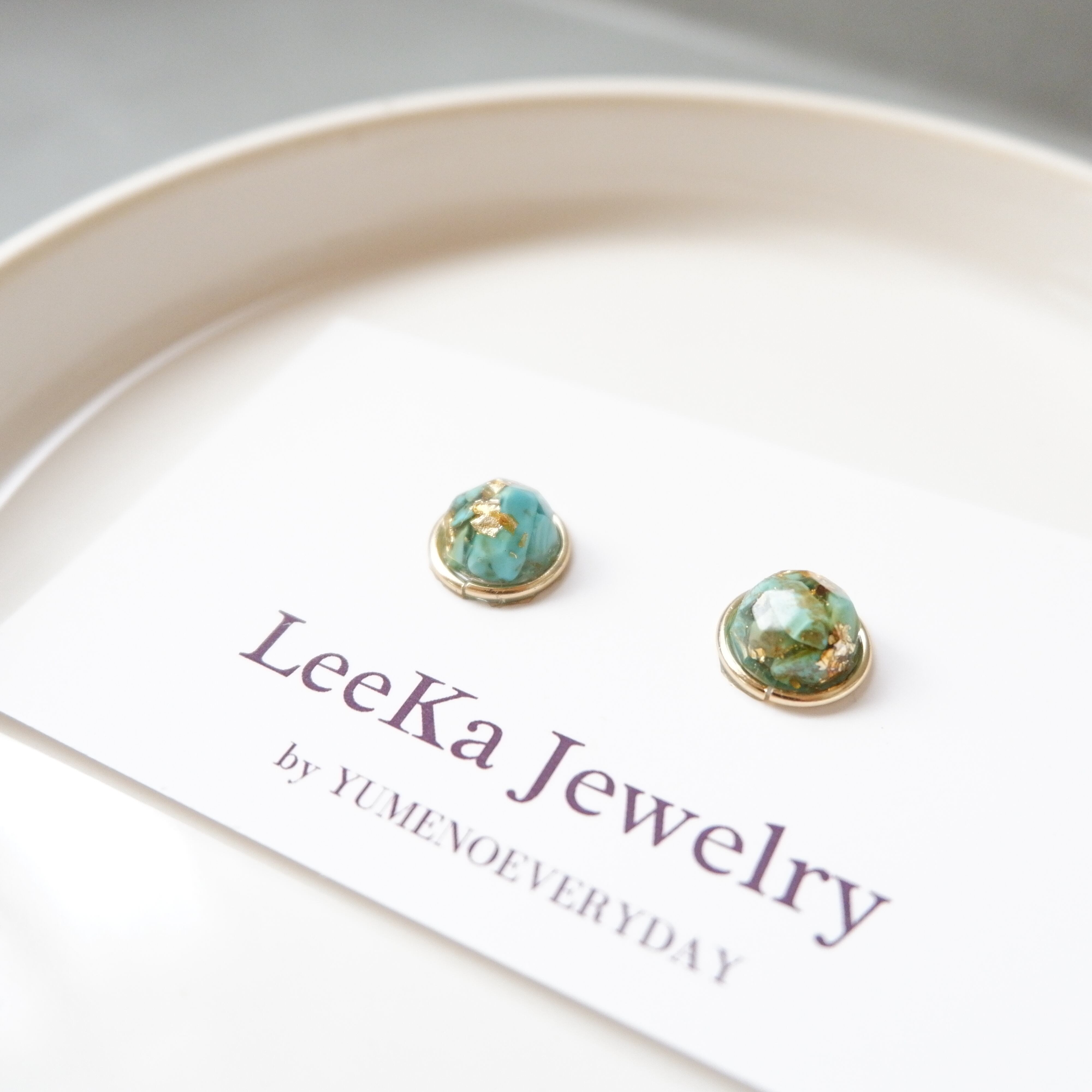 素材:金属、レジン、天然石(ターコイズ)、金箔